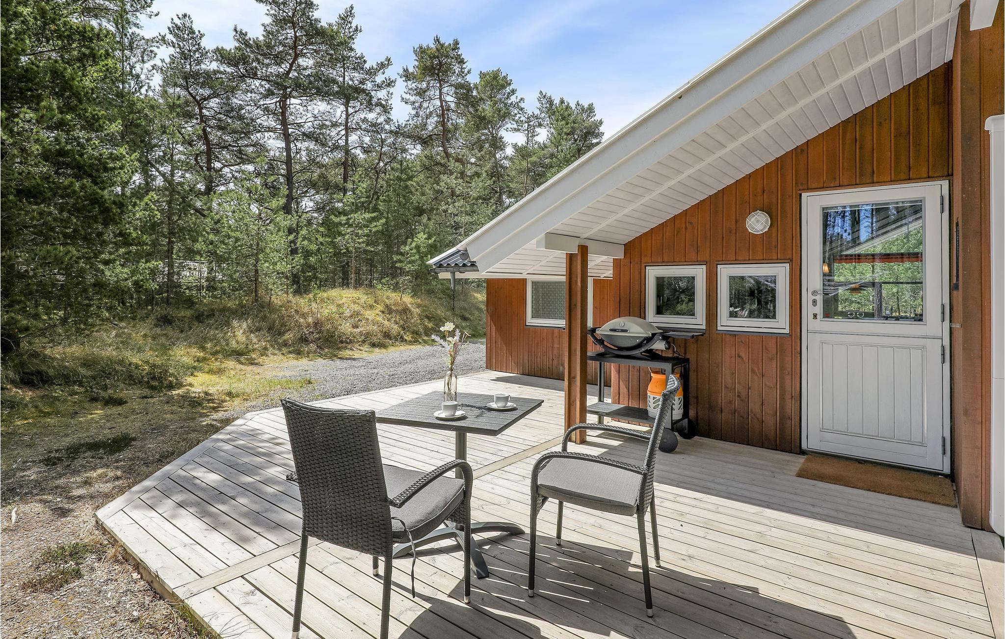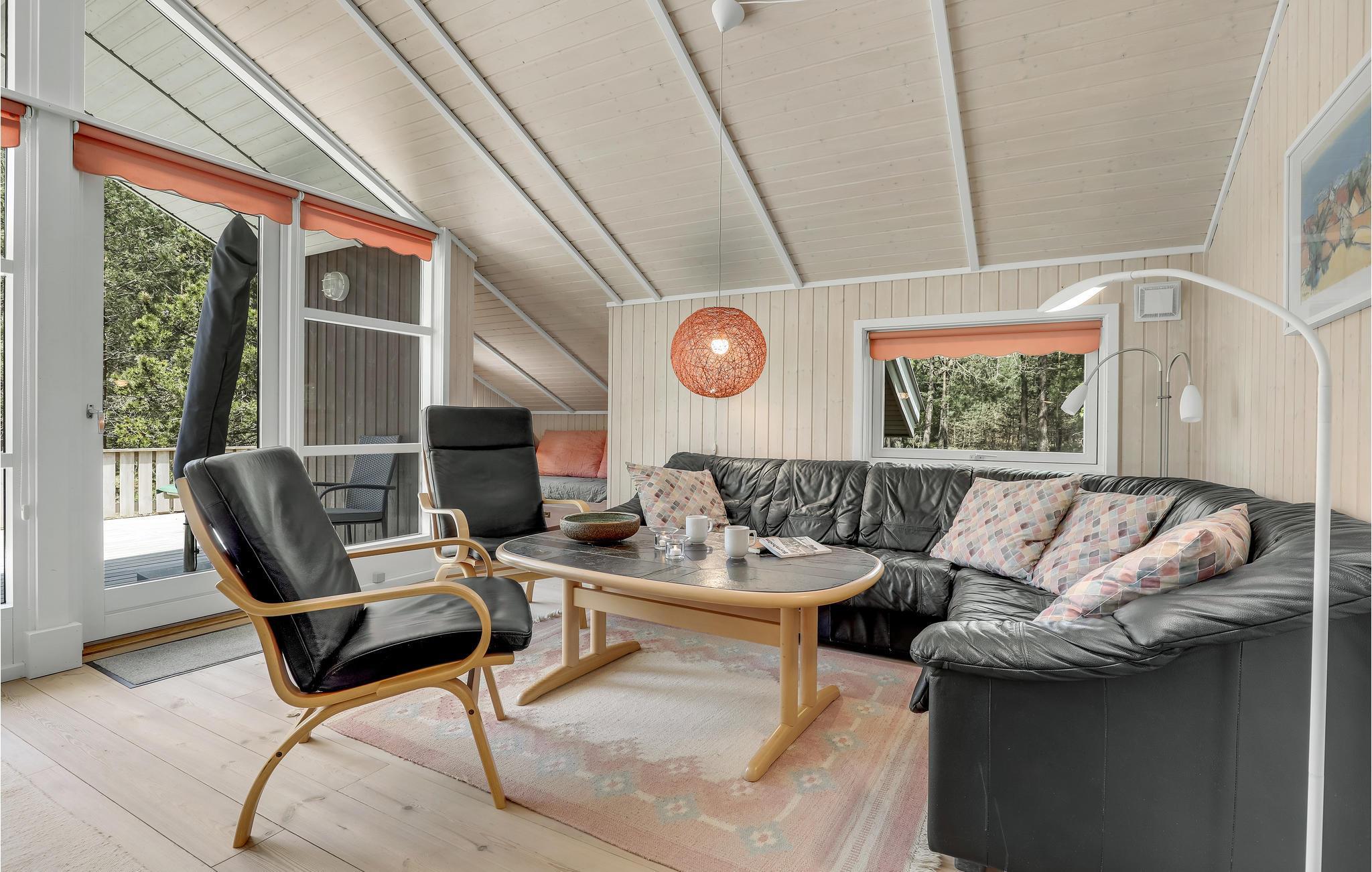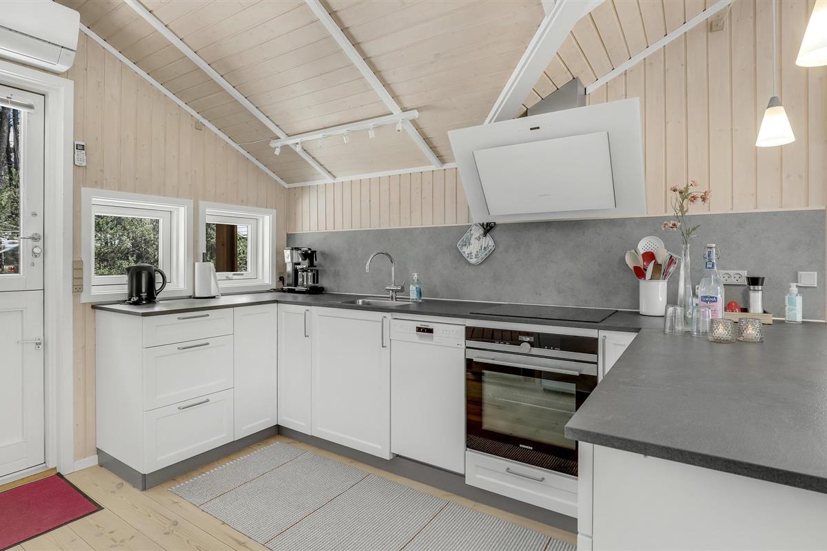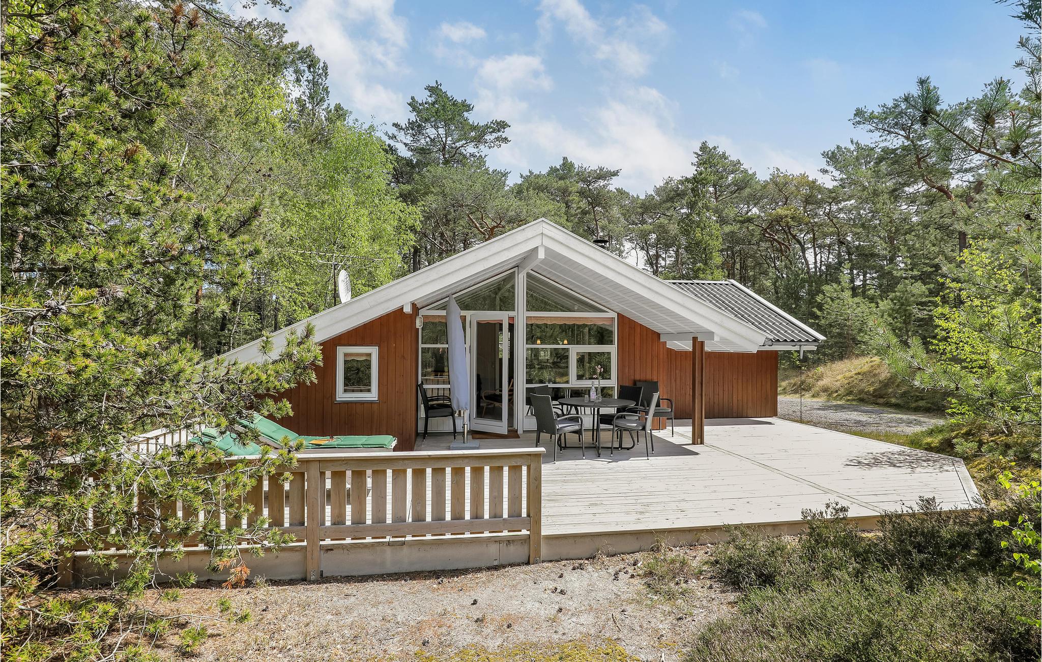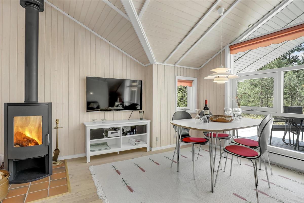 Uitnodigend en goed onderhouden vakantiehuis met een moderne, open keuken en gelegen niet ver van een mooi zandstrand, heerlijke natuur en de golfbaan Dueodde. Overal is het vakantiehuis gezellig, de lichte houten lambrisering op de muren de schuine plafonds geven het interieur een fijne sfeer. s Avonds kunt u zich terugtrekken in gezellige banken en luie stoelen. Er is een alkoof voor een middagdutje. Er is een barbecue op het terras. In het goed uitgeruste huis kunt u gratis gebruik maken van internet. Het wordt verwarmd met een warmtepomp en een houtkachel om het echt gezellig te maken. In de buurt zijn er grote natuurpercelen, goede wandelpaden en uitnodigende joggingpaden. Het strand is lekker dichtbij. Het huis is ideaal voor een vakantie in elk seizoen.