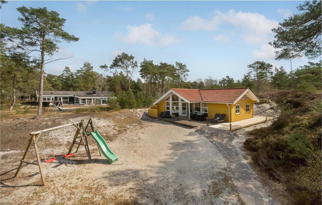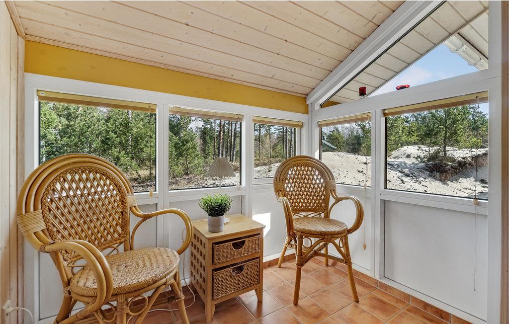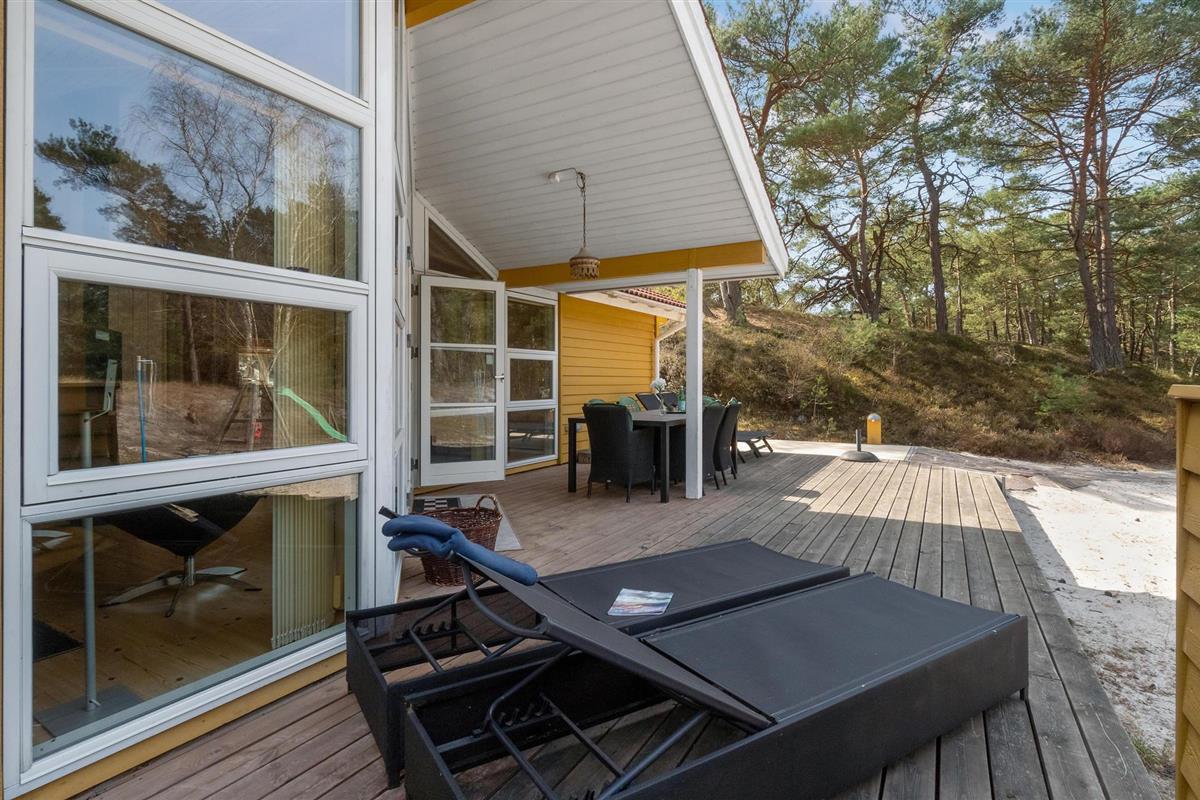 Mooi en goed onderhouden luxe vakantiehuis met alle comfort en een groot houten terras. Het interieur is licht en smaakvol. De mooie keuken met kookeiland staat open voor de eethoek met uitzicht op het terras en de natuur, en voor de woonkamer met comfortabele meubels en een houtkachel. Het huis heeft ook twee prachtige badkamers, een luxe en uitgerust met een sauna en de andere iets kleiner. U kunt genieten van de prachtige natuur tijdens wandelingen op het strand of in het bos. De omgeving is ideaal voor gezinnen met kinderen. Het huis ligt dicht bij een mooi zandstrand en een 18-holes golfbaan.