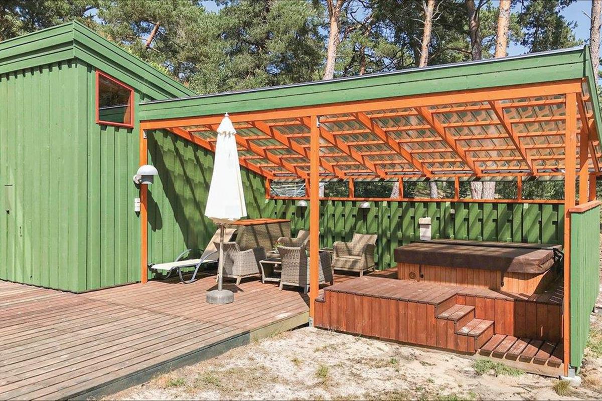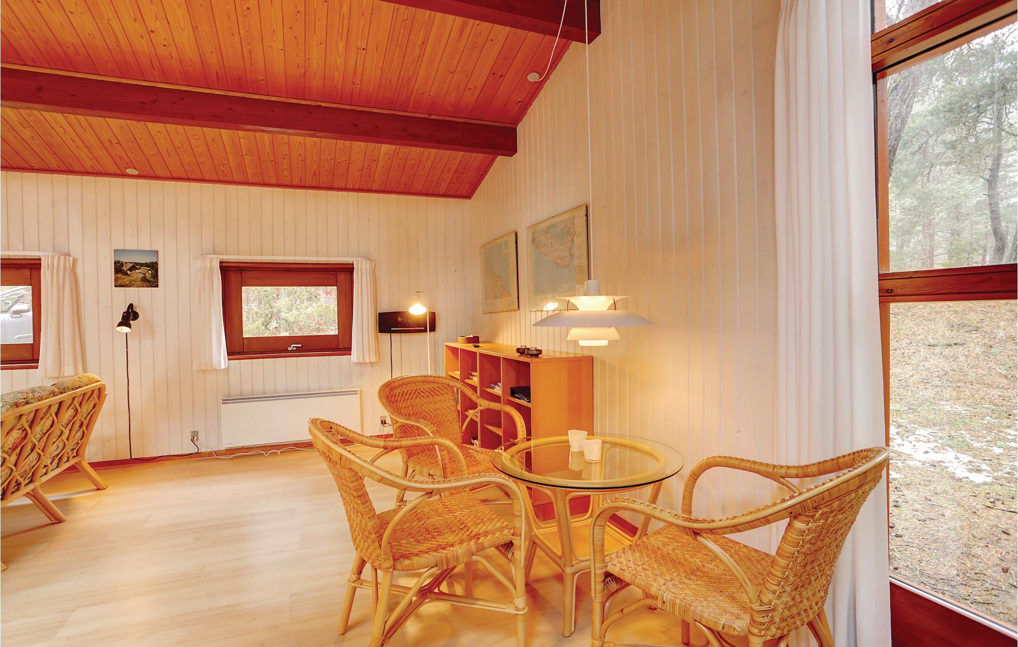 Dit goed uitgeruste en gezellige vakantiehuis werd door de architect ontworpen zodat u er een heerlijke vakantie in kunt doorbrengen, niet ver van het strand. Het heeft 2 badkamers en mooie terrassen en een buitenjacuzzi. Er is ook een buitendouche. Het huis is comfortabel en modern, het biedt gratis internet en is geschikt voor een vakantie ongeacht het seizoen. De grote, open keuken/woonkamer heeft veel lichtinval en komt uit op het terras. Comfortabel tuinmeubilair is hier beschikbaar. Ook in het woongedeelte is het goed toeven, er is een houtkachel. Er zijn 3 slaapkamers en 2 slaapzolders in het huis. De omgeving is rijk aan wild en de hele buurt straalt comfort en rust uit. U bevindt zich in prachtige natuur en niet ver van de 18-holes golfbaan, die op Dueodde ligt.