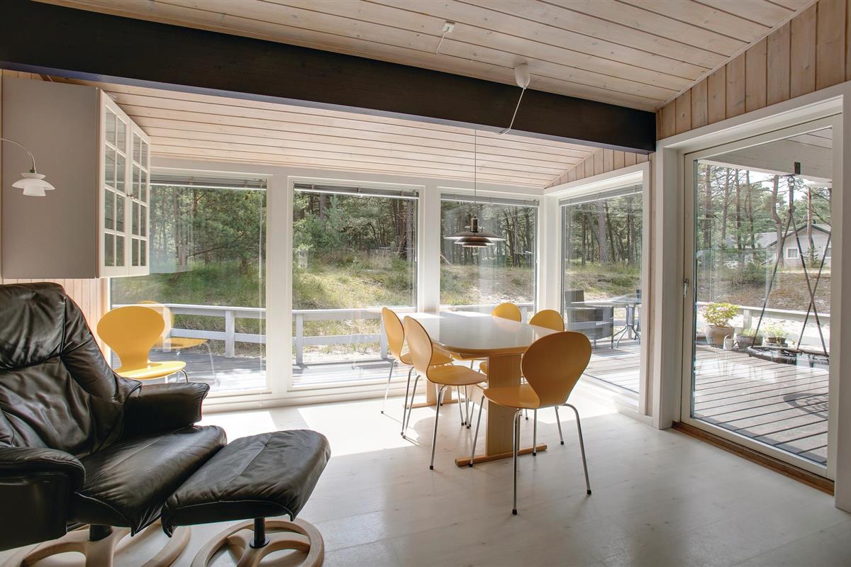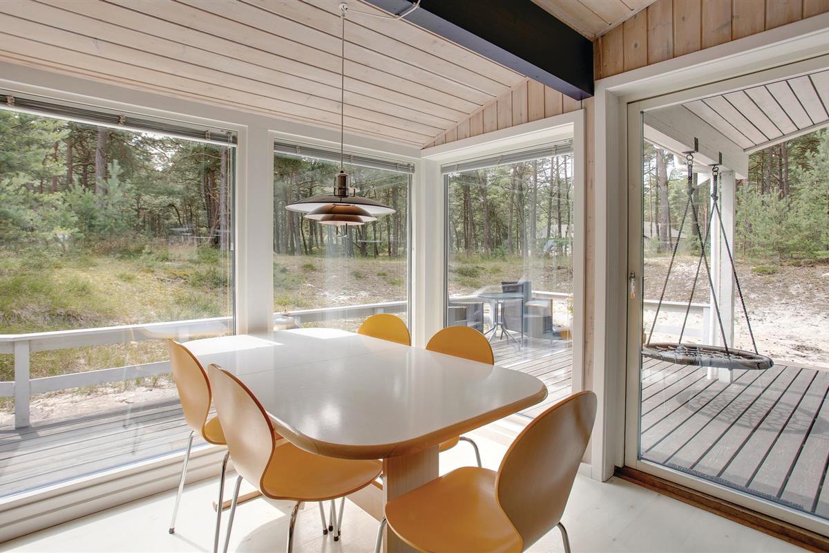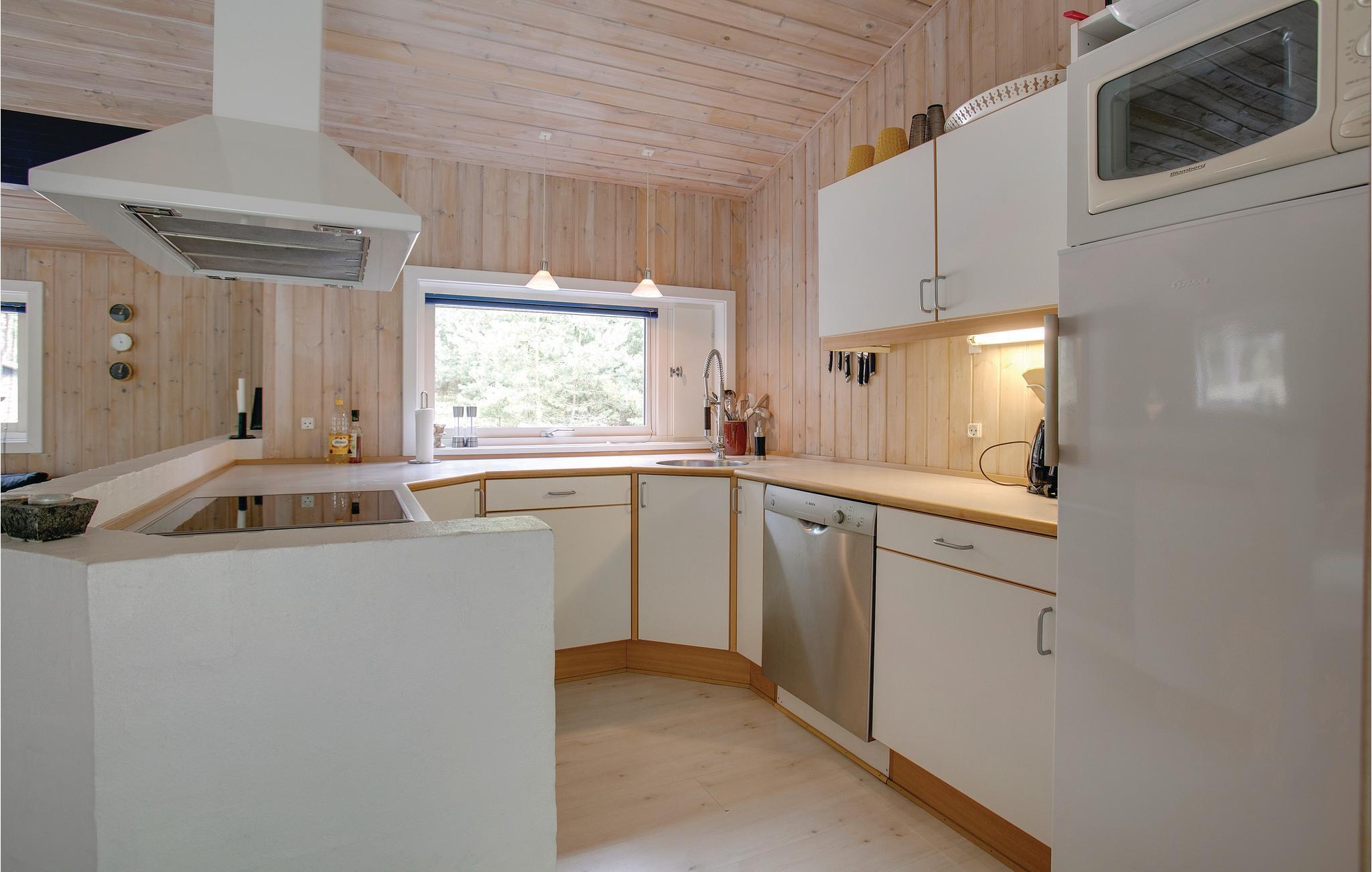 Dit goed onderhouden en ruime vakantiehuis ligt op een groot natuurgrondstuk in de buurt van een mooi zandstrand. Het heeft een licht en modern interieur en een goede sfeer. U kunt gemakkelijk uw vakantiemaaltijden bereiden in de volledig uitgeruste, open keuken, en ondertussen kan het gezin ontspannen in de comfortabele meubels in de gecombineerde woon- en eetkamer. De houtkachel en de warmtepomp houden het huis op een aangename temperatuur, ongeacht het seizoen, en u beschikt over gratis internet in het hele huis. Op het grote houten terras met mooi tuinmeubilair, schommel en barbecue kunt u volop genieten van uw vakantie. Heel eenvoudig, een heerlijk vakantiehuis voor een al even heerlijke vakantie.