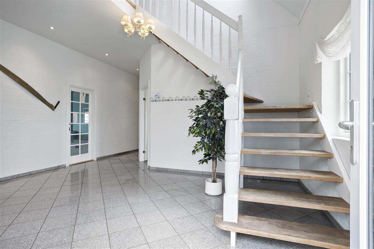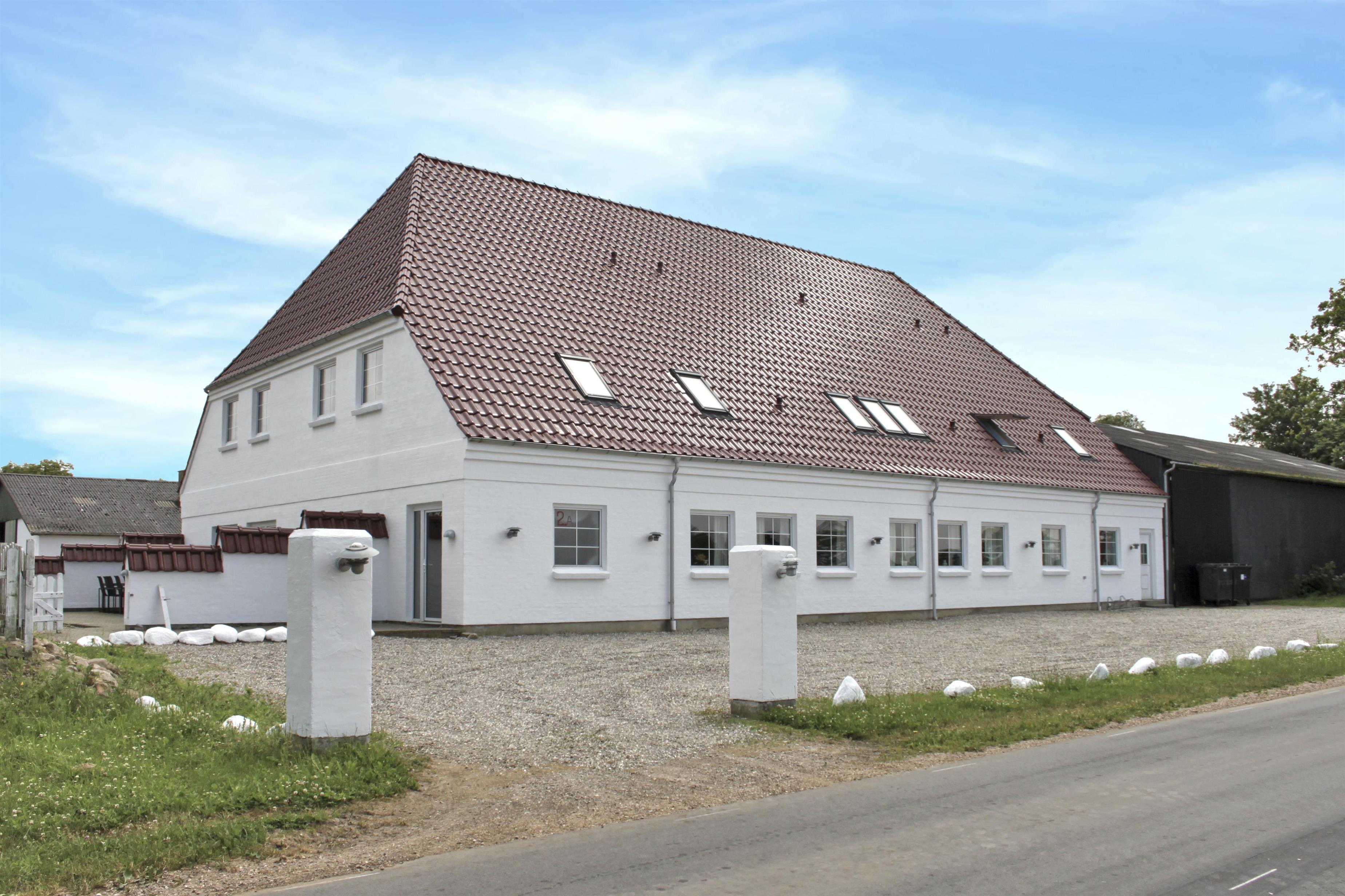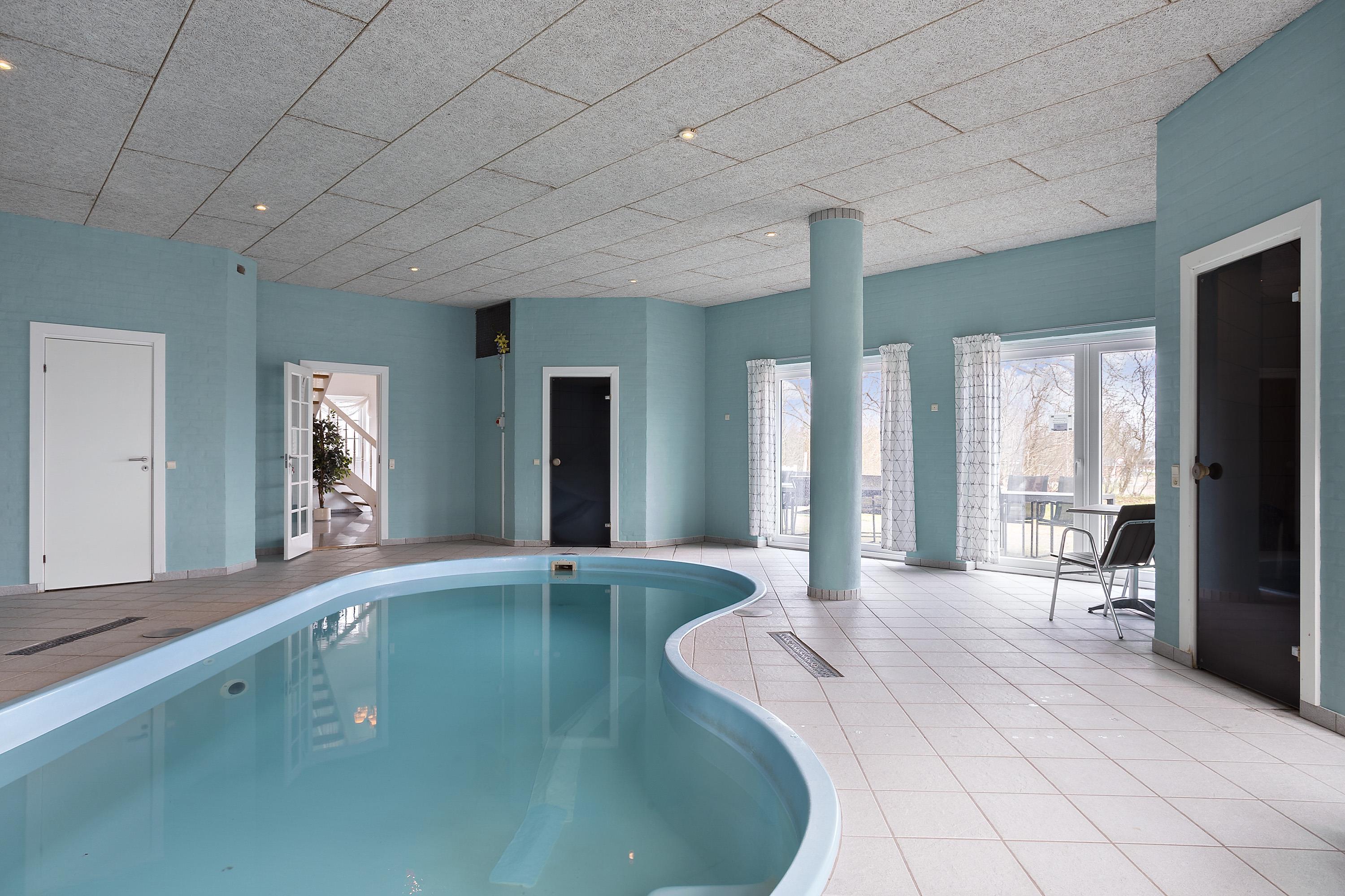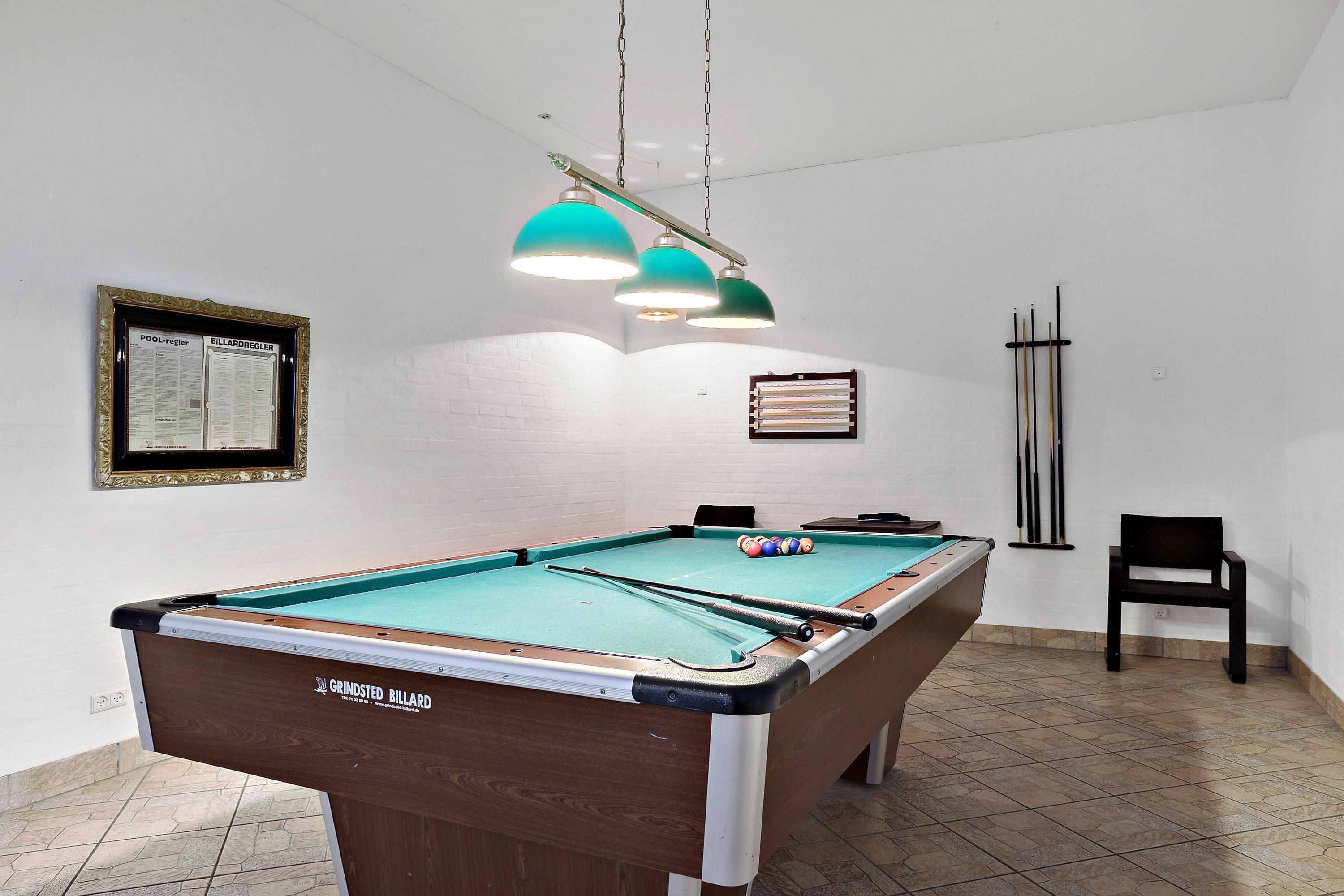 Authentic country estate of 750 m2 situated in the small village of Farris near Kolding. This holiday home accommodates 22 people with its 11 spacious bedrooms, each of which includes a bathroom and a toilet. Two of the bedrooms are located on the ground floor and the rest you will find on the first floor. The spacious and beautiful wellness room of 100 m2 calls for total relaxation and soul care. It features a 28m2 swimming pool, an 8-person hot tub, a sauna, and two bathrooms. The living room is furnished with a large sofa arrangement and dining tables, as well as a pool table and table tennis, allowing everyone to dine and socialize together. From the living room, there is a window with a view into the wellness room. Immediately adjacent to the living room is the large kitchen with plenty of space for culinary activities. On the first floor, there is an additional TV room and a lounge.