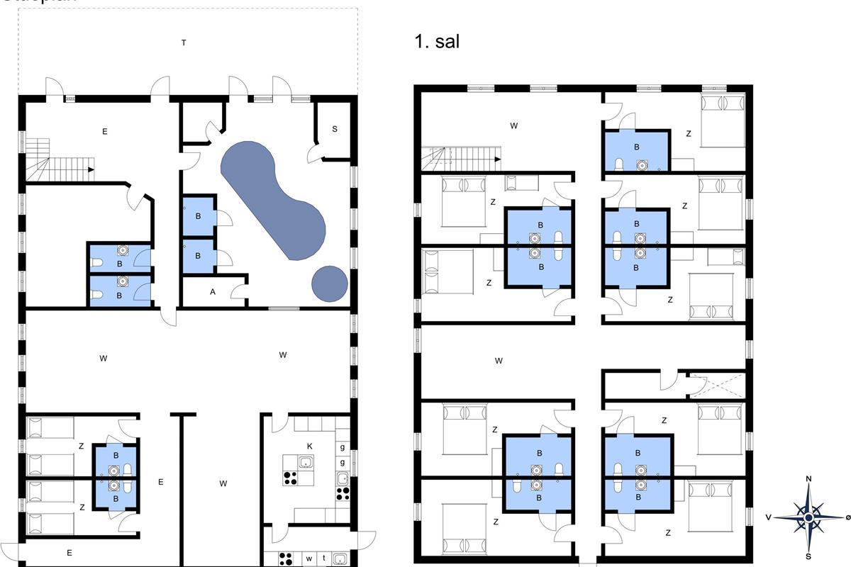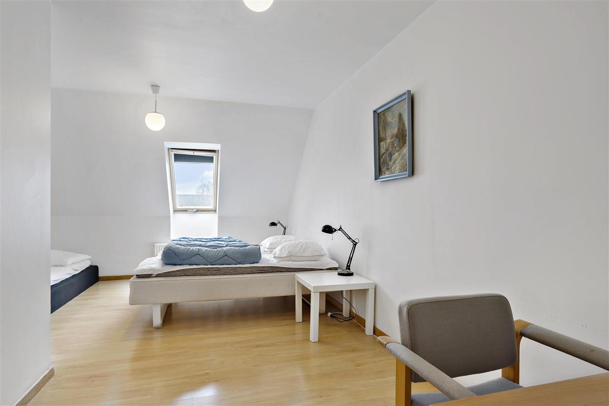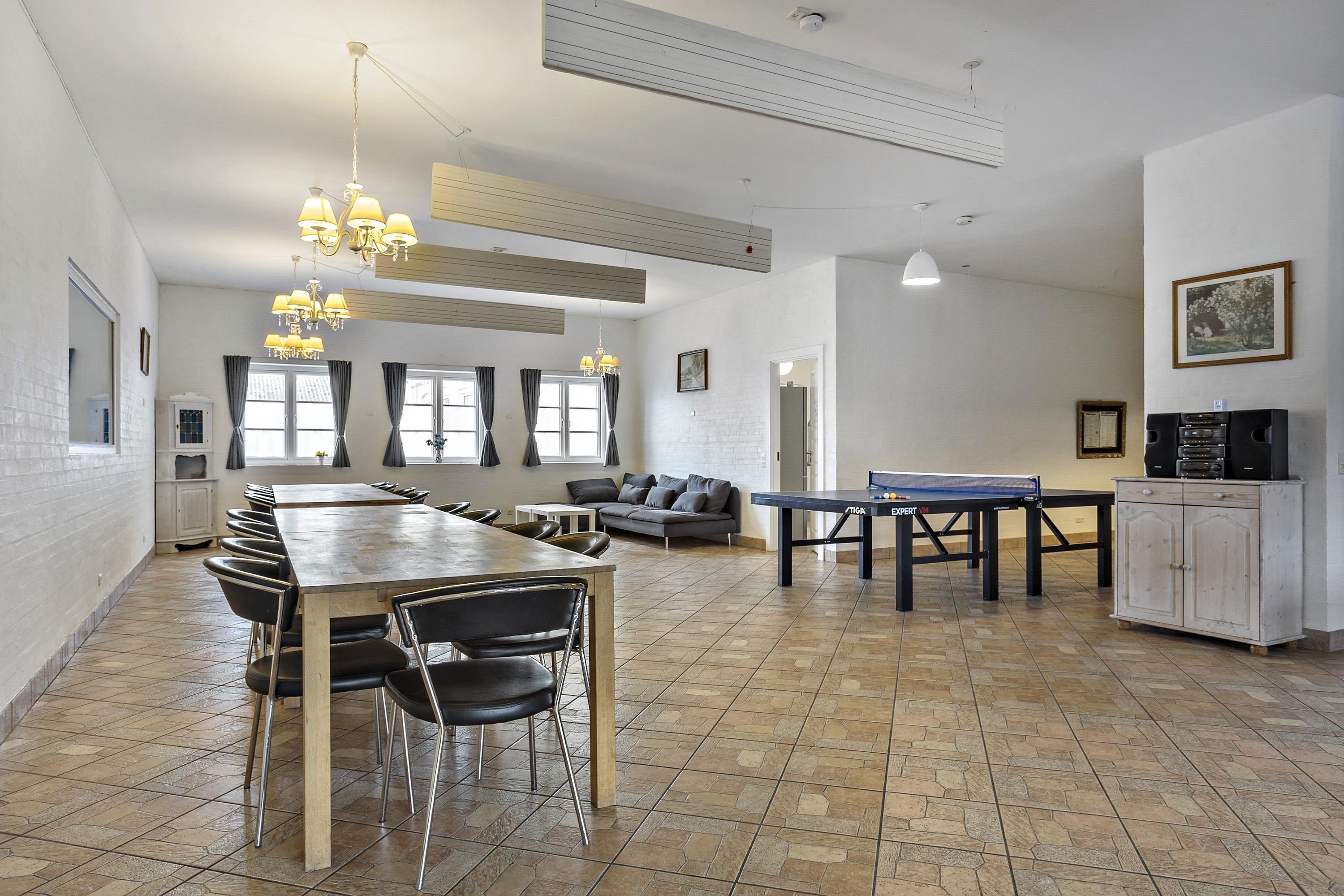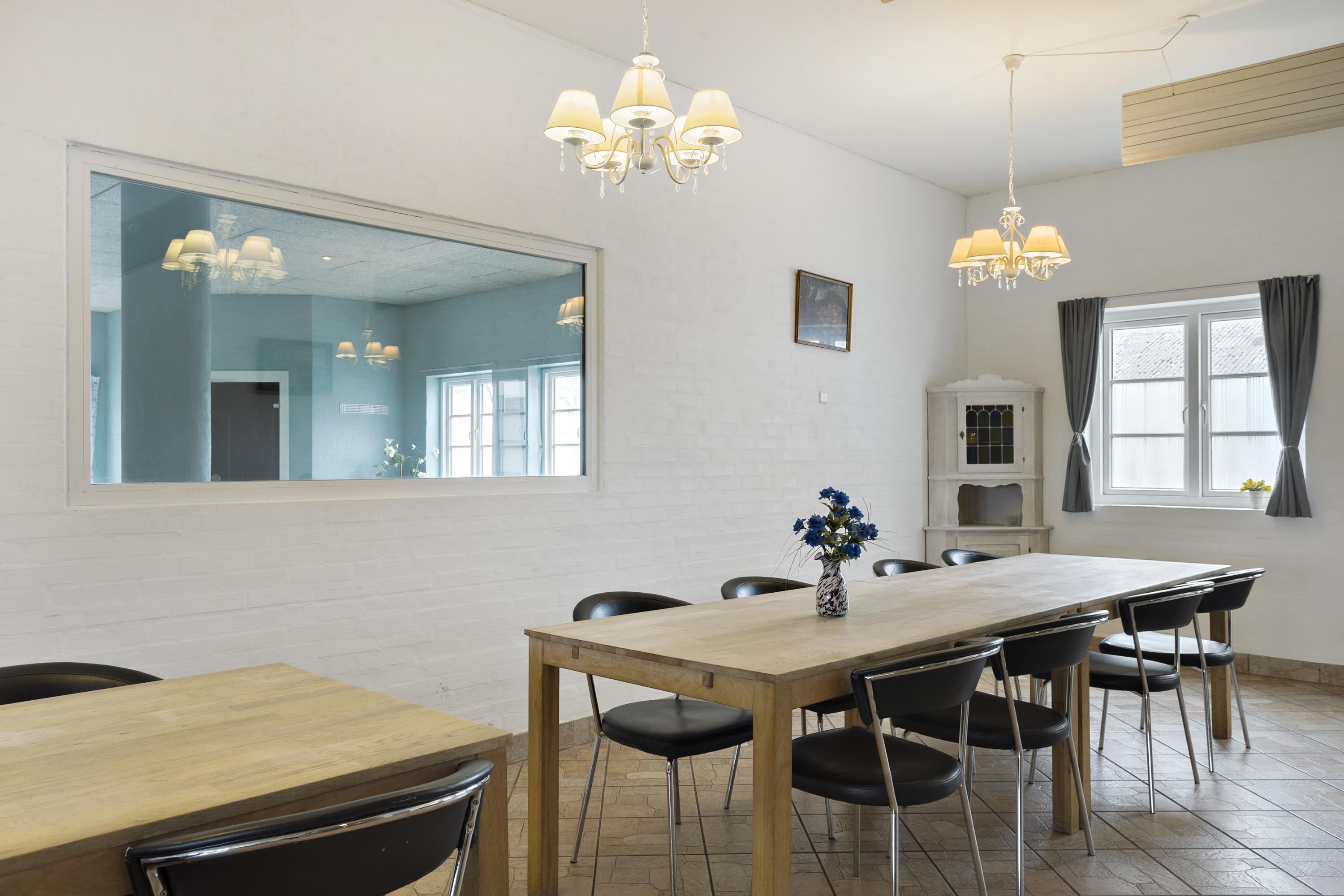 Authentic country estate of 750 m2 situated in the small village of Farris near Kolding. This holiday home accommodates 22 people with its 11 spacious bedrooms, each of which includes a bathroom and a toilet. Two of the bedrooms are located on the ground floor and the rest you will find on the first floor. The spacious and beautiful wellness room of 100 m2 calls for total relaxation and soul care. It features a 28m2 swimming pool, an 8-person hot tub, a sauna, and two bathrooms. The living room is furnished with a large sofa arrangement and dining tables, as well as a pool table and table tennis, allowing everyone to dine and socialize together. From the living room, there is a window with a view into the wellness room. Immediately adjacent to the living room is the large kitchen with plenty of space for culinary activities. On the first floor, there is an additional TV room and a lounge.