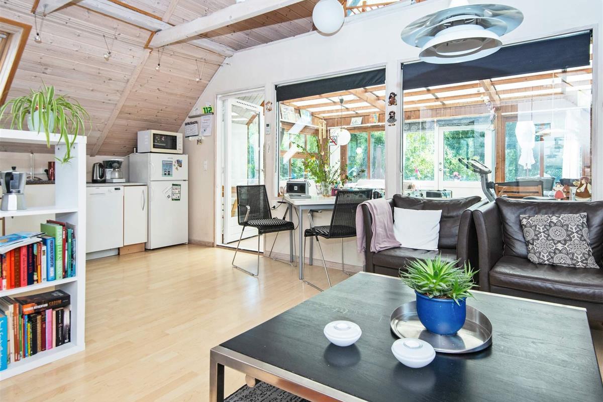 Ferienhaus in landschaftlich reizvoller Umgebung bei Amstrup / Alrø, keine 5 Minuten Fußweg vom Deich, wo die Kinder baden können. Liegt auf einem Naturgrundstück mit Bäumen und etwas Rasenfläche für spielende Kinder. Im Haus selbst 50 m2 Wohnfläche und dazu 20 m2 verglaste Veranda.