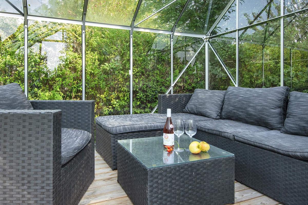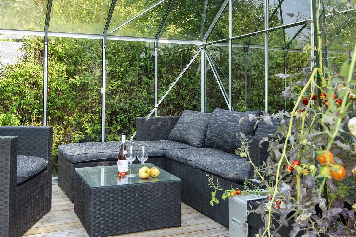 Das große Wohnzimmer bietet direkten Zugang zu einer schönen, überdachten Terrasse, auf der Sie Ihre Mahlzeiten bei jedem Wetter genießen können. Der Garten bietet mehrere gemütliche Ecken, die zum Entspannen und Lesen einladen. Außerdem gibt es eine charmante Orangerie, in der Sie die Abende auch bei Wind genießen können.
