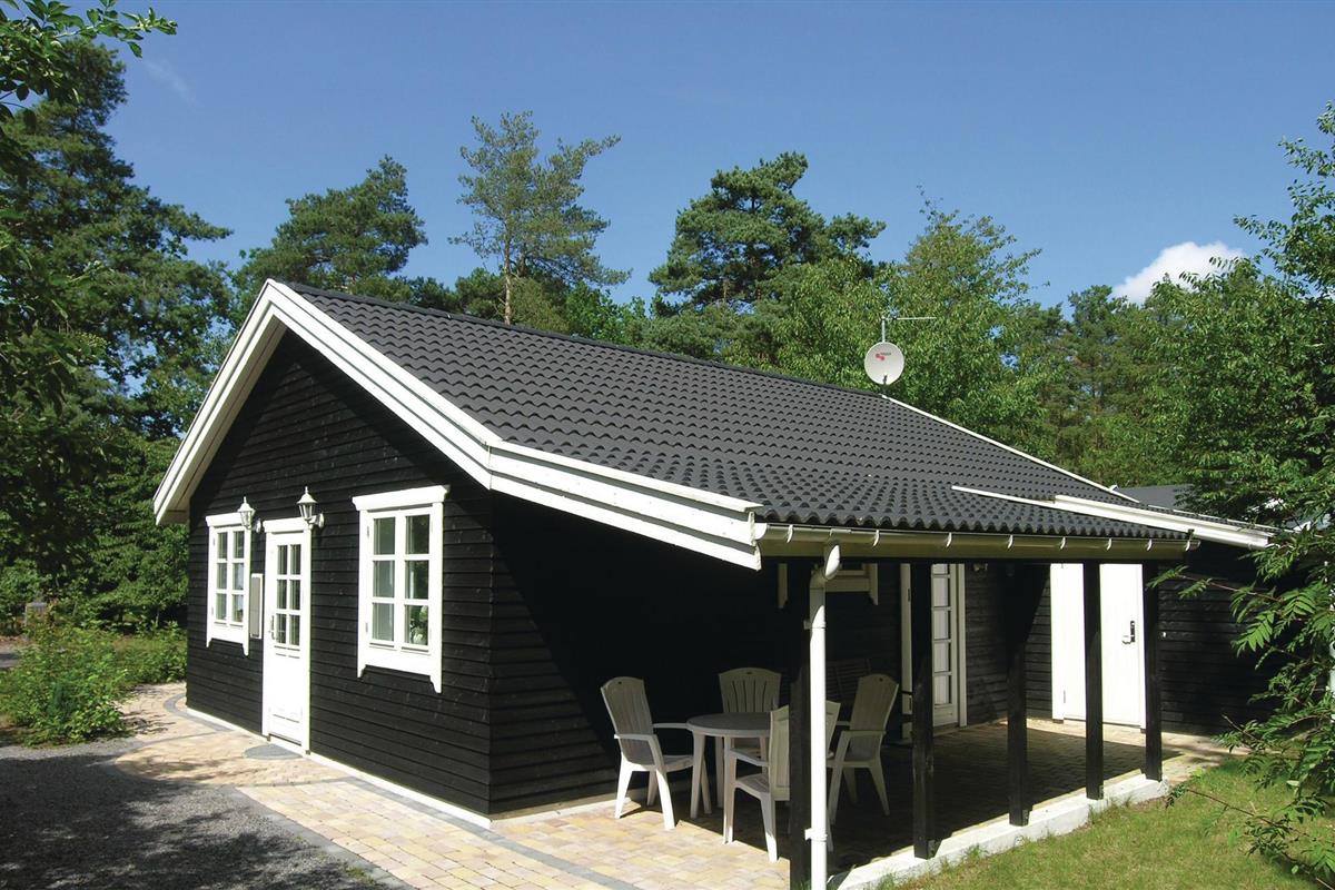 Gezellig houten vakantiehuis in Sorthat met terras, houtkachel en ruime speelplaats, dicht bij bos en strand.