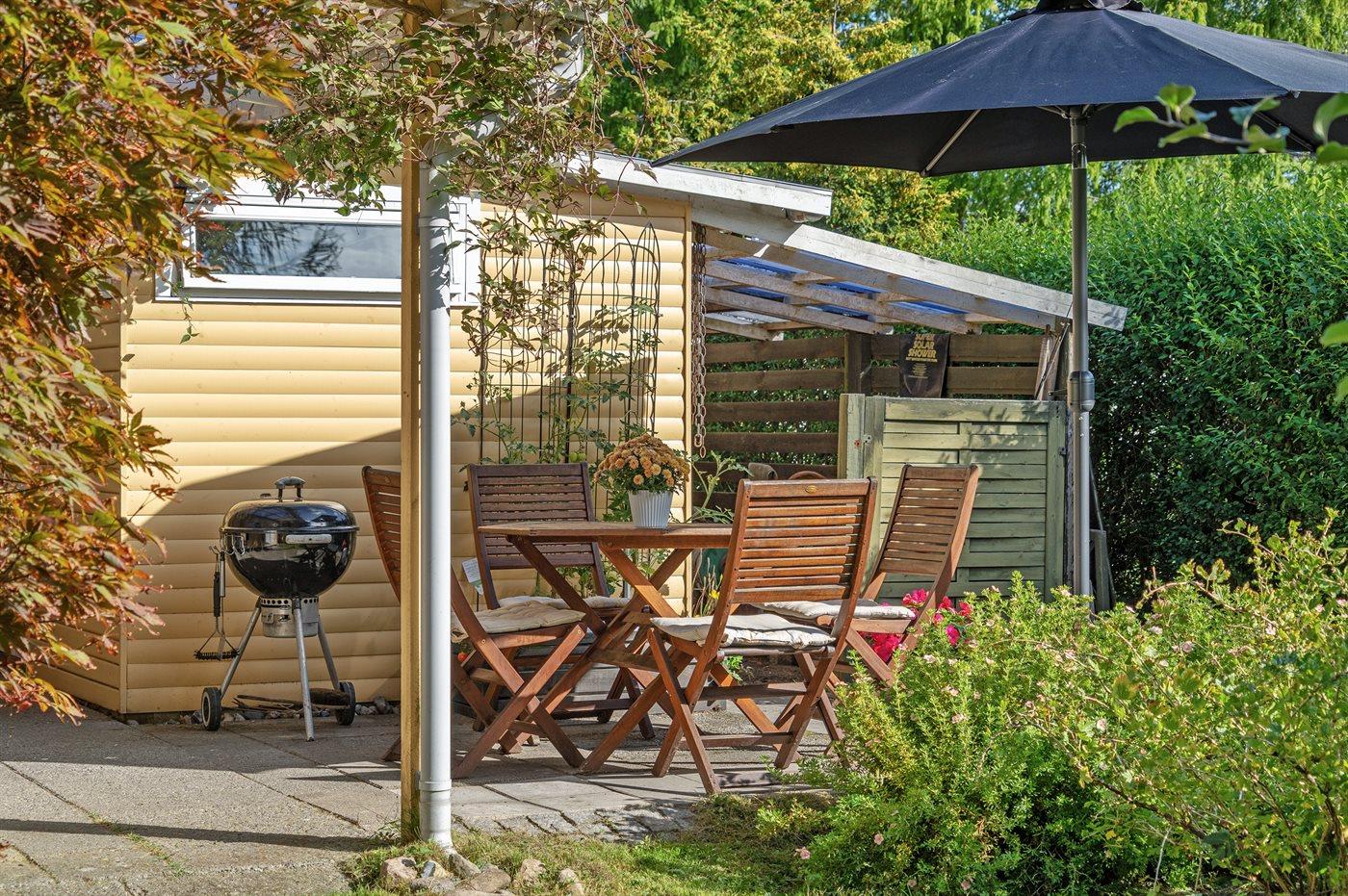 Charmant vakantiehuis bij Sortsø Strand met tuin, terras en moderne voorzieningen.