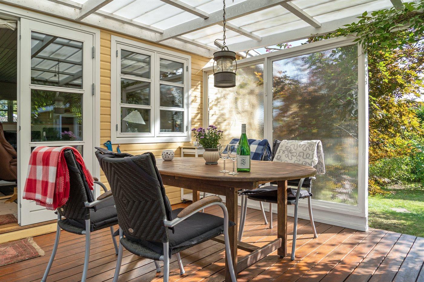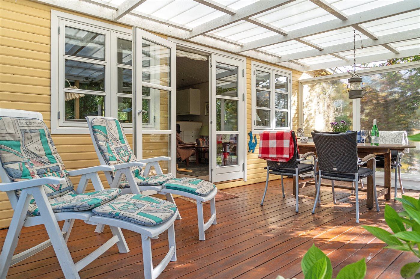 De vakantiewoning is gelegen op een 1052 m² groot aangelegde tuin. Afstand tot de zee 120 m. Dichtstbijzijnde winkel 6000 m. Bij de vakantiewoning hoort 30 m² terras. Daarnaast is er een 28 m² groot overdekt terras. Buitendouche. Carport ter beschikking. Het huis heeft een stopcontact voor het opladen van een elektrische auto. Met 11 kW-laadvermogen. Parkeerplaats bij het huis.