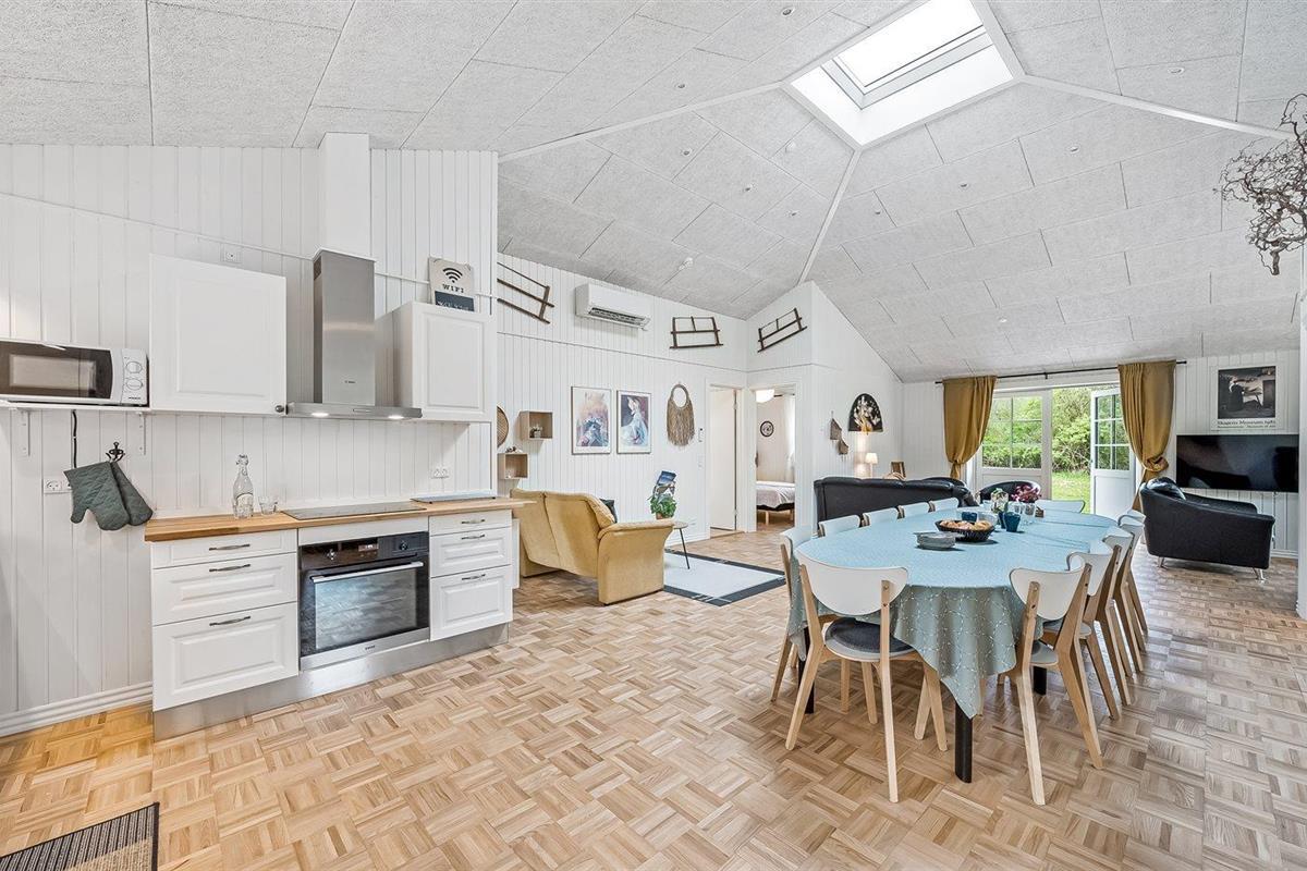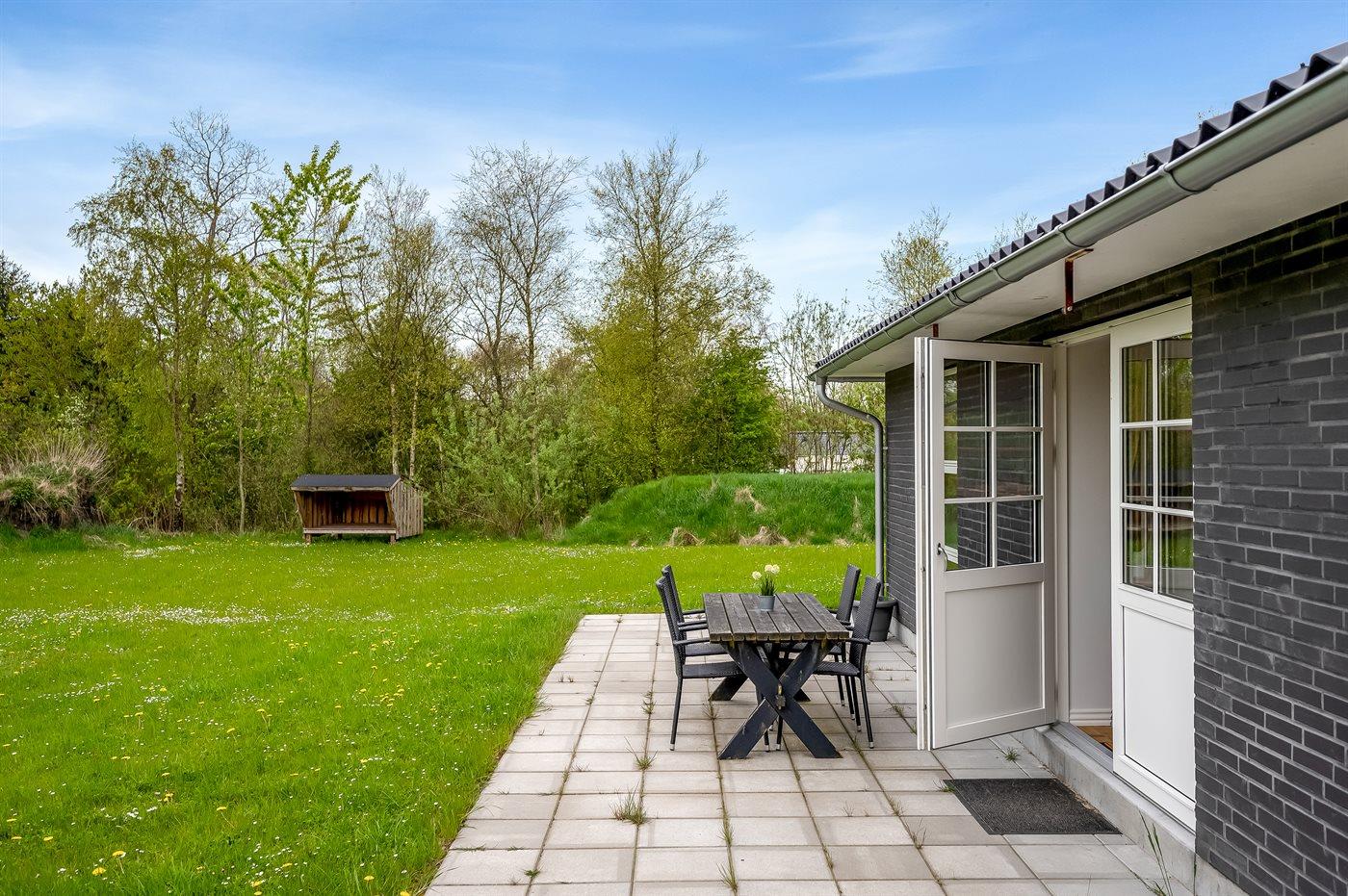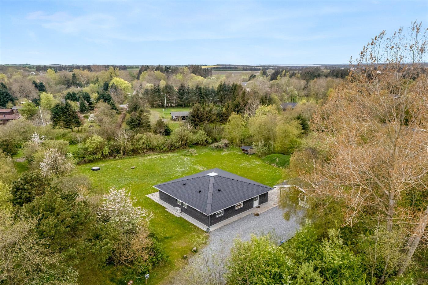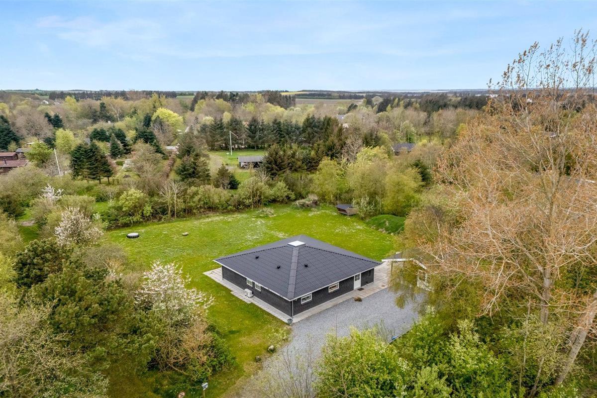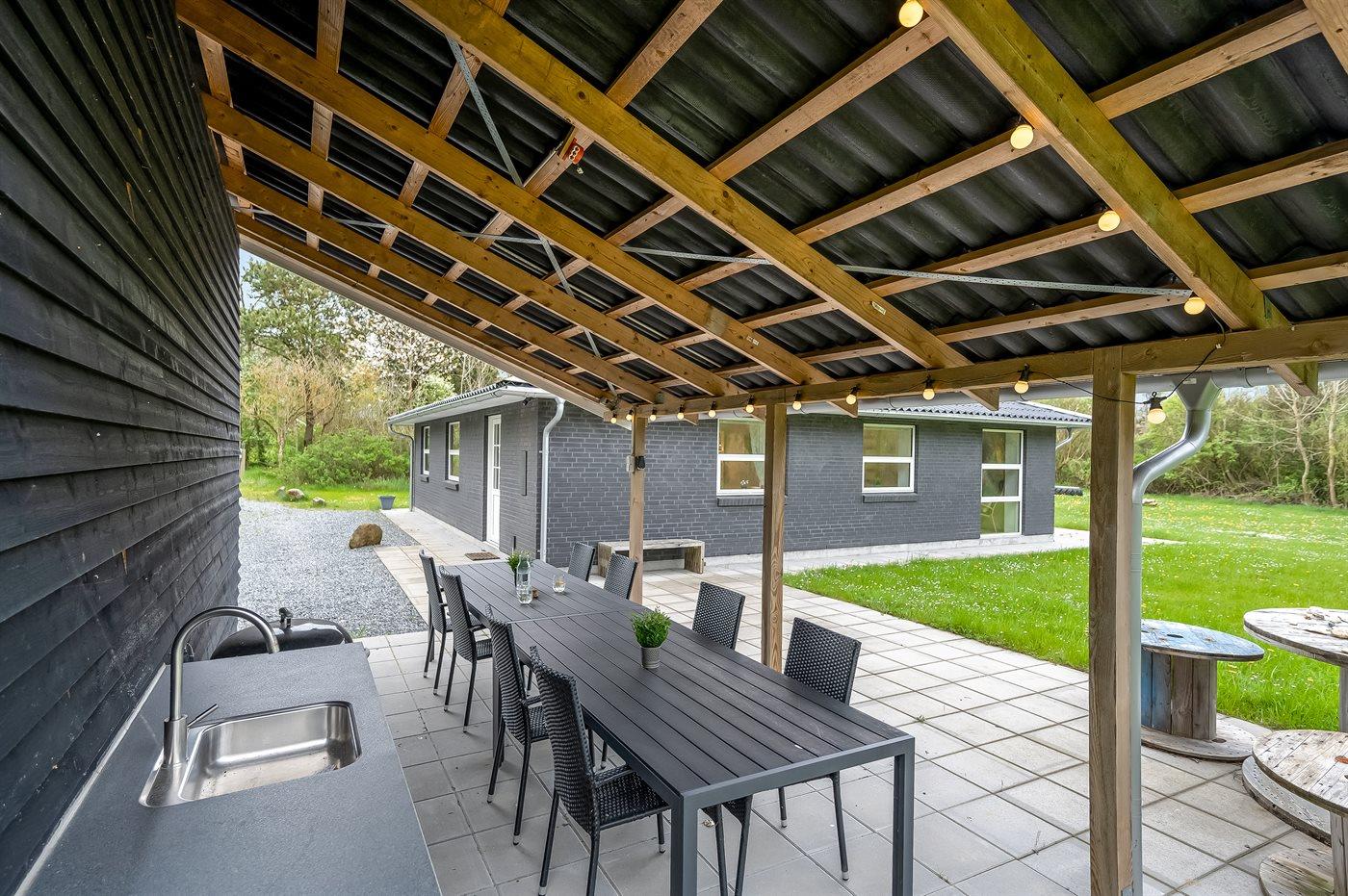 Ruim en modern vakantiehuis in Spøttrup, dicht bij fjord, met buitenkeuken en laadpaal voor elektrische auto.