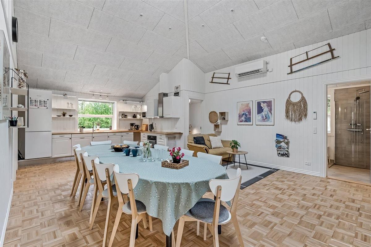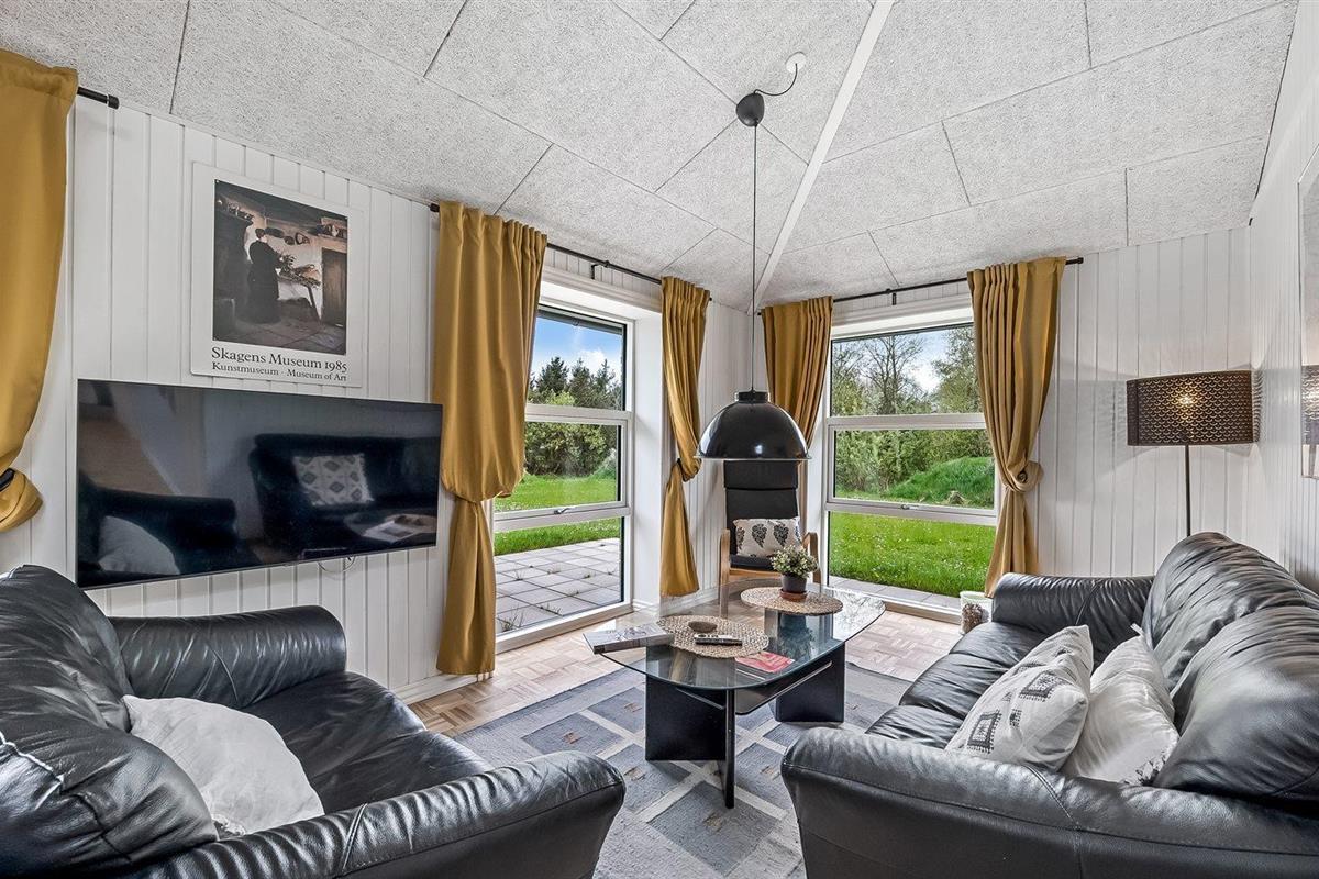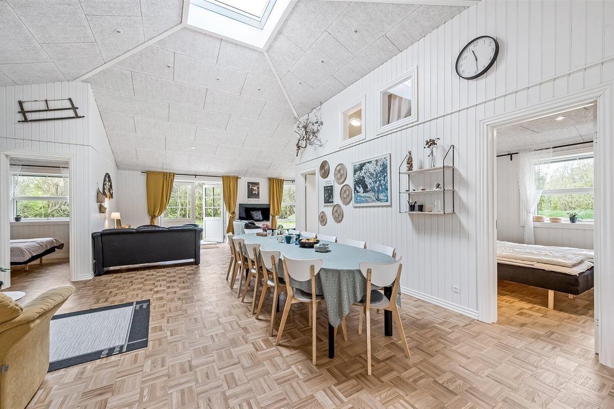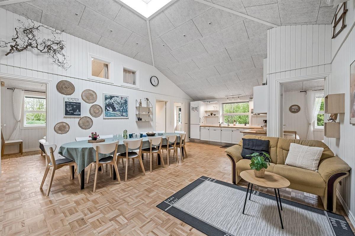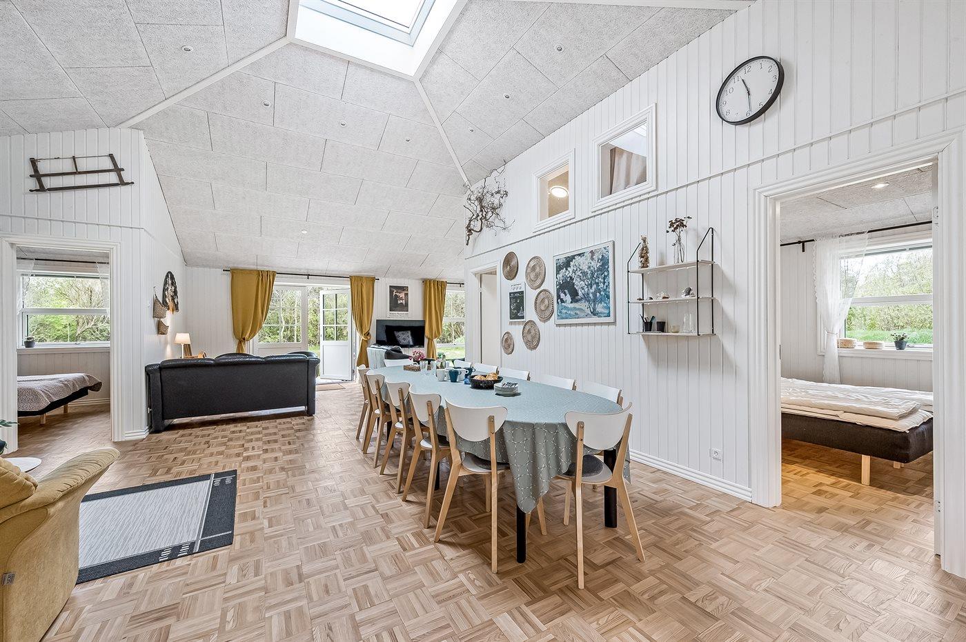 Ruim en modern vakantiehuis in Spøttrup, dicht bij fjord, met buitenkeuken en laadpaal voor elektrische auto.