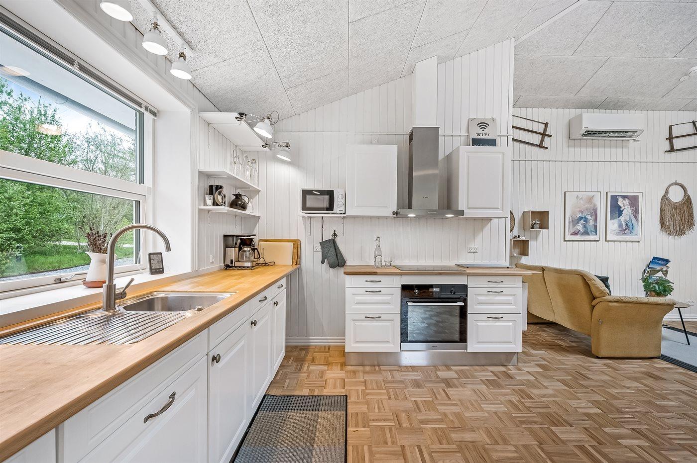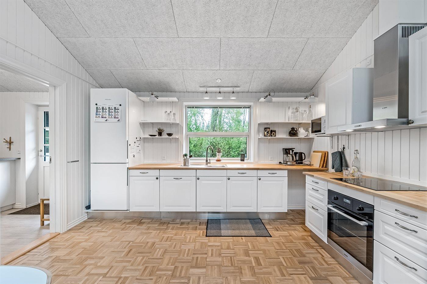De keuken is uitgerust met koelkast Er is 4 inductiekookplaten, heteluchtoven, magnetron en vaatwasser.