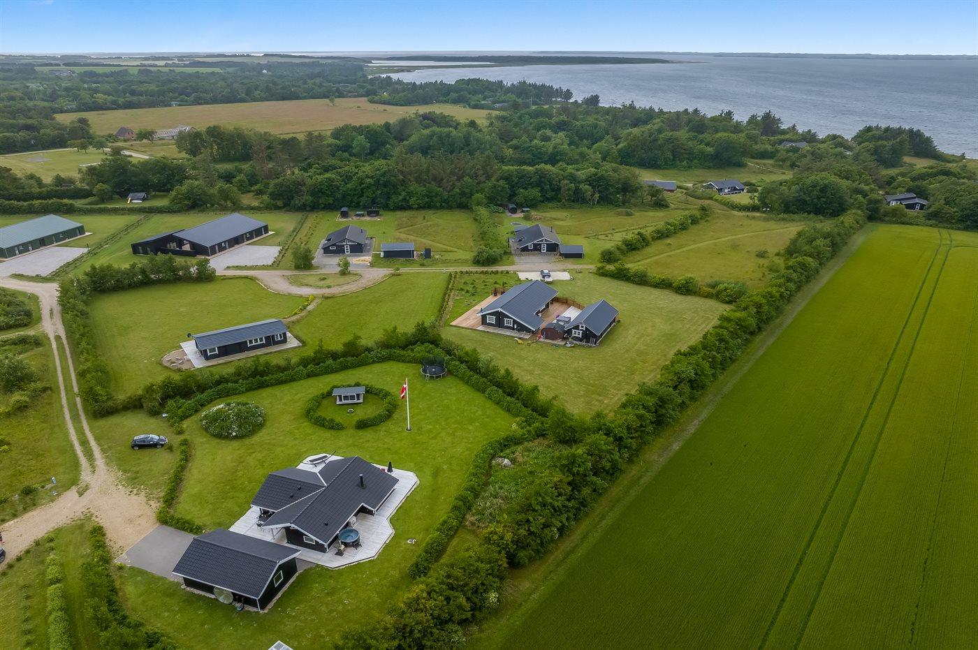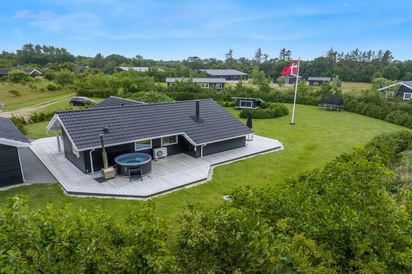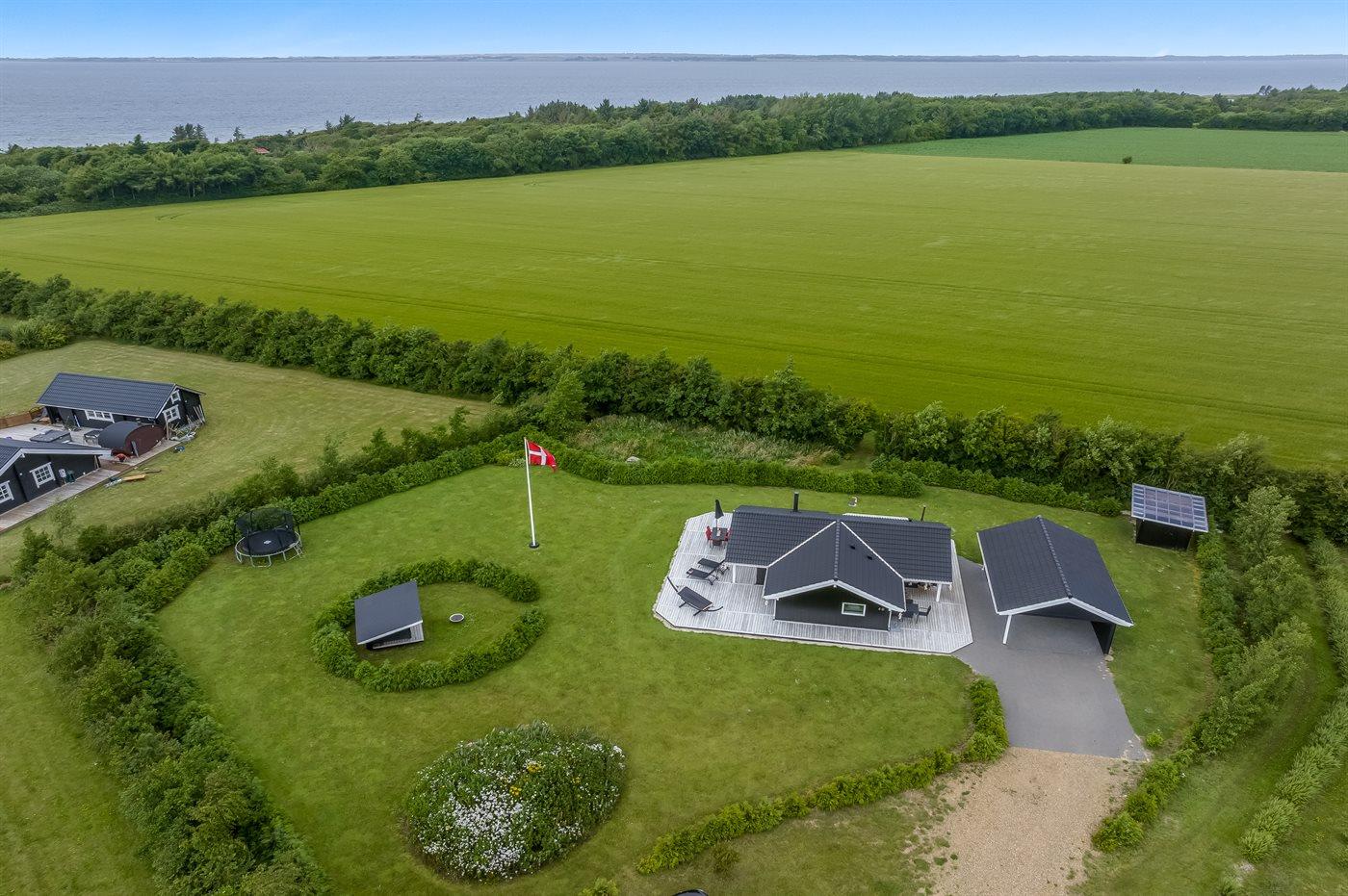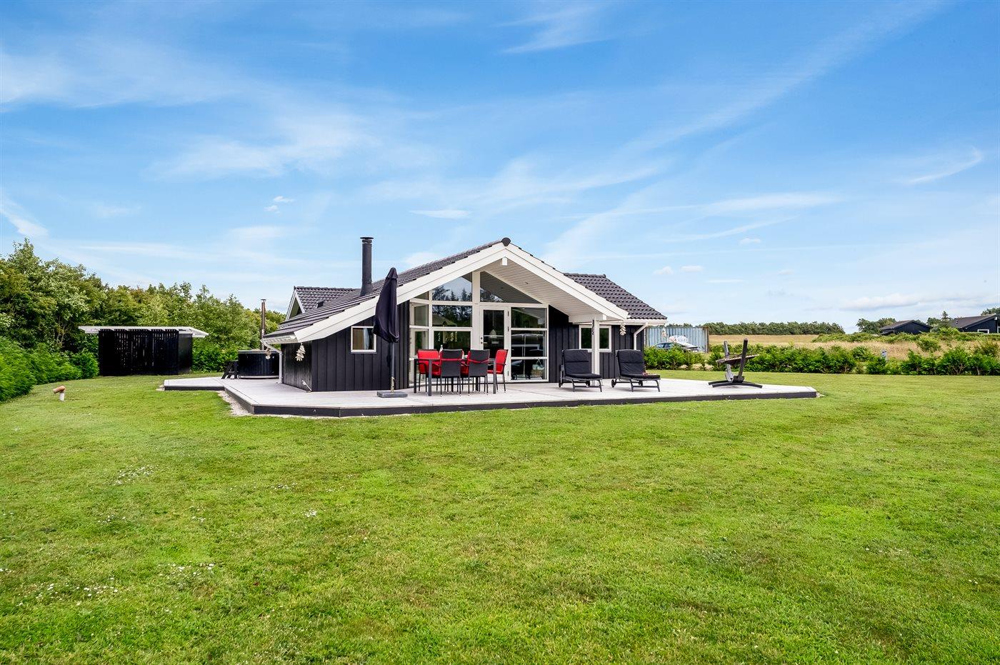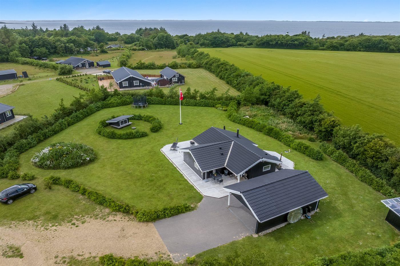 Ruim vakantiehuis in Spøttrup met hot tub en grote tuin, vlak bij een fjord.