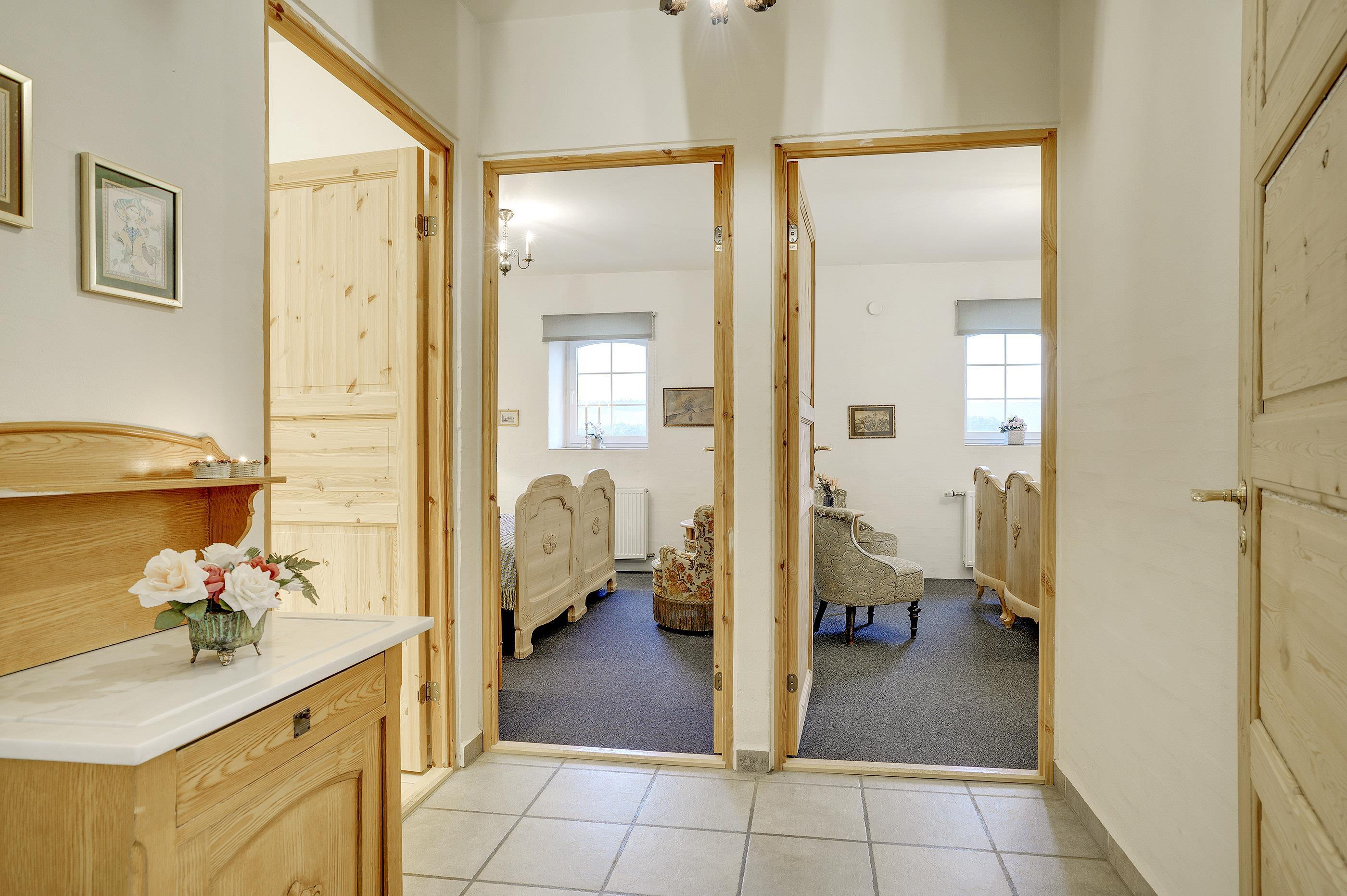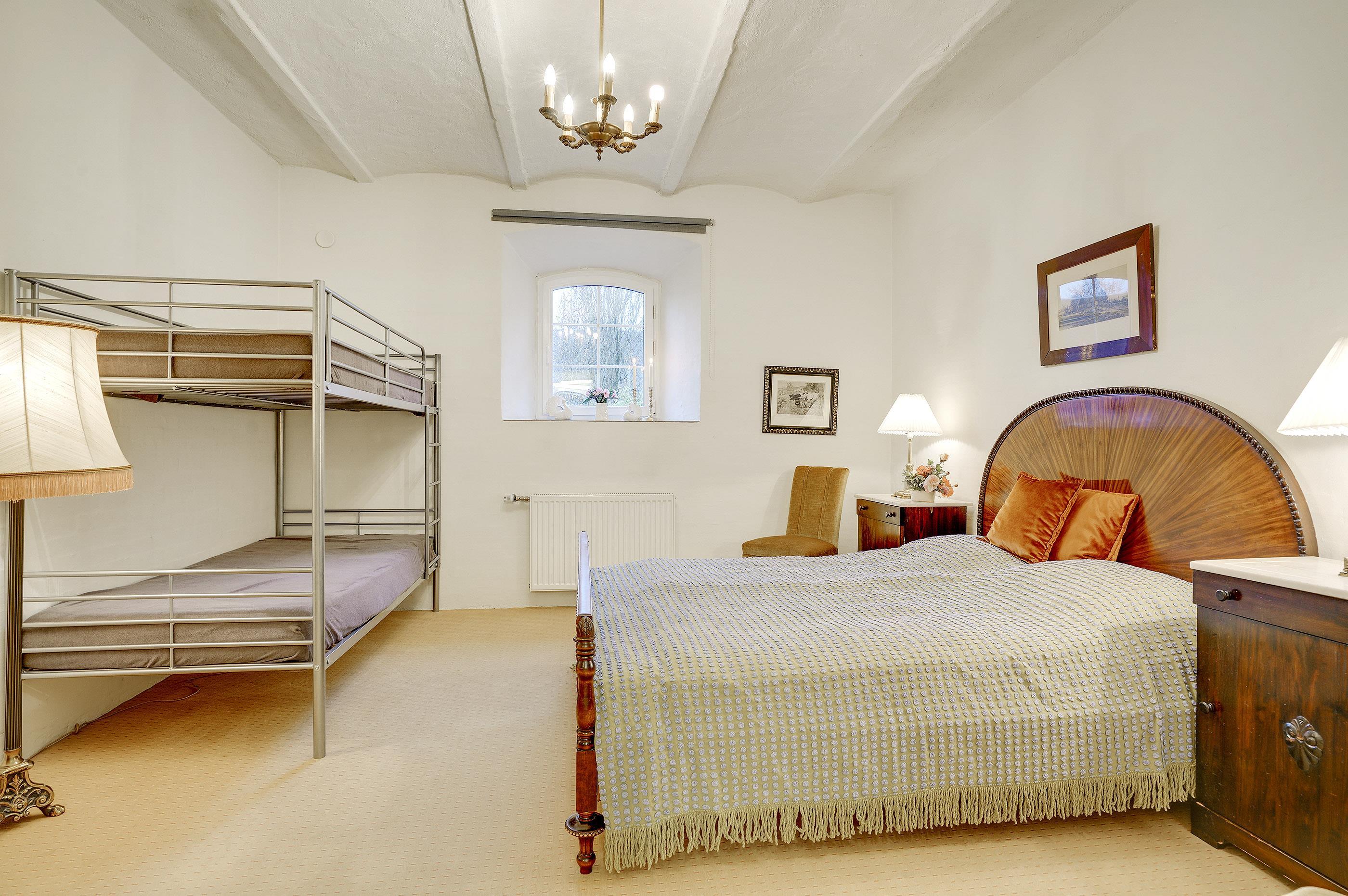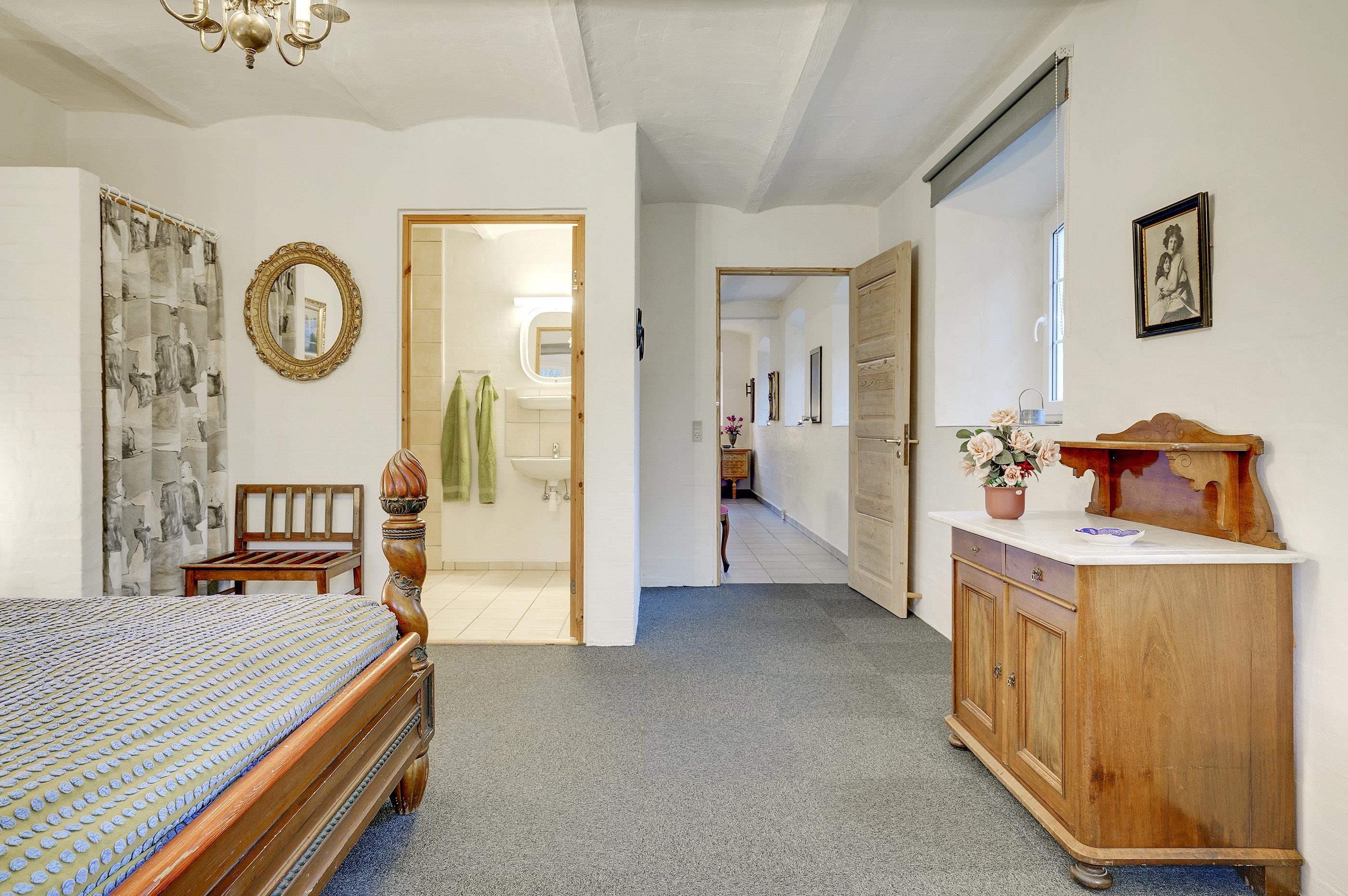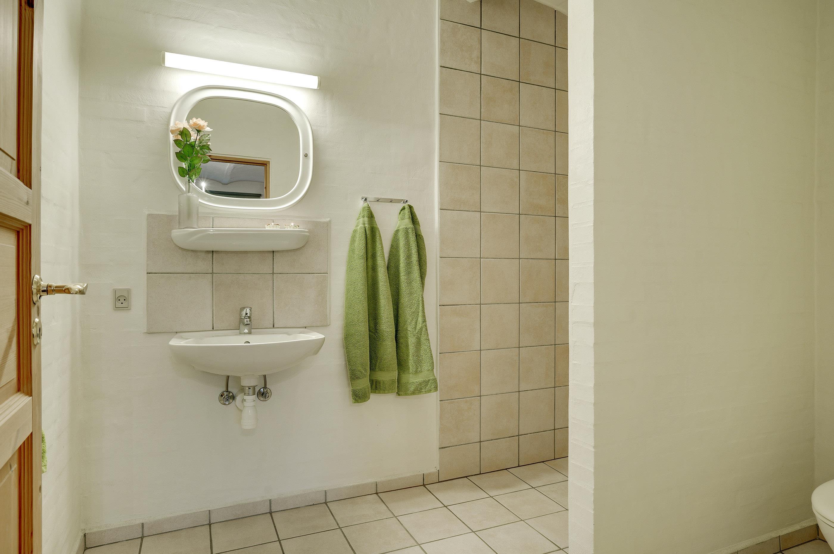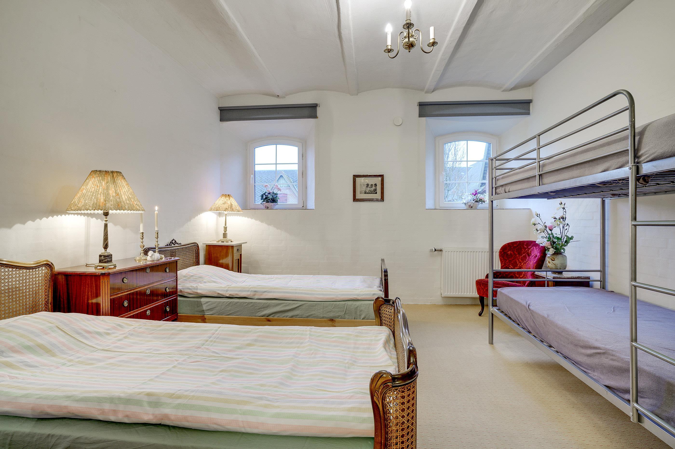 Hesthave has 10 bathrooms with a shower and underfloor heating and 2 separate toilets. There is a total of 12 bedrooms – 12 double beds and 6 bunkbeds. Additionally, there is an annex with 5 bedrooms with a total of 10 extra beds, which can be rented for a few nights, a party room and a sports hall. Please note that guests under 16 are not allowed in the main building, and only bookings with the purpose of holidays are accepted. The party room can have 80-100 persons and has to be rented separately. Please contact us for further information +45 6441 2622.