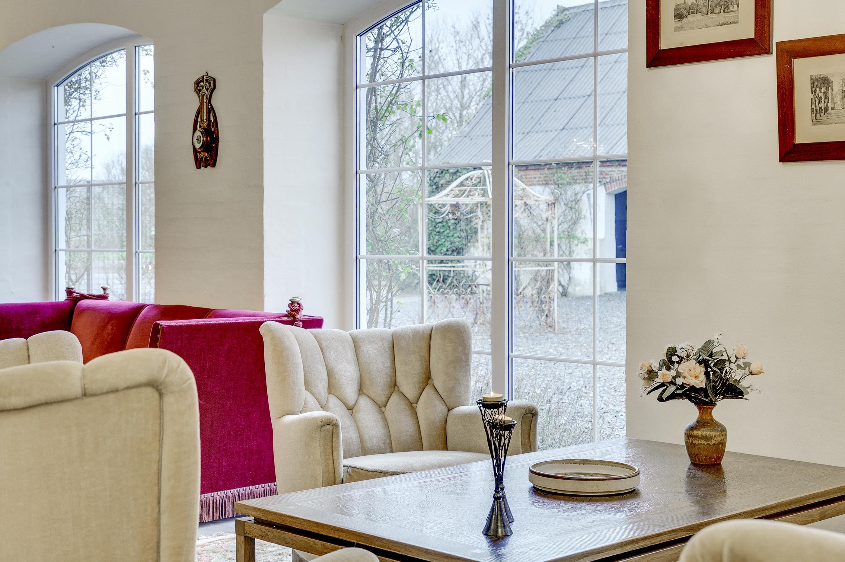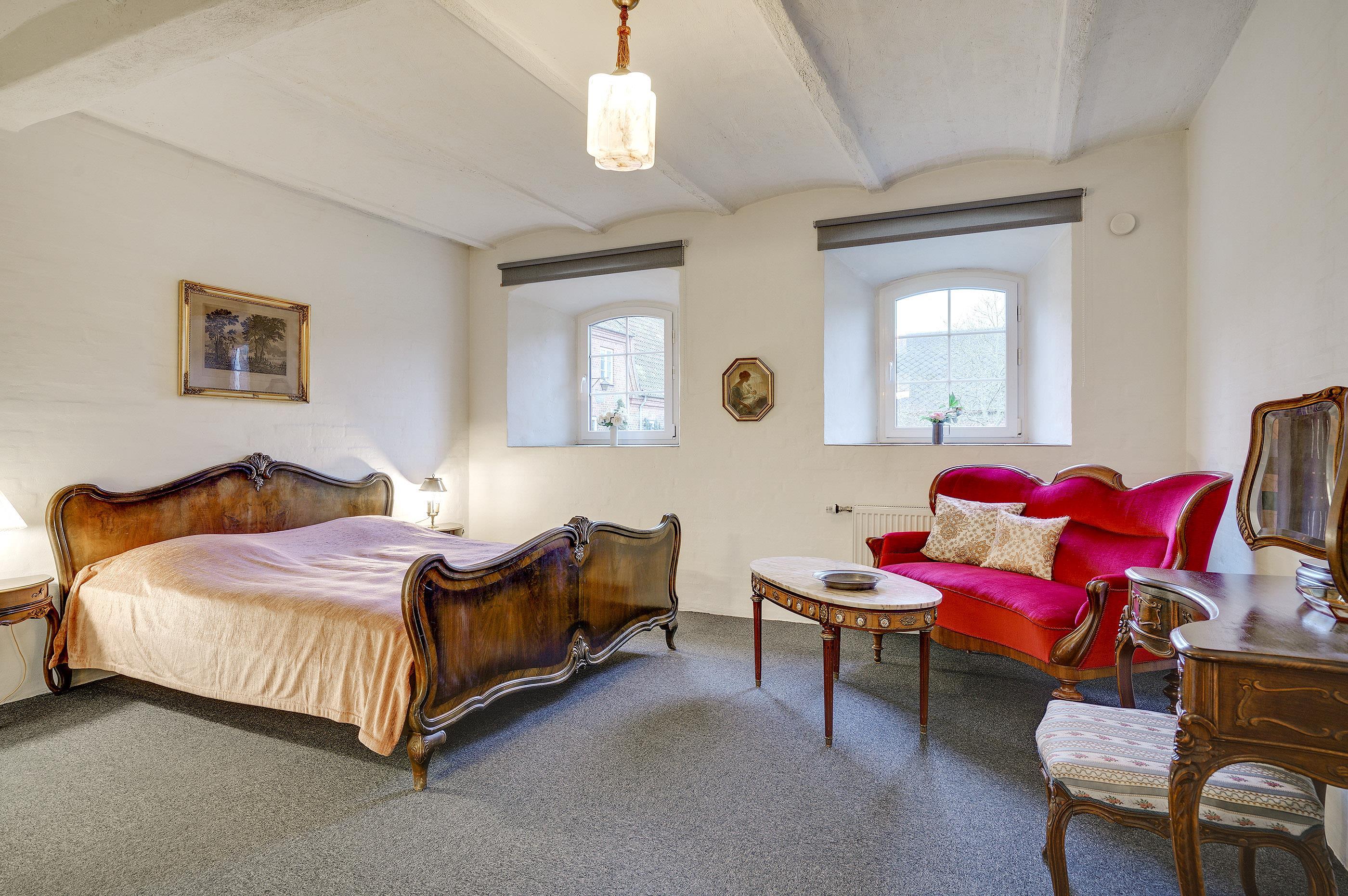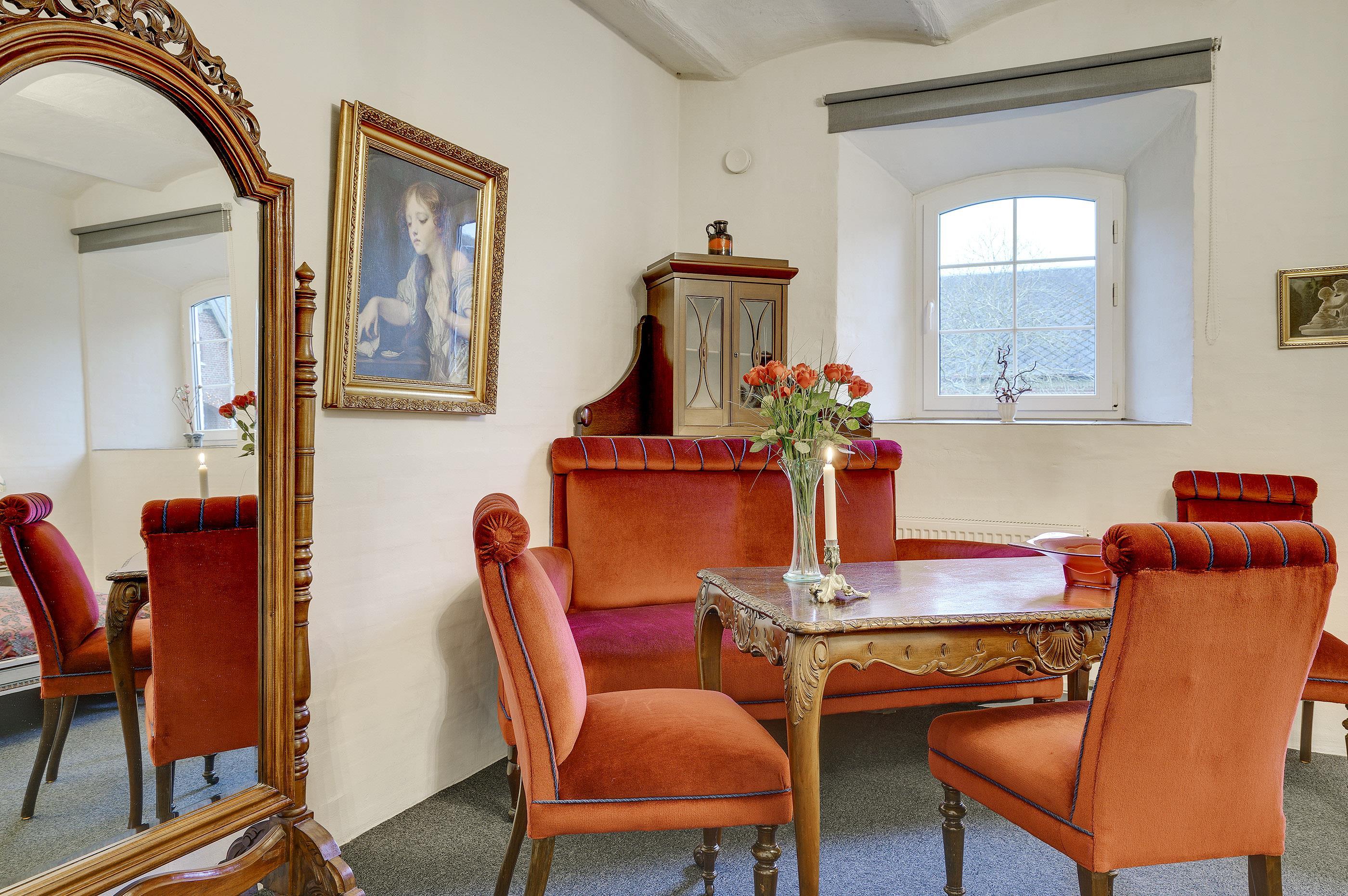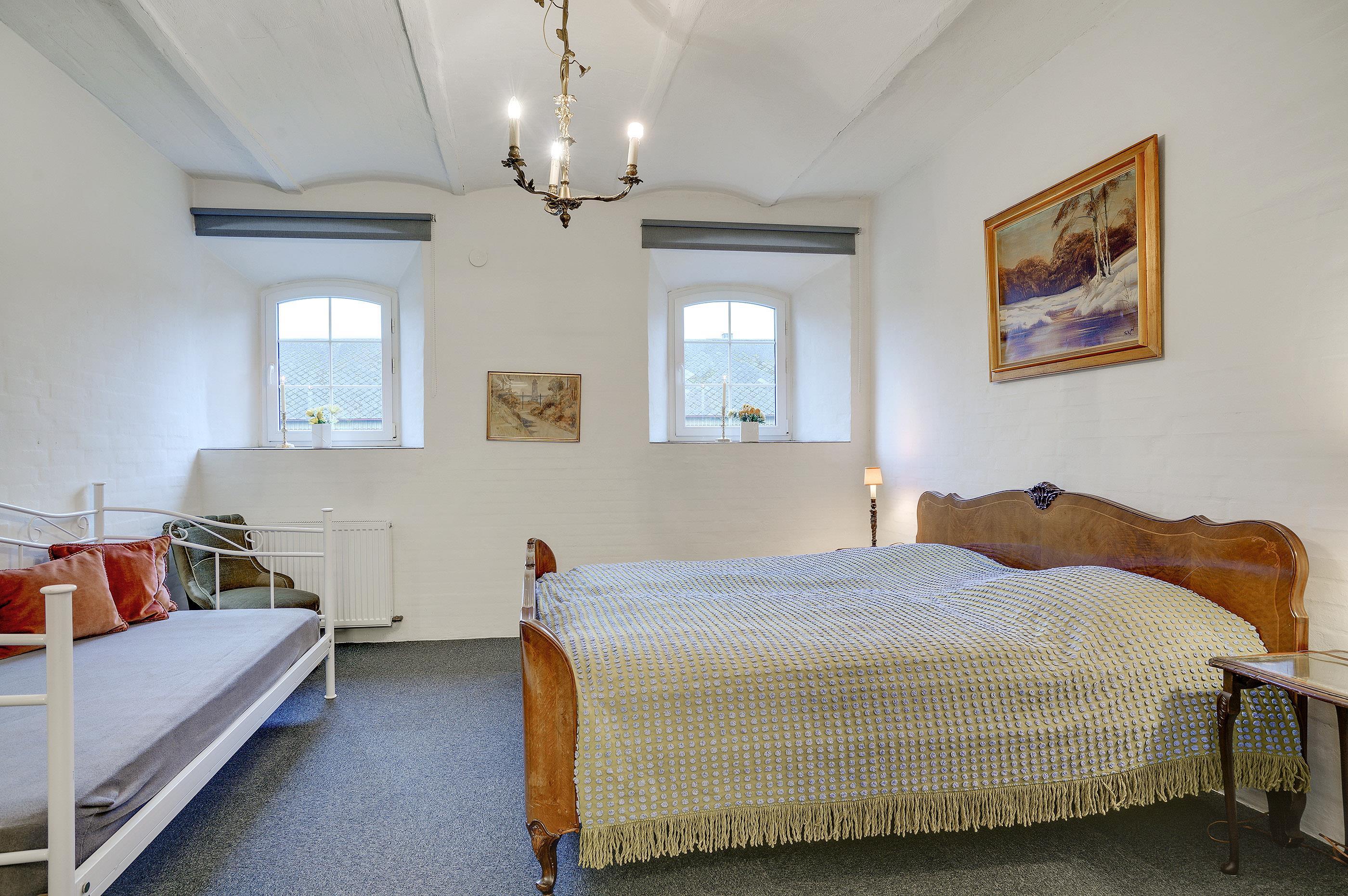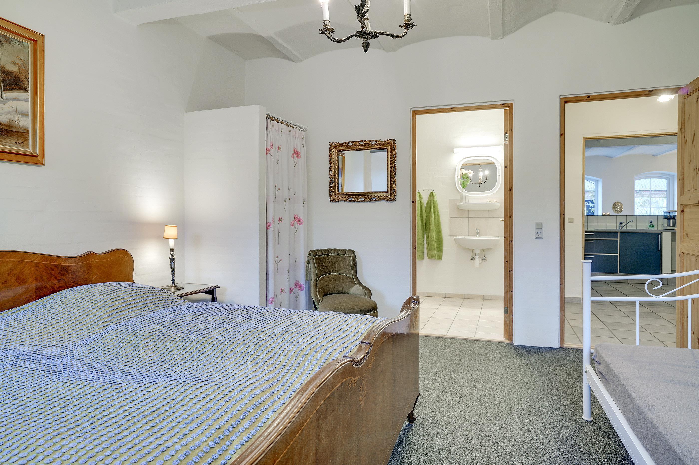 Hesthave has 10 bathrooms with a shower and underfloor heating and 2 separate toilets. There is a total of 12 bedrooms – 12 double beds and 6 bunkbeds. Additionally, there is an annex with 5 bedrooms with a total of 10 extra beds, which can be rented for a few nights, a party room and a sports hall. Please note that guests under 16 are not allowed in the main building, and only bookings with the purpose of holidays are accepted. The party room can have 80-100 persons and has to be rented separately. Please contact us for further information +45 6441 2622.