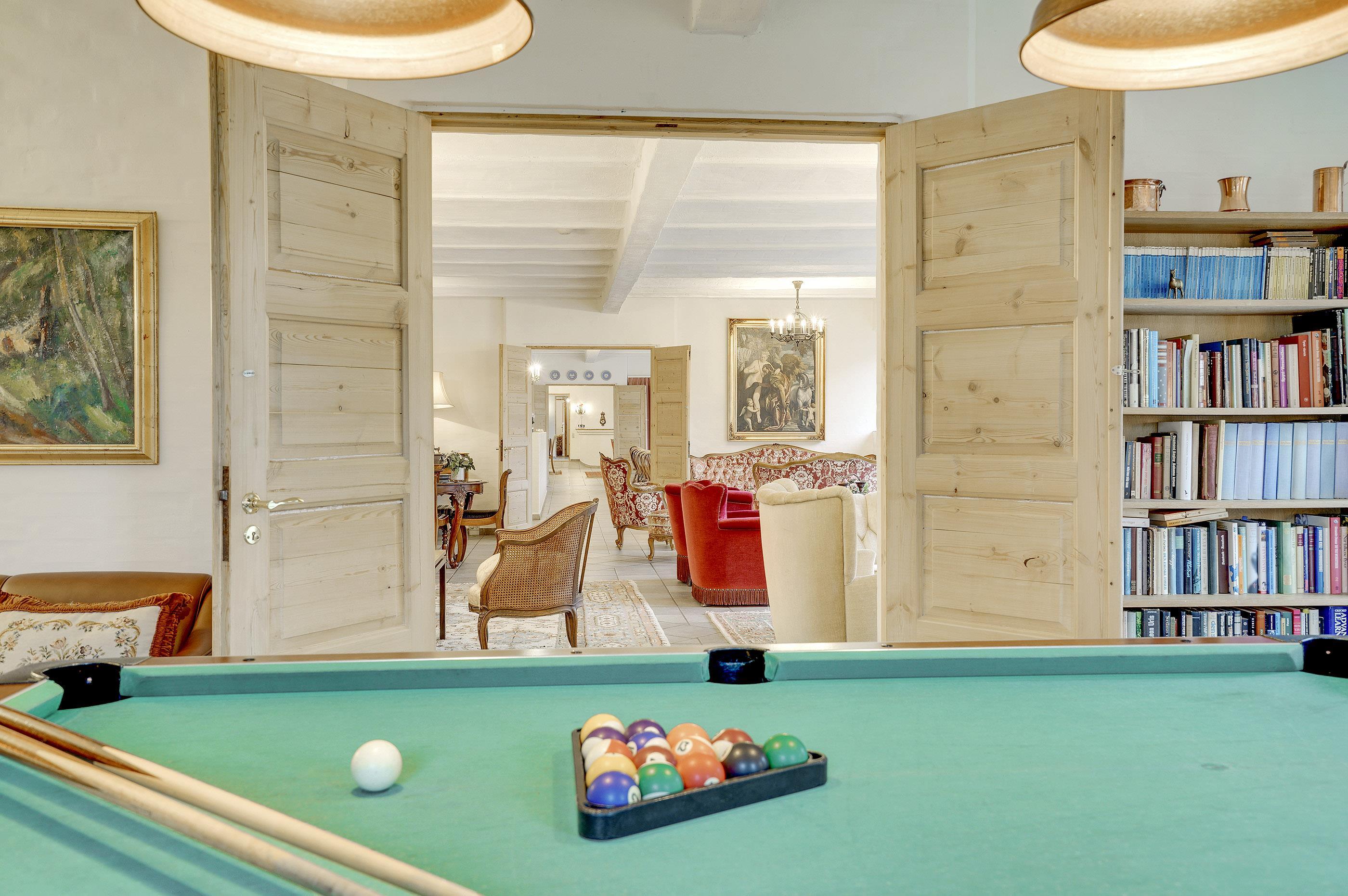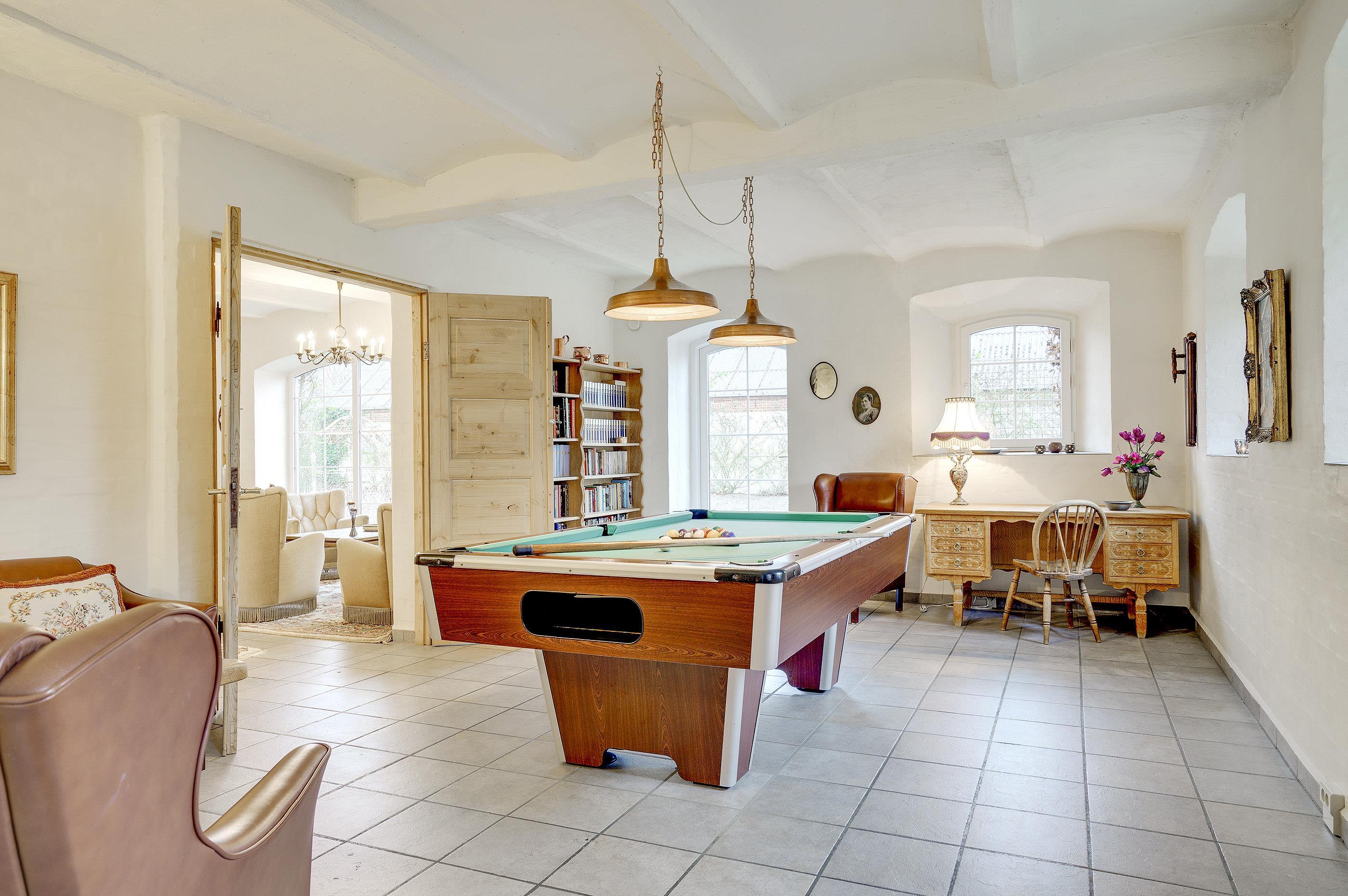 Hesthave can accommodate 30 persons, and has a swimming pool (10 m. long, 4 m. wide and 1.5 m. deep), and there is underfloor heating in the pool area, which also contains a sauna and a large whirlpool for 6 persons. Besides the pool area there are a lot of different leisure activities such as billiard, table tennis and outdoor chess (there is a DKK 500 deposit for using the billiard table, which is settled directly to the house owner) – so activities for all ages.