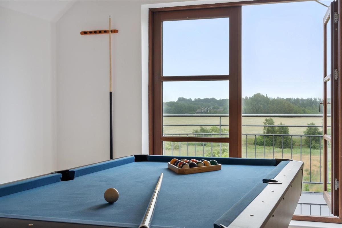 Op een heerlijk rustige locatie, omgeven door bossen en velden, wacht dit aantrekkelijke en ruime vakantiehuis op je. De lichte kamers met een inrichting die gericht is op het essentiële, nodigen je uit om te ontspannen. Maak het jezelf gemakkelijk in de verschillende zitgroepen, geniet van het betoverende uitzicht op de buitenlucht aan de koffietafel in de serre of stream je favoriete serie op de knusse bank. Biljart en darts nodigen uit tot hilarische familieduels.