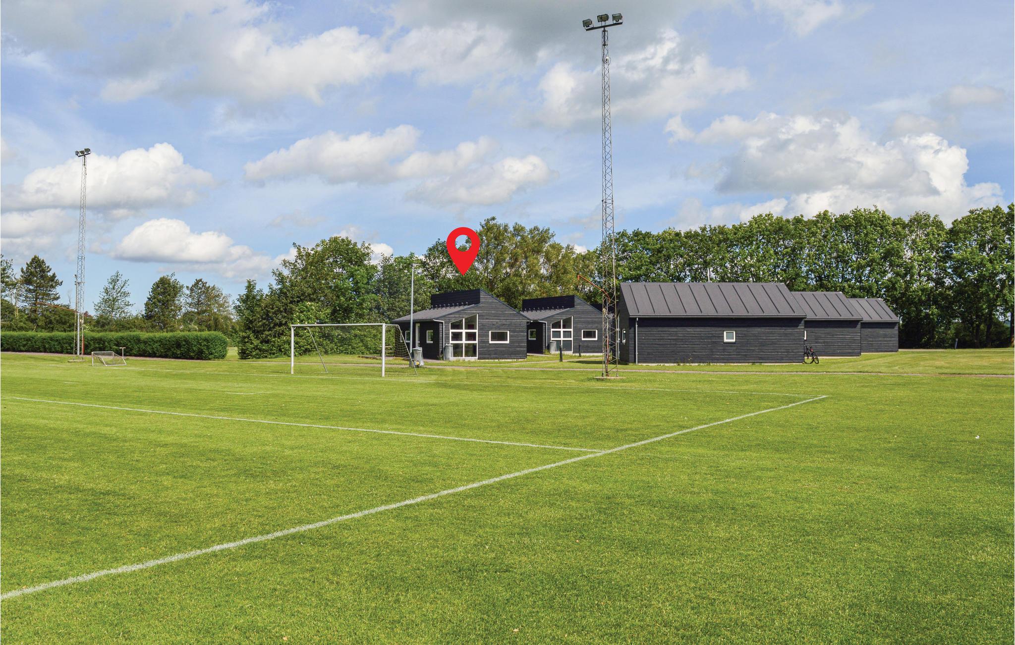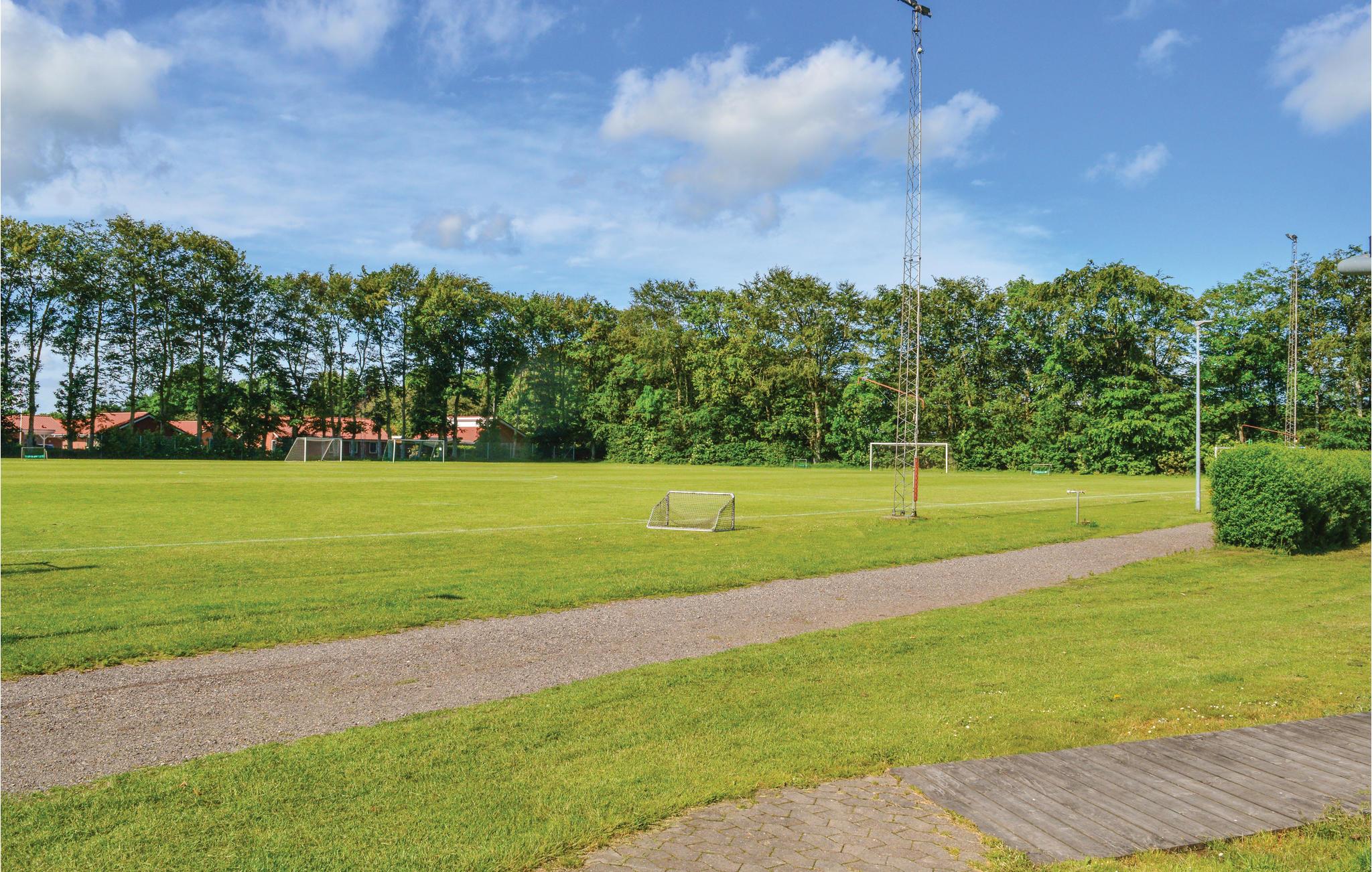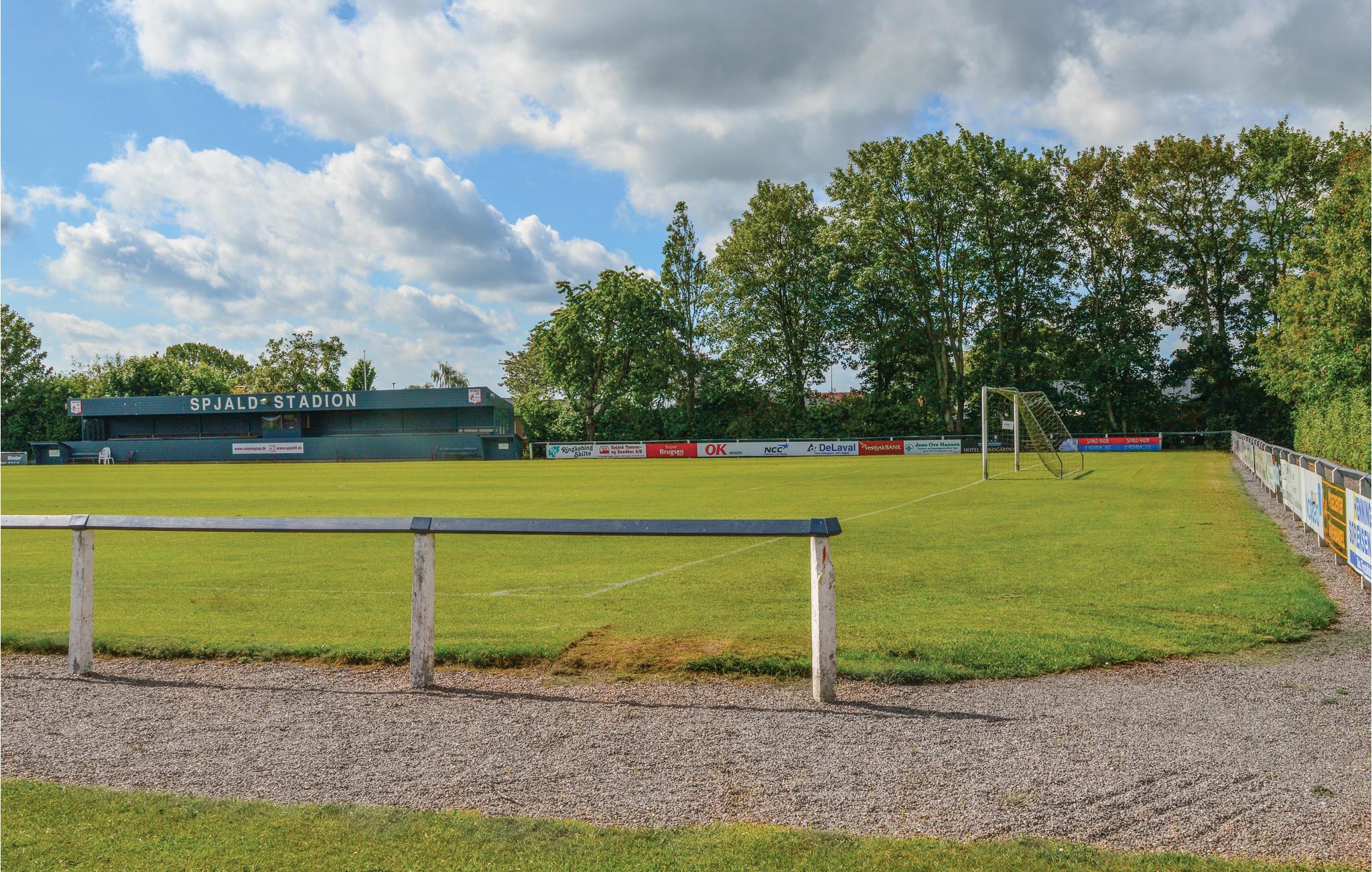 Gezellig houten vakantiehuis in Spjald, midden in natuur met zwembad en sportvelden.