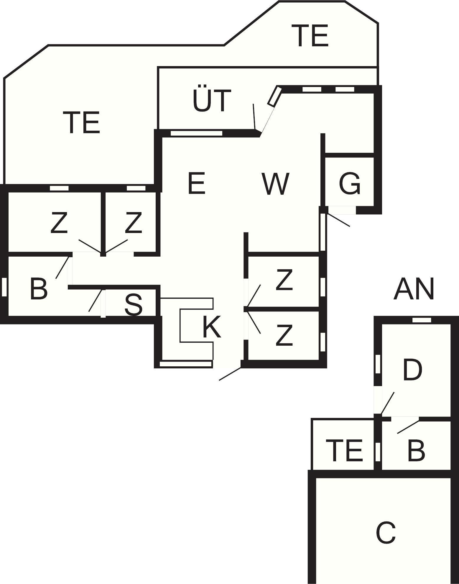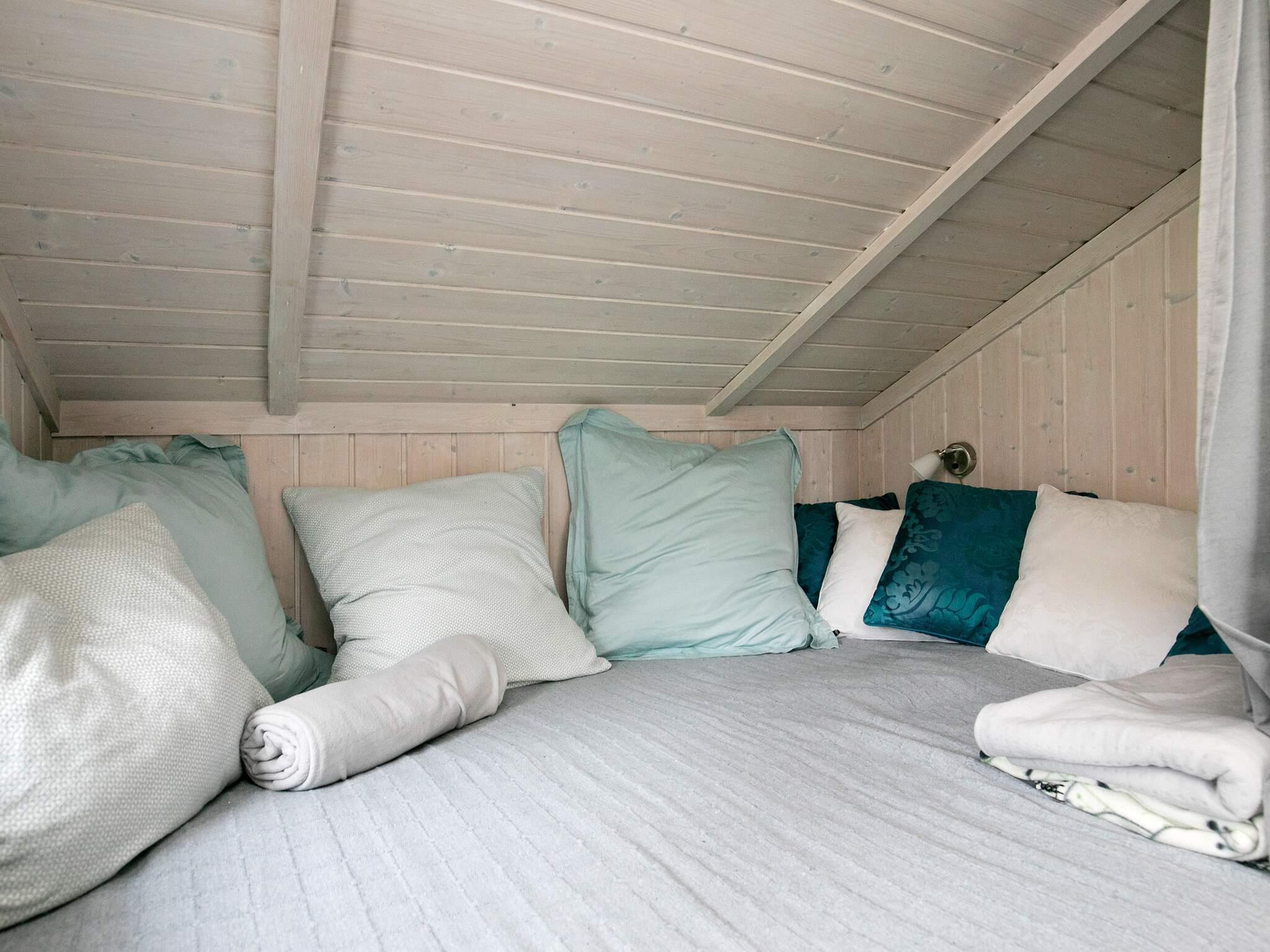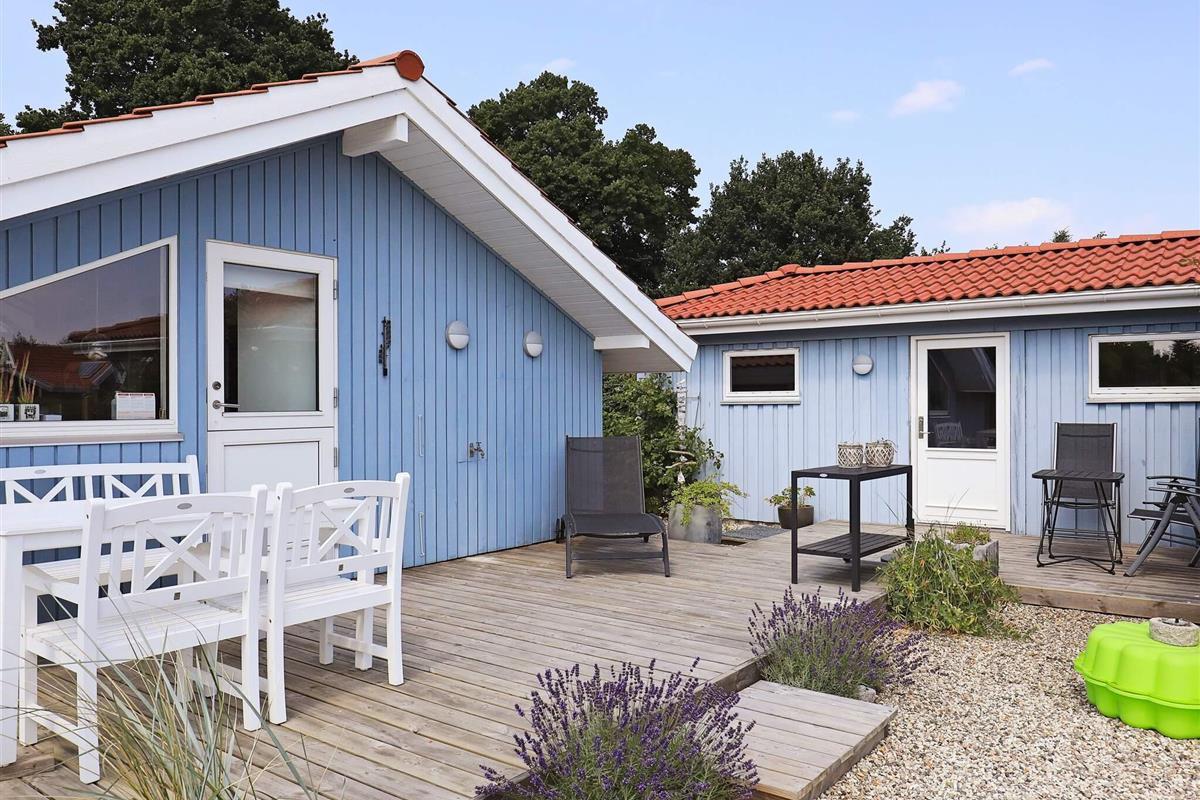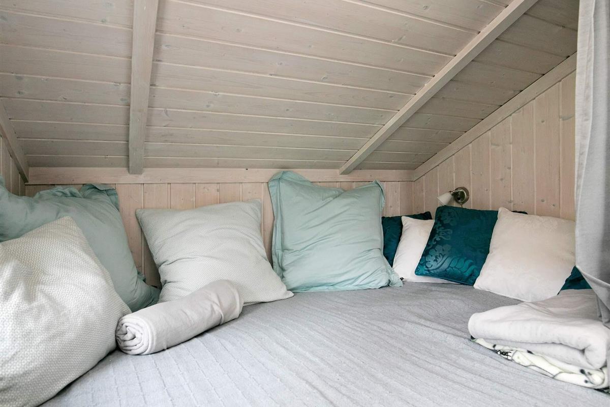 Innen erwartet Sie ein offener Küchen-/Wohnbereich, inklusive Essecke und Holzofen, ausgestattet mit gutem Mobiliar von bester dänischer Qualität. Umfassendes Kücheninventar mit u.a. Induktionsherd und eingebautem Badkofen sowie Geschirrspüler.