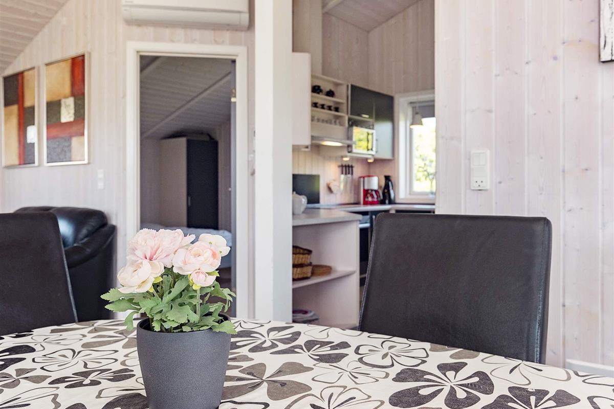 Ferienhaus mit Whirlpool und Sauna. Vom Haus aus blicken Sie auf das Wasser und die wunderschöne Naturlandschaft, die die Gegend prägt. Bei der Einrichtung wurde großer Wert darauf gelegt, dass das Ferienhaus hell wirkt. Die großen Fenster sorgen für unglaublich viel Licht im Inneren. Das Haus verfügt über zwei Badezimmer, eines mit Whirlpool für 2 Personen, Sauna, Dusche und Fußbodenheizung. Das zweite verfügt über eine Dusche und Fußbodenheizung. Kombiniertes Wohn-/Esszimmer. Das Wohnzimmer ist zusätzlich mit einem Flachbildfernseher ausgestattet, in einem Zimmer gibt es zusätzlich einen Bildschirm mit DVD-Player, ein Radio mit CD-Player und eine PlayStation. Der Küchenbereich verfügt über ein Cerankochfeld, Umluftofen, Dunstabzugshaube, Mikrowelle und Kühlschrank mit Gefrierfach. Auf der Terrasse ein zusätzlicher Gefrierschrank 140-190 l.