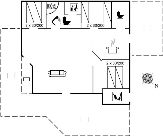 Er is 1 badkamer met douchehok en 2 toiletten, waarvan 1 gastentoilet. Er is vloerverwarming in 1 badkamer. De sauna biedt de gelegenheid tot ontspanning.