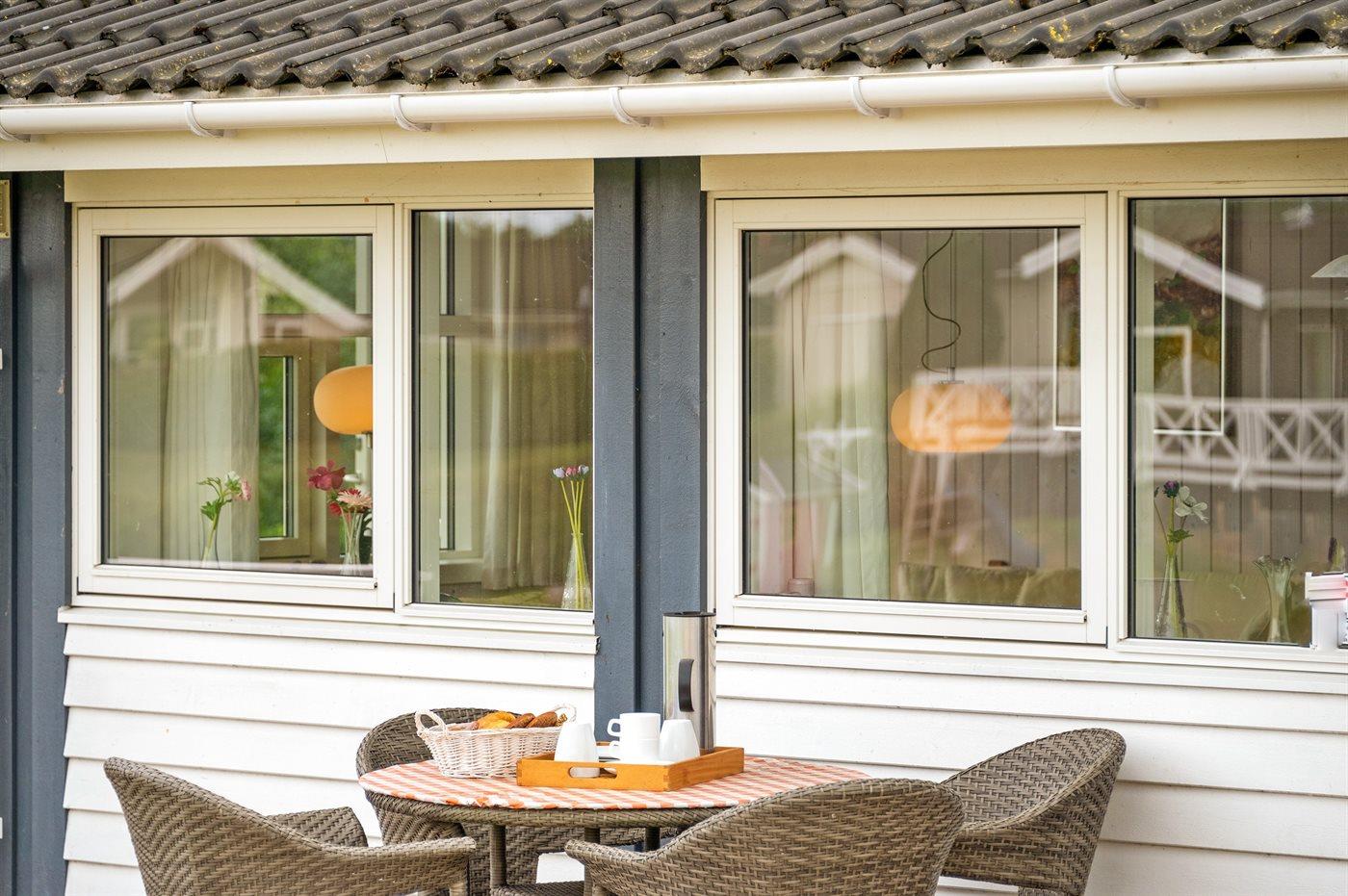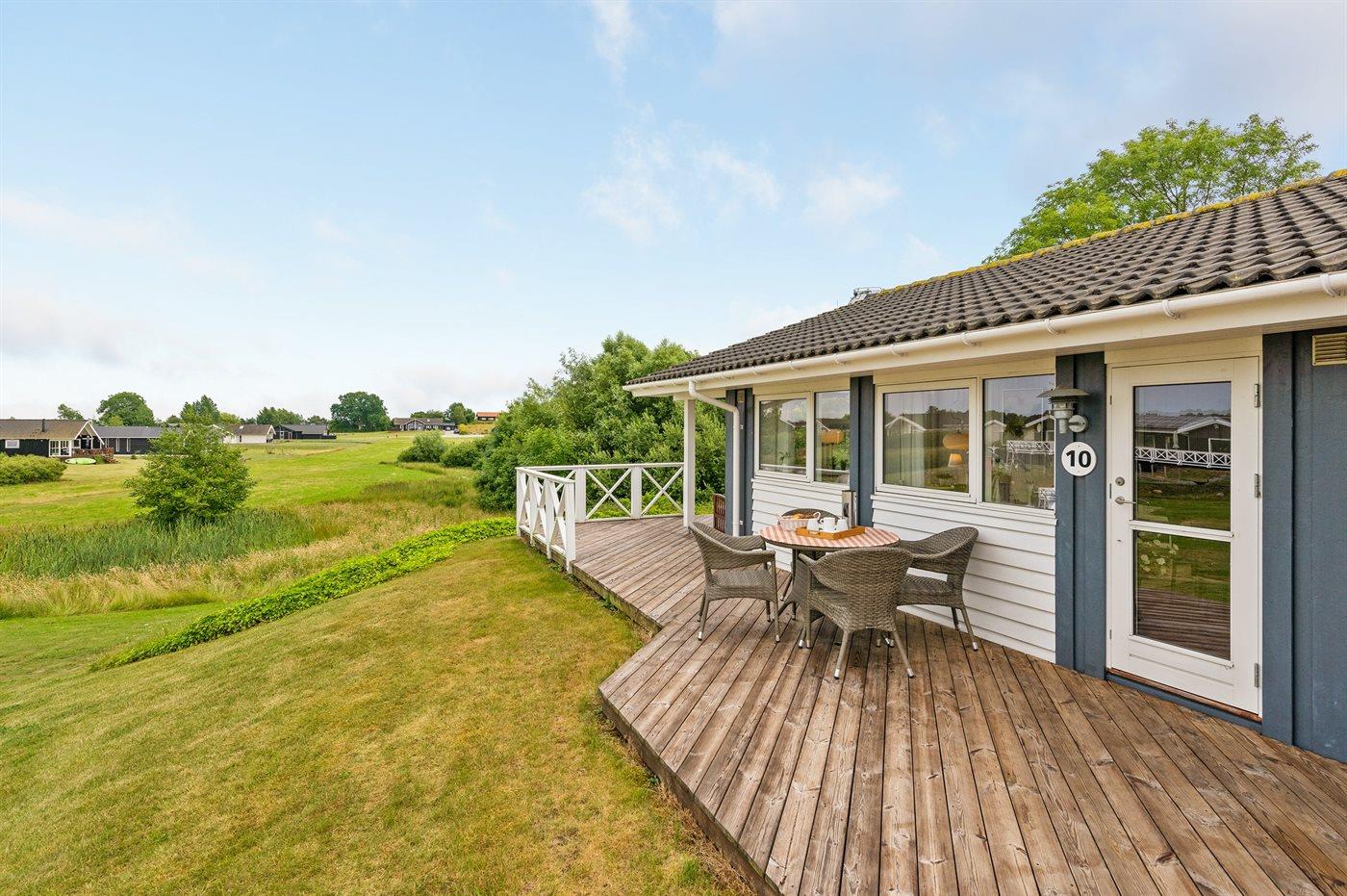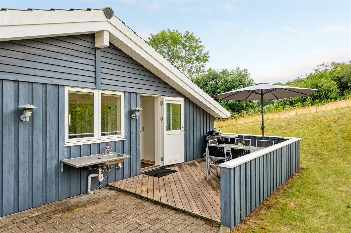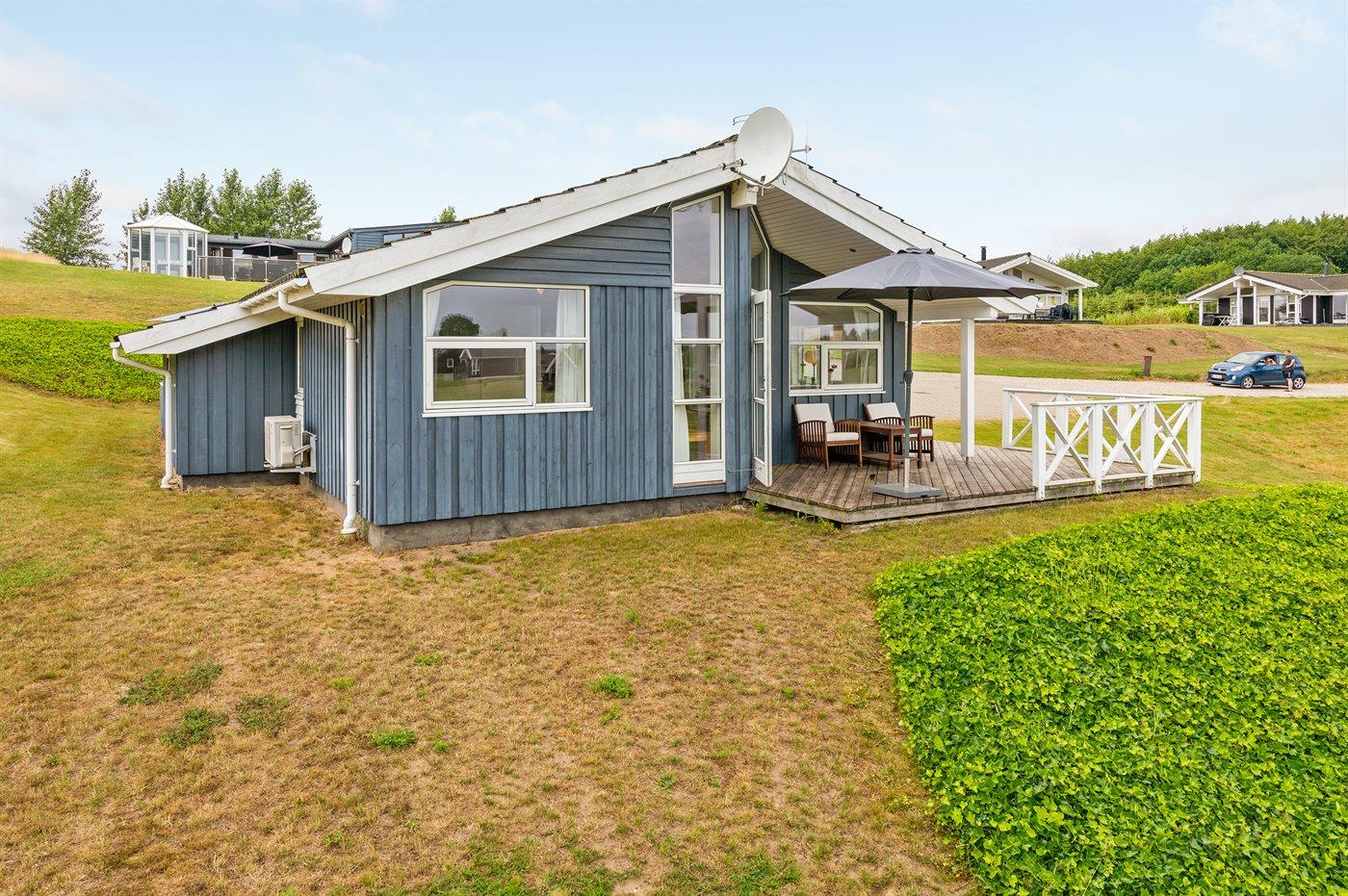 De vakantiewoning is gelegen op een 1200 m² groot aangelegde tuin. Afstand tot de zee 600 m. Dichtstbijzijnde winkel 4000 m. Bij de vakantiewoning hoort 45 m² terras. Daarnaast is er een 3 m² groot overdekt terras. Gereedschapsruimte. Barbecue. Parkeerplaats bij het huis.