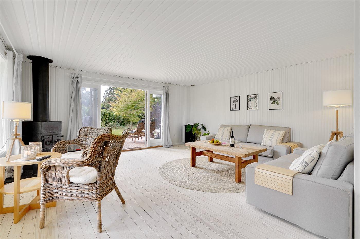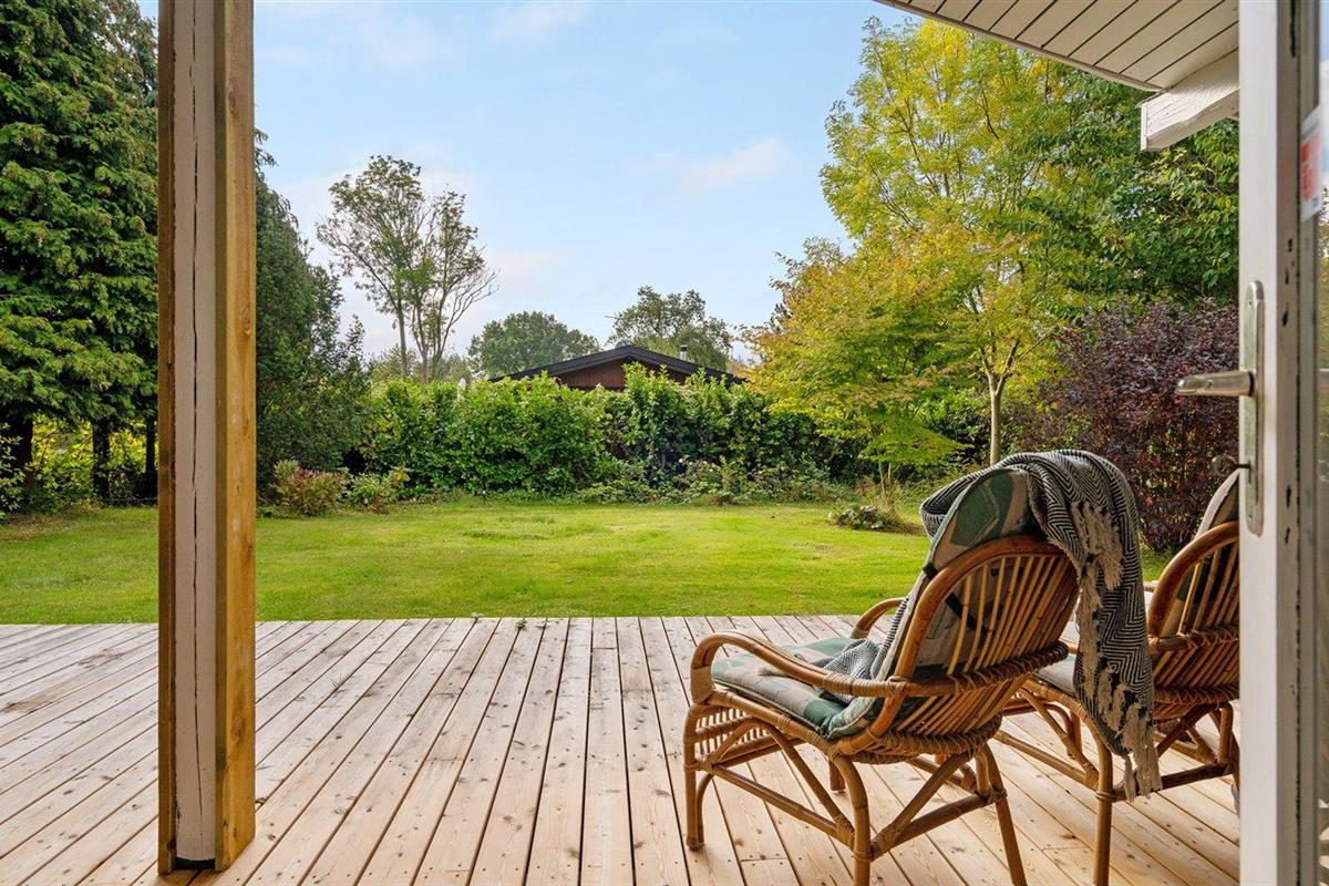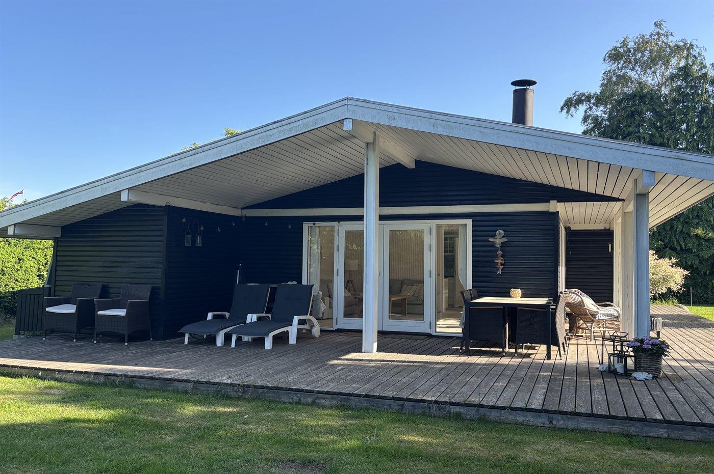 De vakantiewoning is gelegen op een 1287 m² groot aangelegde tuin. Afstand tot de zee 400 m. Afstand tot meer 20 m. Dichtstbijzijnde winkel 1500 m. Bij de vakantiewoning hoort 90 m² terras. Daarnaast is er een 45 m² groot overdekt terras.Vuurplaats. Gasbarbecue ter beschikking. Parkeerplaats bij het huis.