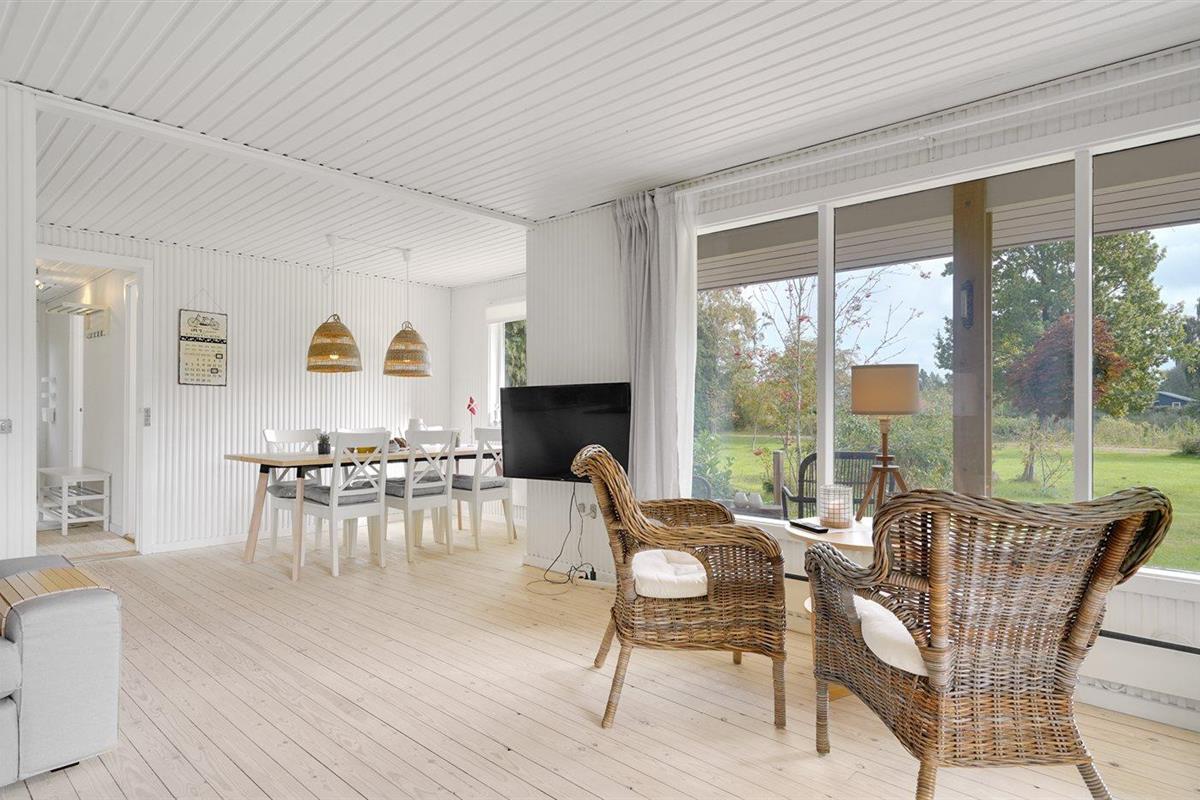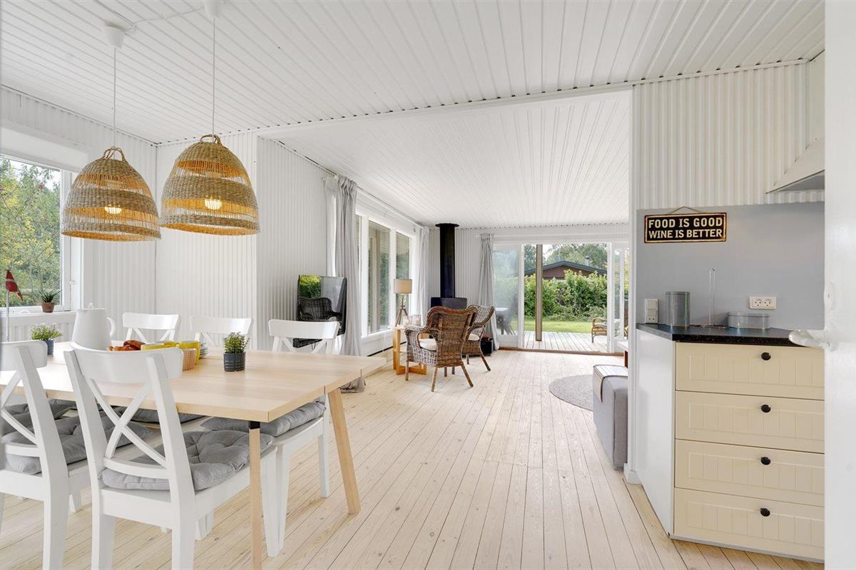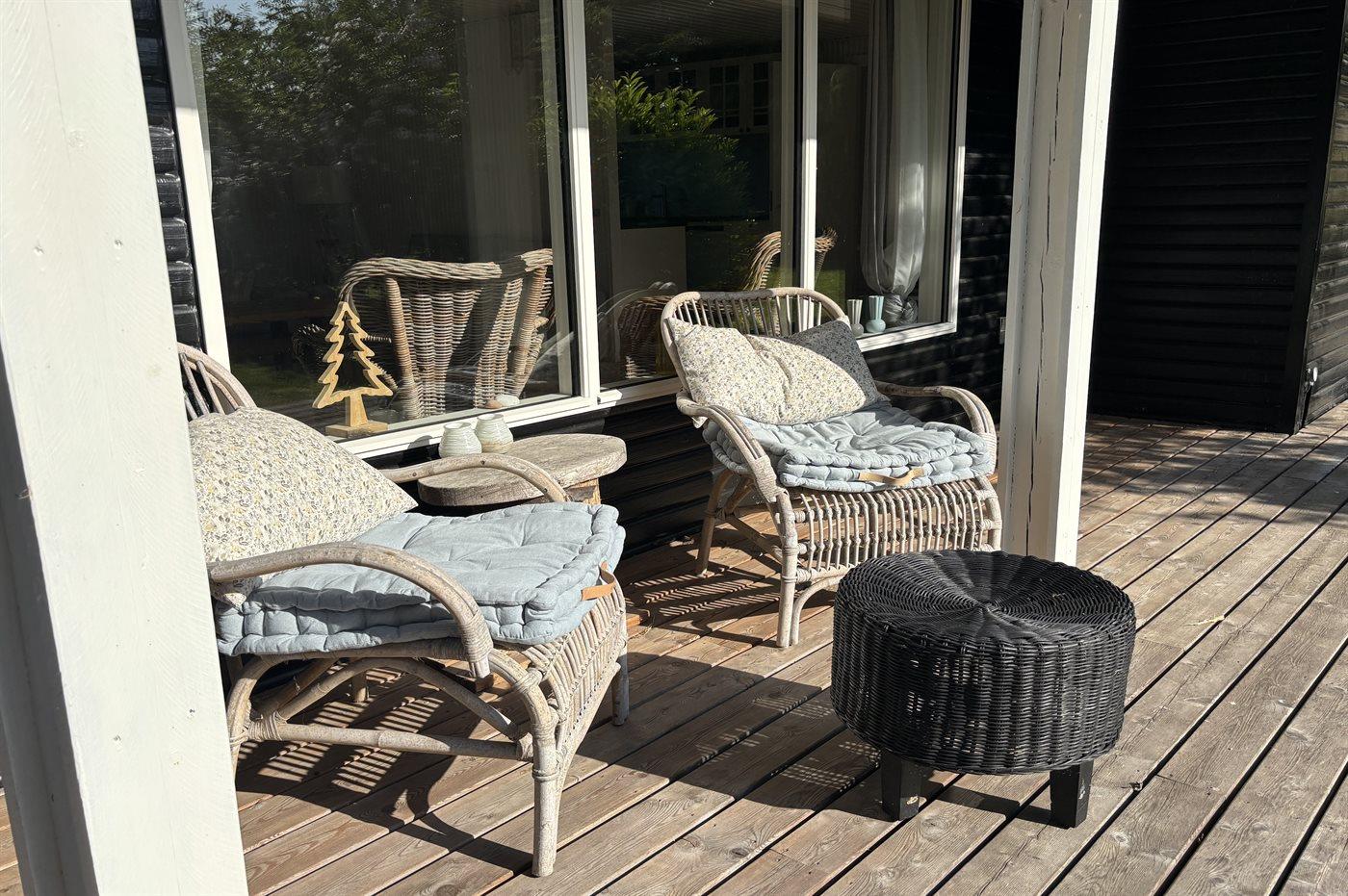De vakantiewoning is gelegen op een 1287 m² groot aangelegde tuin. Afstand tot de zee 400 m. Afstand tot meer 20 m. Dichtstbijzijnde winkel 1500 m. Bij de vakantiewoning hoort 90 m² terras. Daarnaast is er een 45 m² groot overdekt terras.Vuurplaats. Gasbarbecue ter beschikking. Parkeerplaats bij het huis.