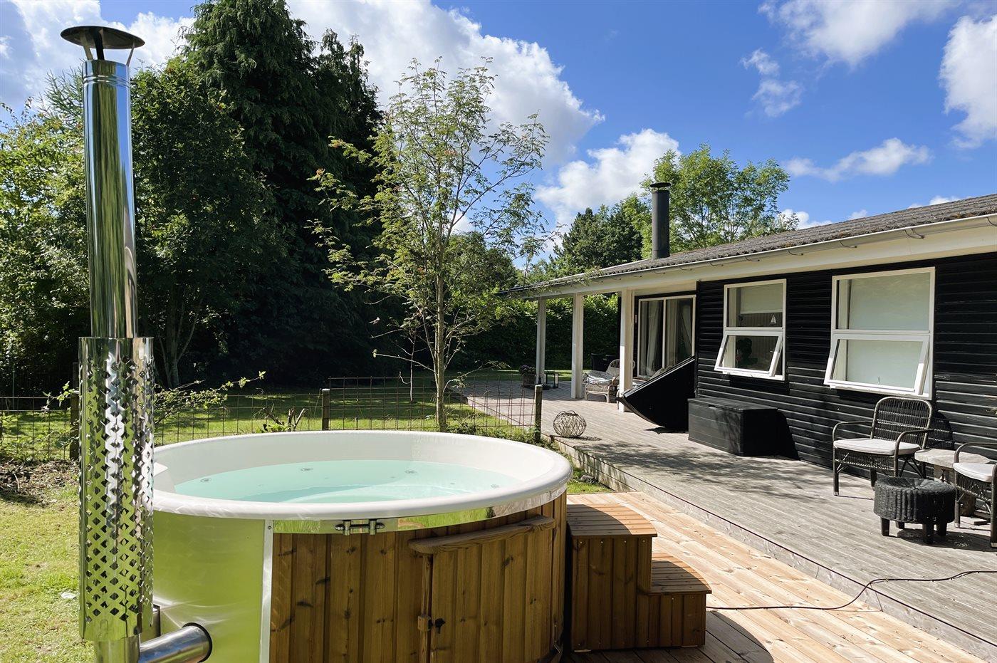 Het buiten hot tub biedt ontspanning aan 4 personen.