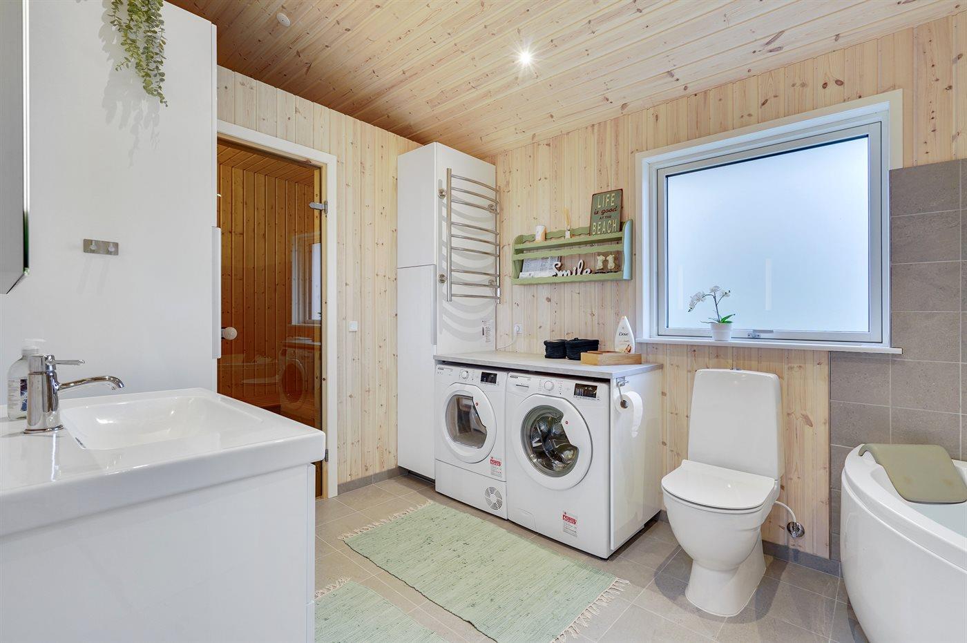 Er is 2 badkamers met douchehok en 2 toiletten. Er is vloerverwarming in 1 badkamer. De sauna biedt de gelegenheid tot ontspanning.