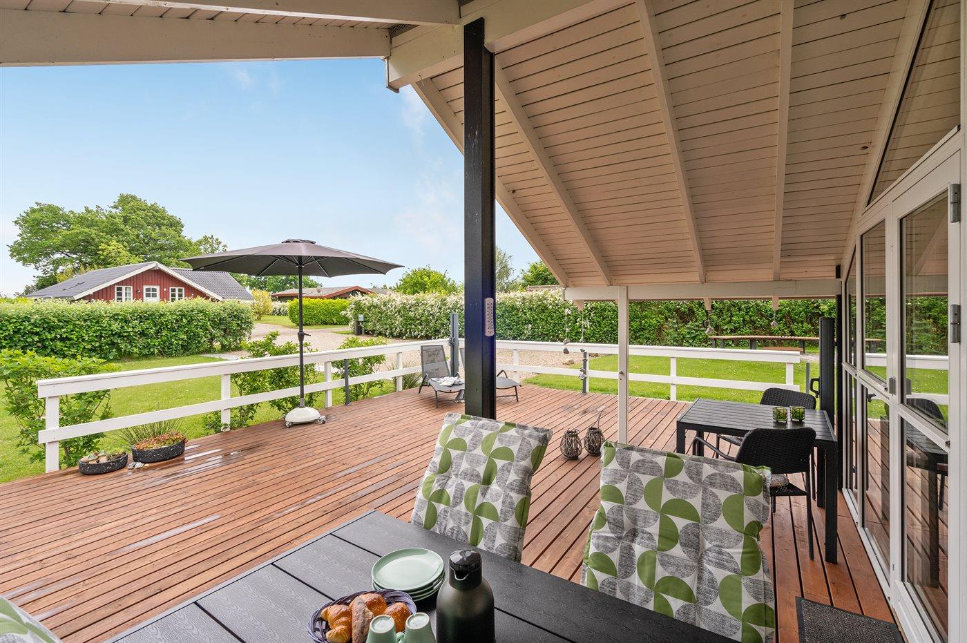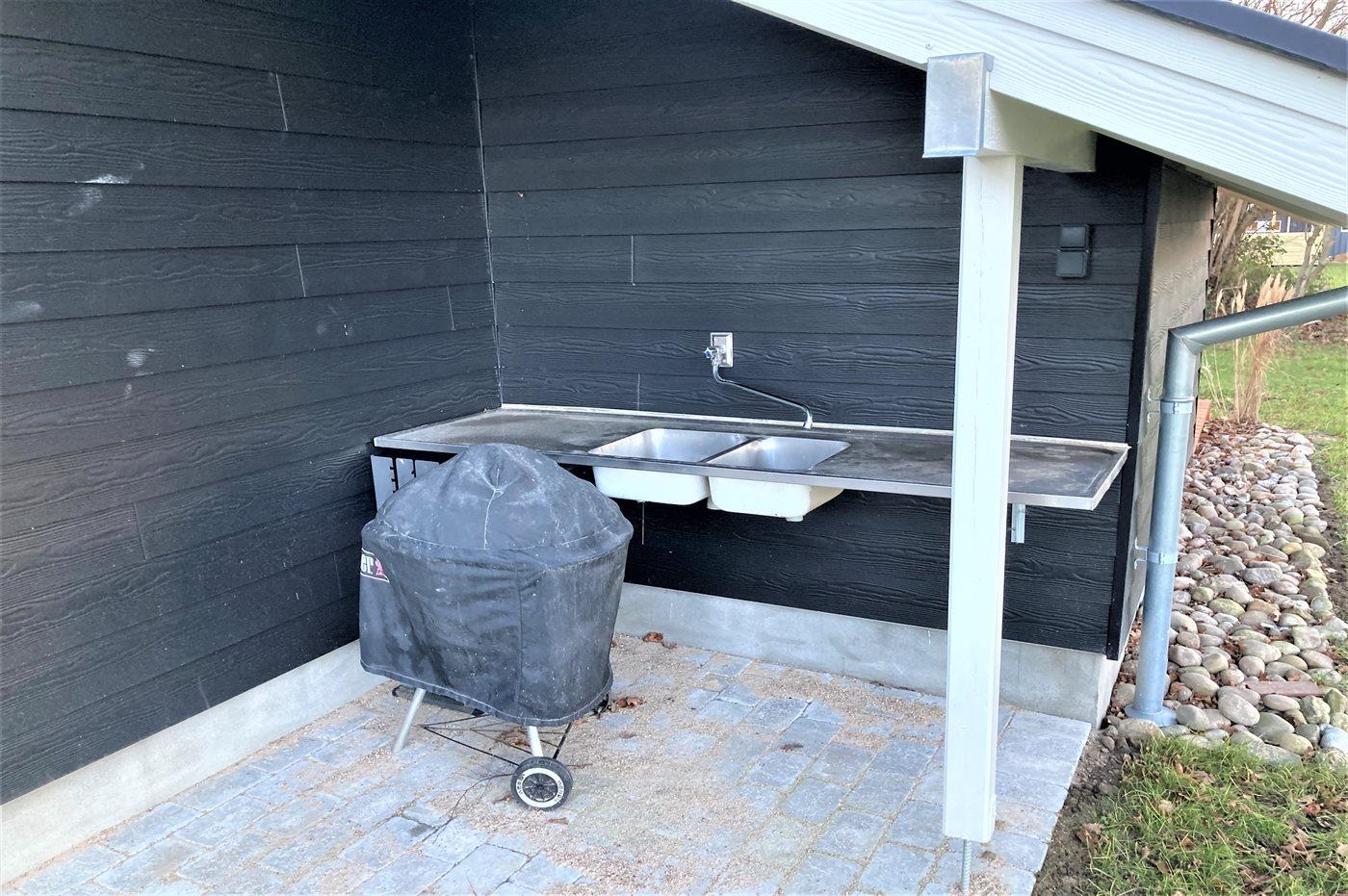De vakantiewoning is gelegen op een 1213 m² groot aangelegde tuin. Afstand tot de zee 275 m. Dichtstbijzijnde winkel 5000 m. Bij de vakantiewoning hoort 102 m² terras. Daarnaast is er een 28 m² groot overdekt terras. Gereedschapsruimte. Afstand tot speelplaats 250 m. Barbecue. Parkeerplaats bij het huis.