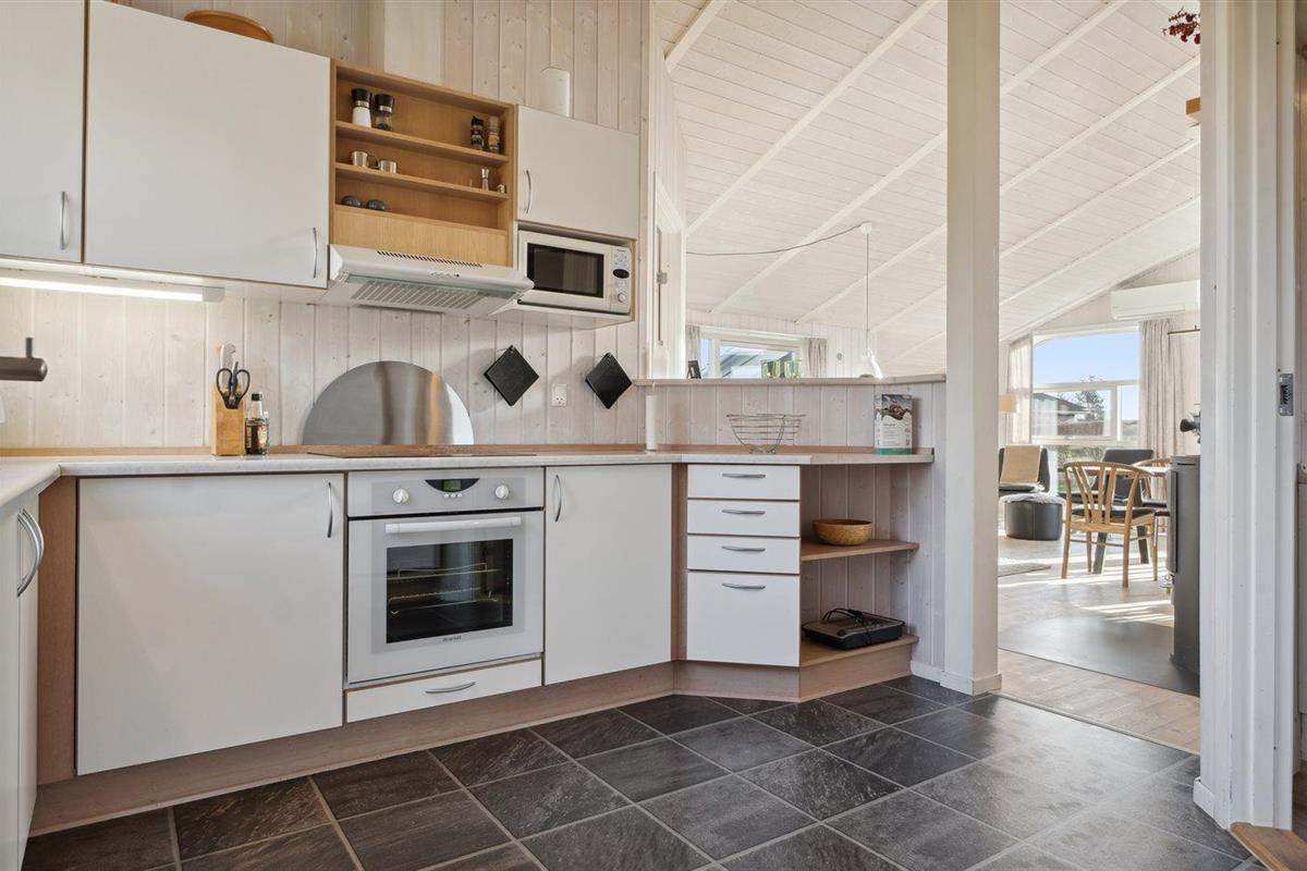 De keuken is uitgerust met koelkast Er is 4 inductiekookplaten, heteluchtoven, magnetron en vaatwasser.