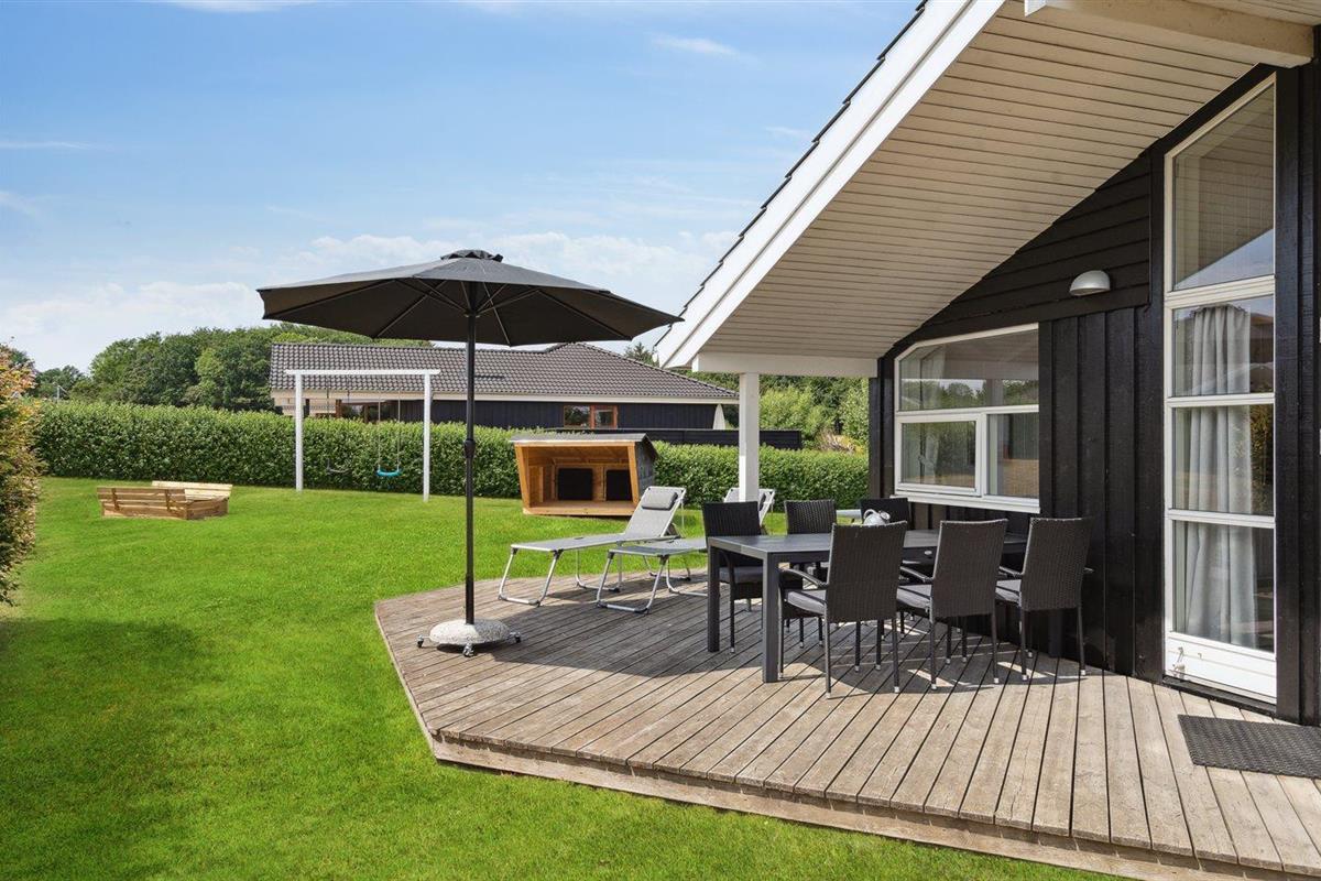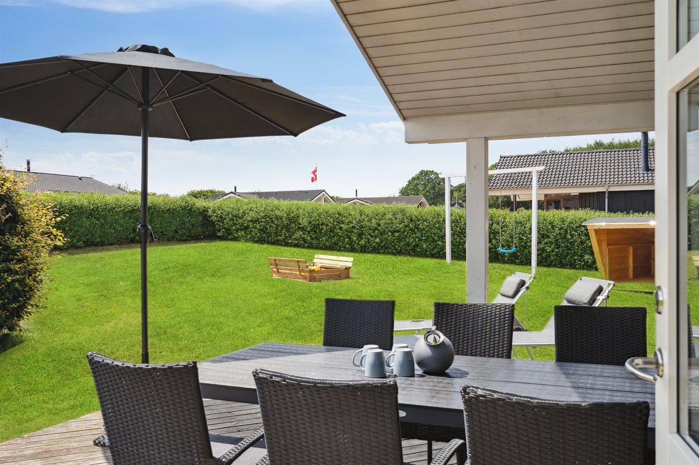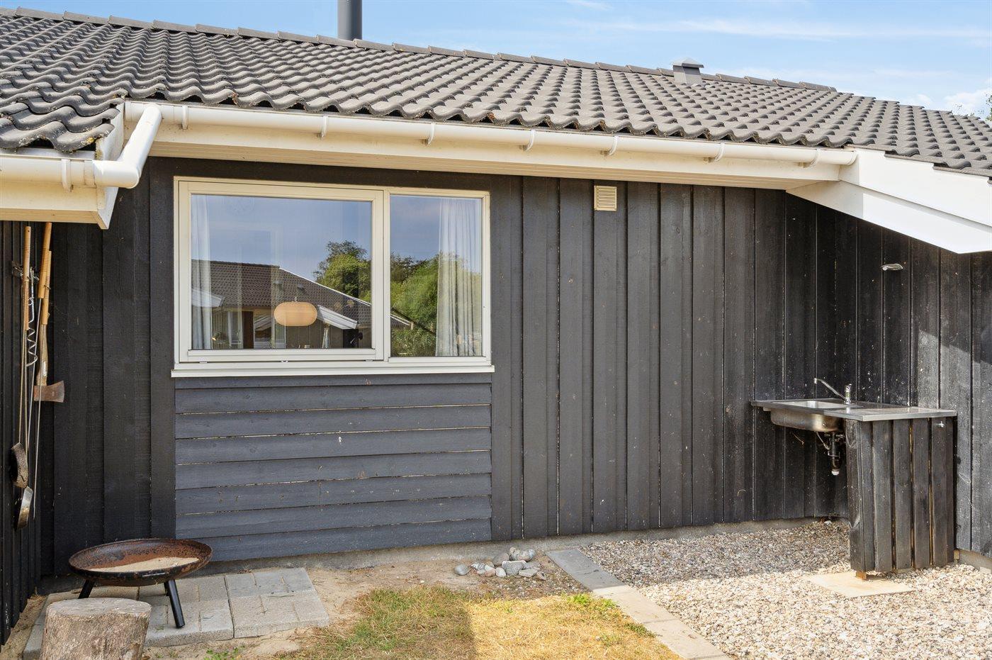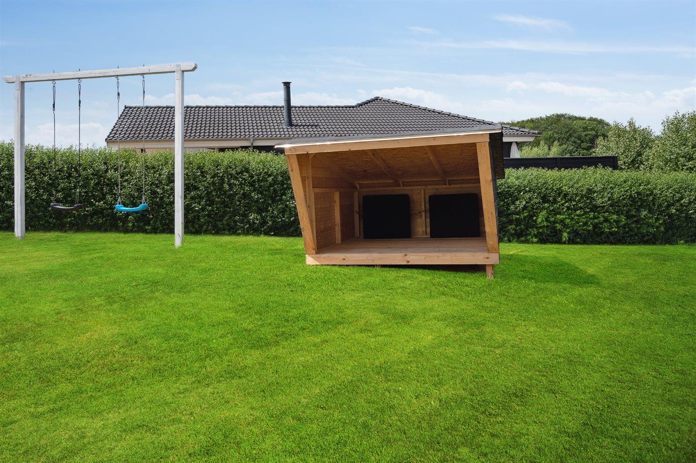 De vakantiewoning is gelegen op een 1011 m² groot aangelegde tuin. Afstand tot de zee 350 m. Dichtstbijzijnde winkel 650 m. Bij de vakantiewoning hoort terras. Daarnaast is er een overdekt terras. Gereedschapsruimte. Schommel. Zandbak.Vuurplaats. Shelter. Barbecue. Parkeerplaats bij het huis.