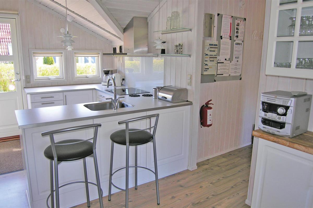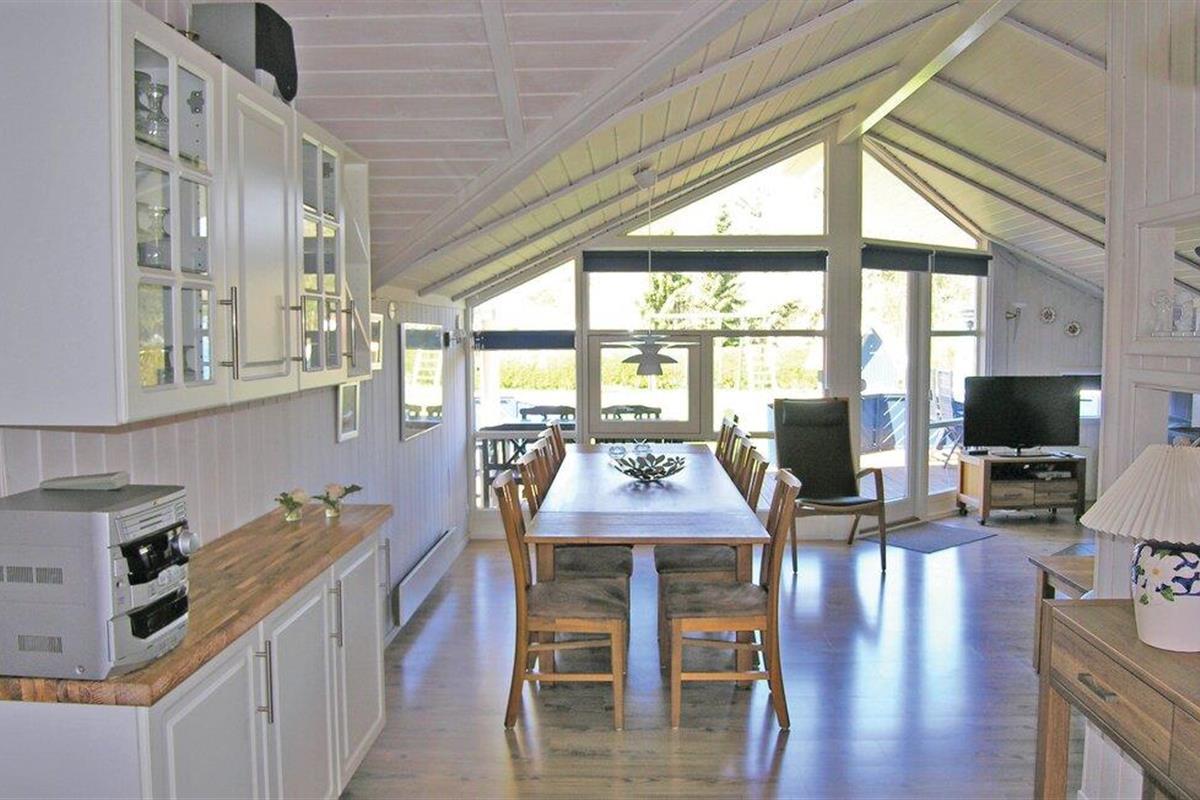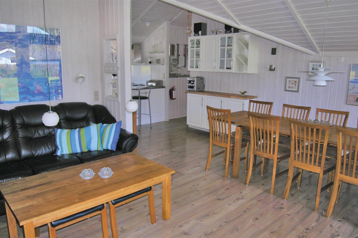 In Spodsbjerg, in de 2e rij huizen aan het strand, ligt dit mooie houten vakantiehuis. Het is van alle gemakken voorzien. Er zijn geen vaste tapijten, maar gepatineerde grenen/pergo vloeren en klinkervloeren in de badkamer. De badkamer heeft een 2-persoons whirlpool en een sauna. Twee van de in totaal 10 slaapplaatsen staan in een alkoof in verbinding met de gecombineerde woon- en eetkamer. Er kan uitstekend gevist worden in de omgeving en bij het huis is een geïsoleerde opslagruimte, een vriezer en een overdekte visafhaalplaats. Het is slechts een paar kilometer naar Rudkøbing (8 km) en een put en take meer (3 km). De haven van Spodsberg ligt op anderhalve kilometer afstand.