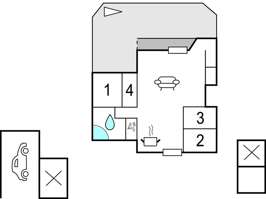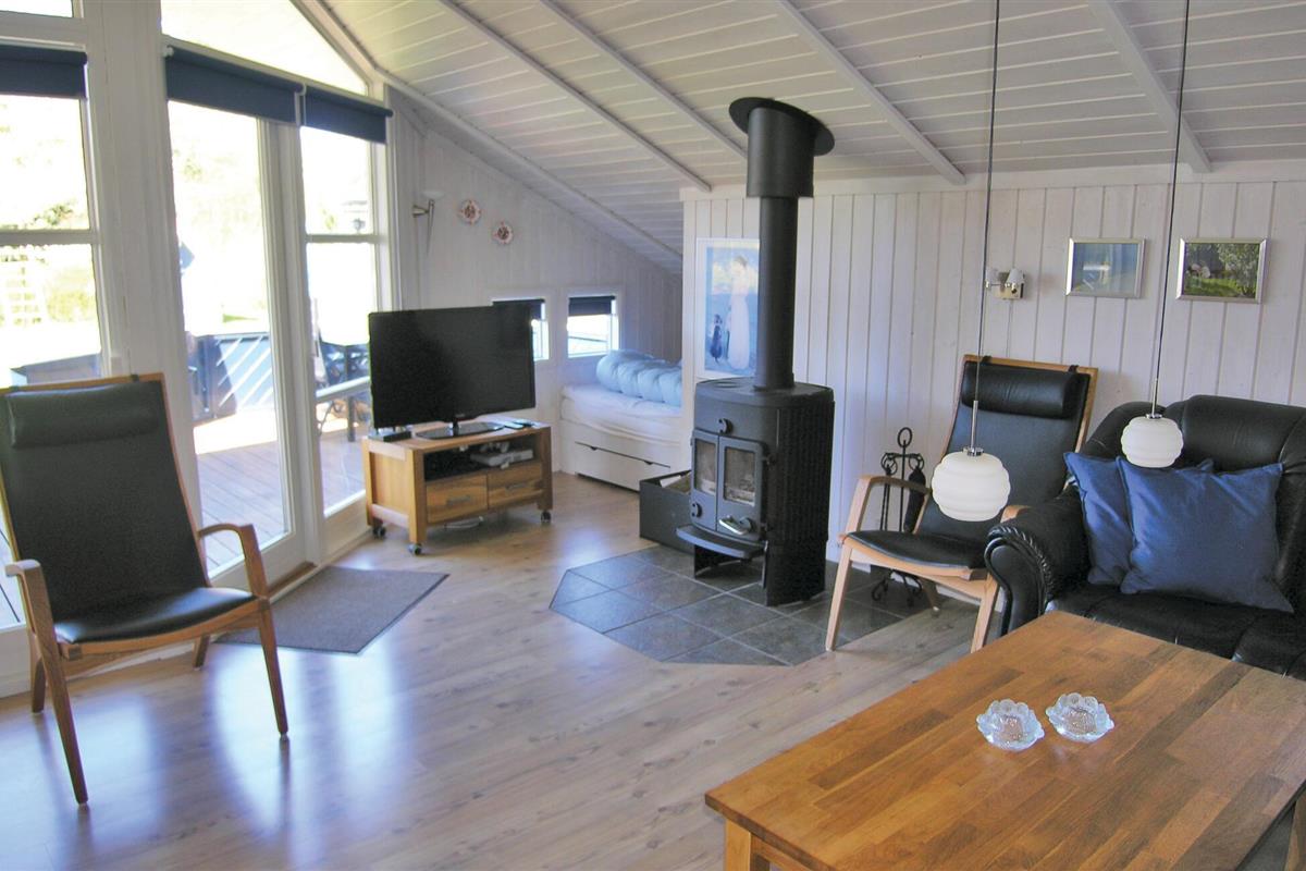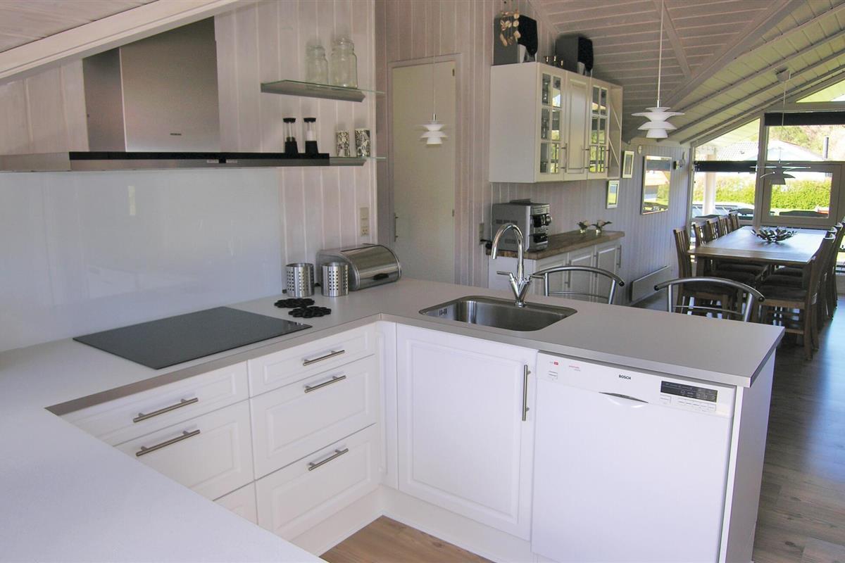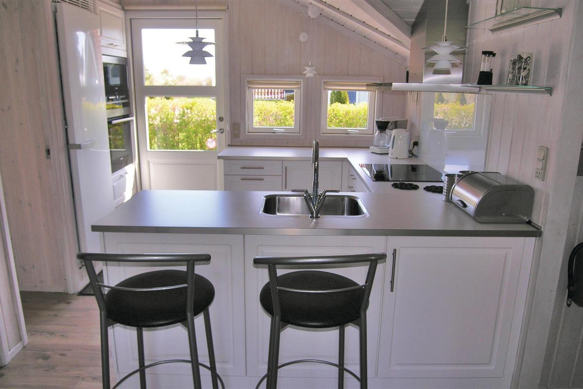 In Spodsbjerg, in de 2e rij huizen aan het strand, ligt dit mooie houten vakantiehuis. Het is van alle gemakken voorzien. Er zijn geen vaste tapijten, maar gepatineerde grenen/pergo vloeren en klinkervloeren in de badkamer. De badkamer heeft een 2-persoons whirlpool en een sauna. Twee van de in totaal 10 slaapplaatsen staan in een alkoof in verbinding met de gecombineerde woon- en eetkamer. Er kan uitstekend gevist worden in de omgeving en bij het huis is een geïsoleerde opslagruimte, een vriezer en een overdekte visafhaalplaats. Het is slechts een paar kilometer naar Rudkøbing (8 km) en een put en take meer (3 km). De haven van Spodsberg ligt op anderhalve kilometer afstand.