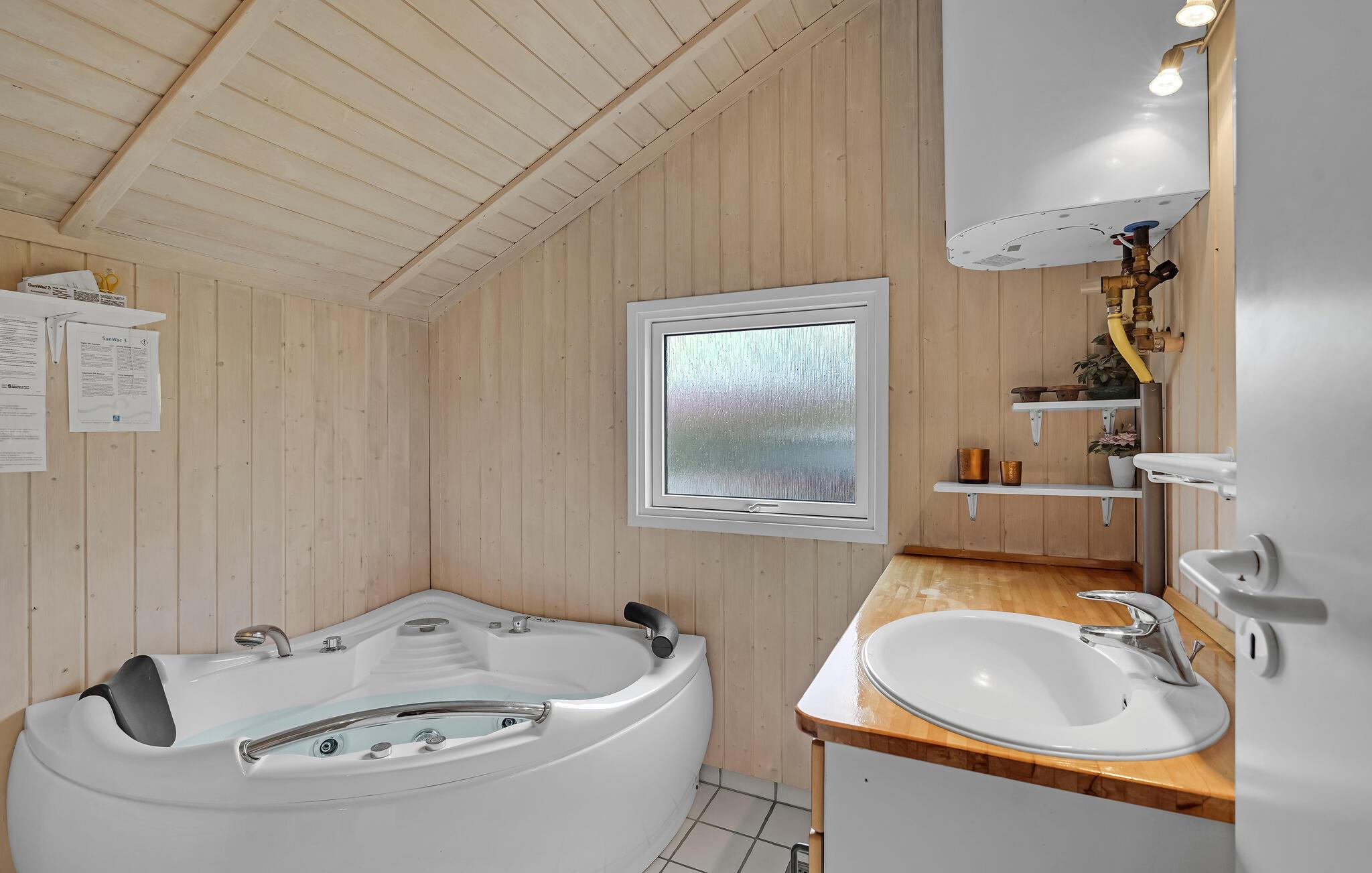 In het vakantiehuisgebied Spodsbjerg ligt dit mooie houten huis met veel apparatuur, zoals een whirlpool voor twee en een sauna.
