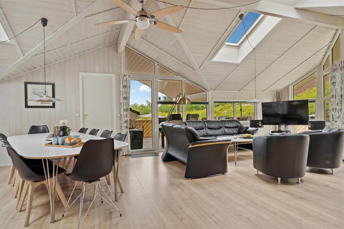 Geniet van een modern vakantiehuis in Spodsbjerg met zwembad, sauna en prachtig zeezicht.