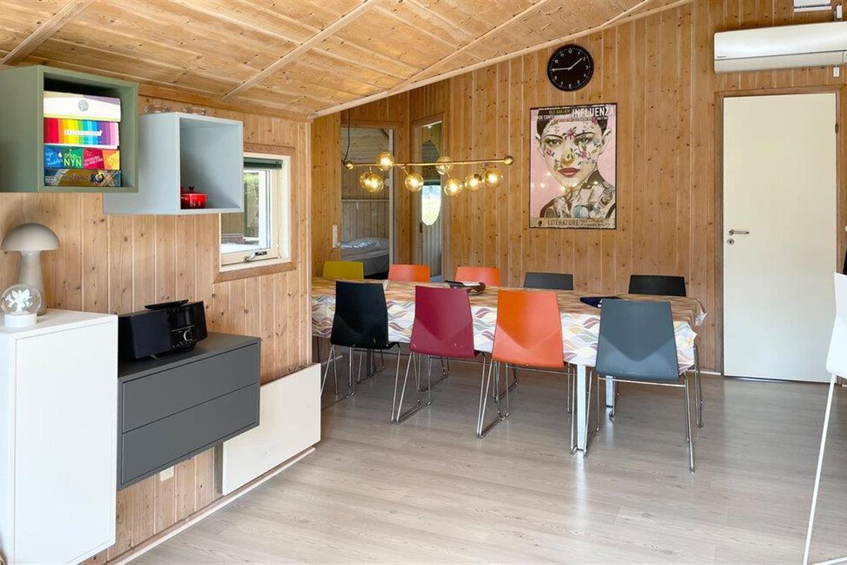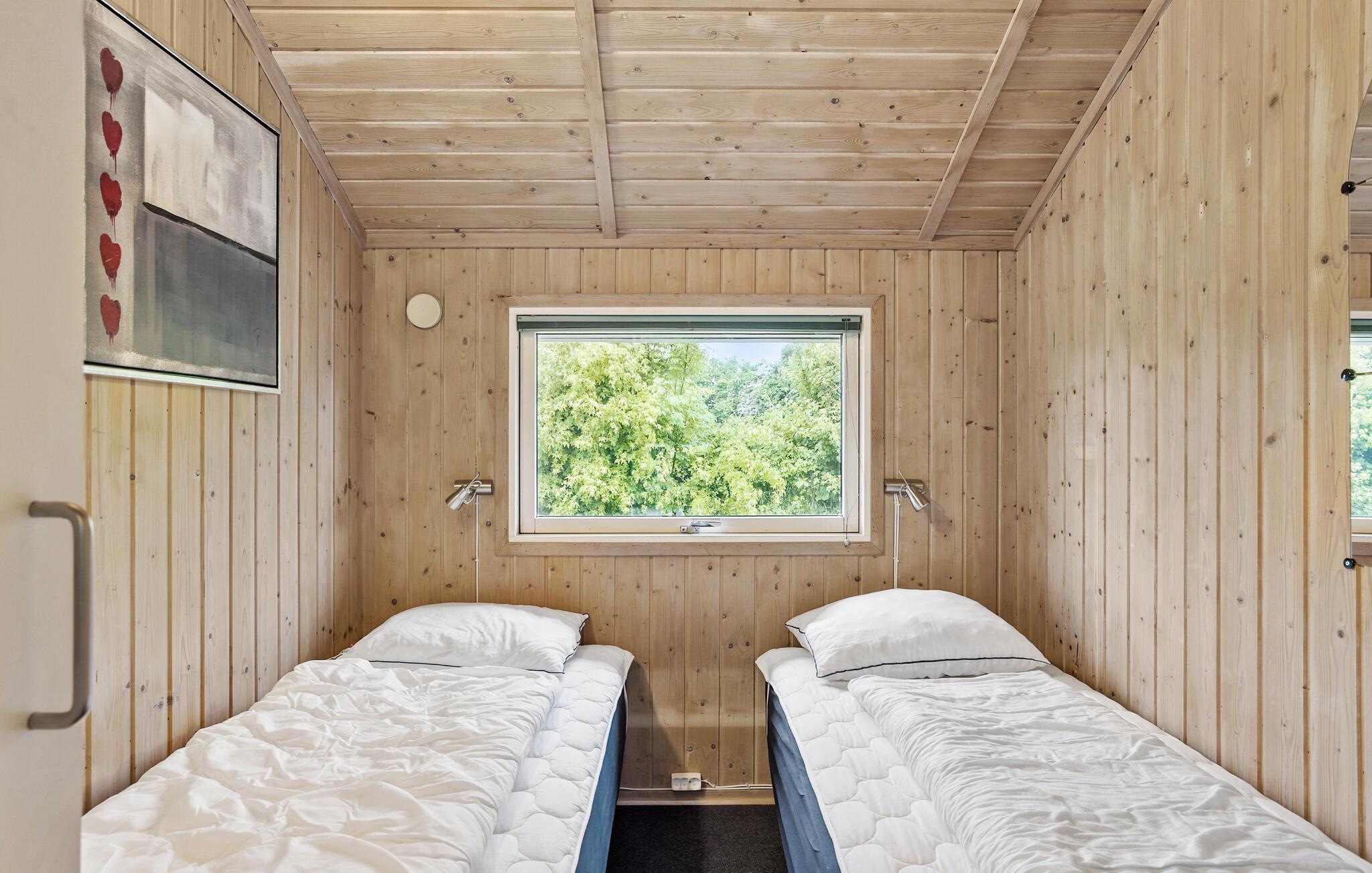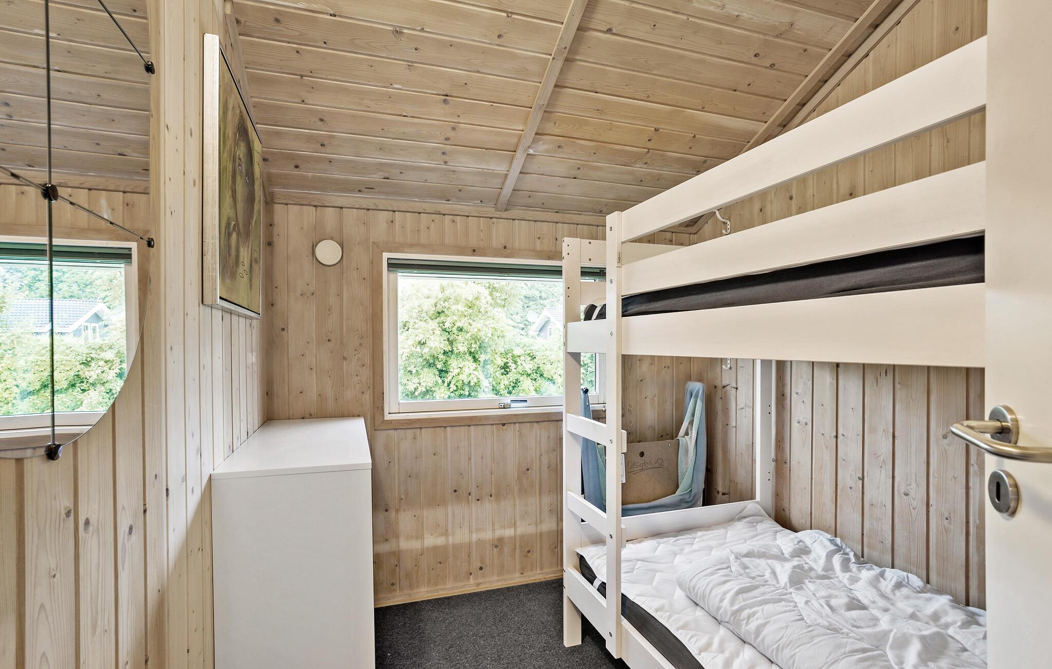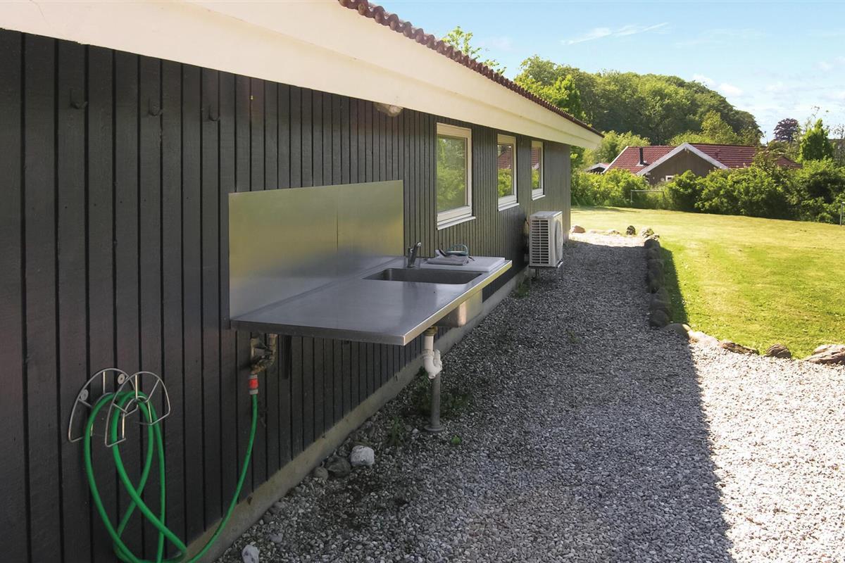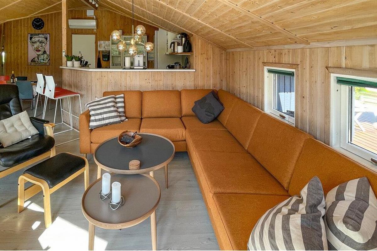 Comfortabel houten vakantiehuis met whirlpool, houtkachel en speelplaats nabij zee en natuur in Spodsbjerg.