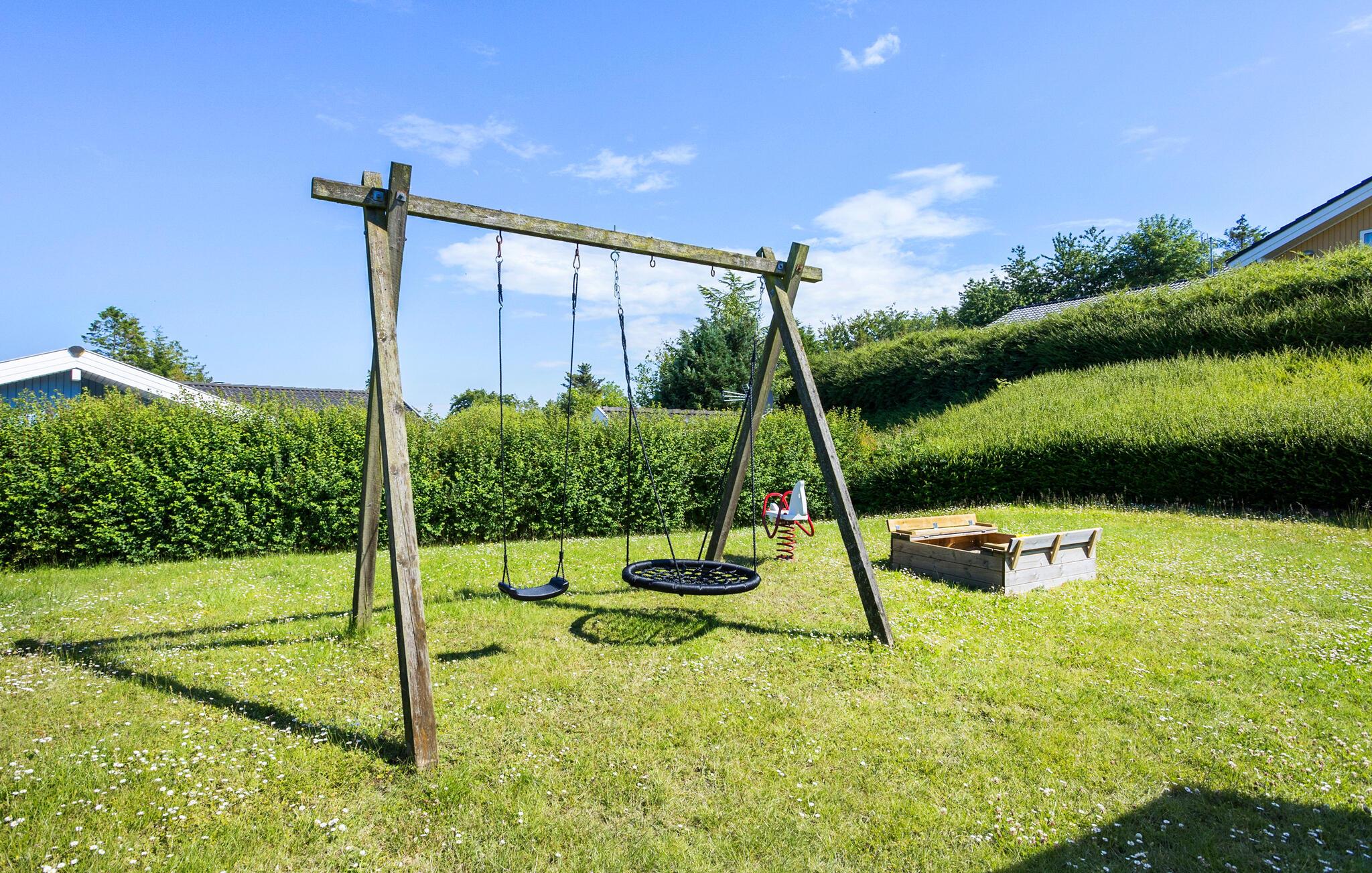 Stap uit op het grote terras en geniet van zonnige uren buiten. Organiseer gezellige barbecue-avonden of ontspan op de ligstoelen of in de loungehoek met een goed boek. Terwijl de volwassenen 's avonds tot rust komen, kunnen de kinderen spelen op de schommels of in de zandbak.