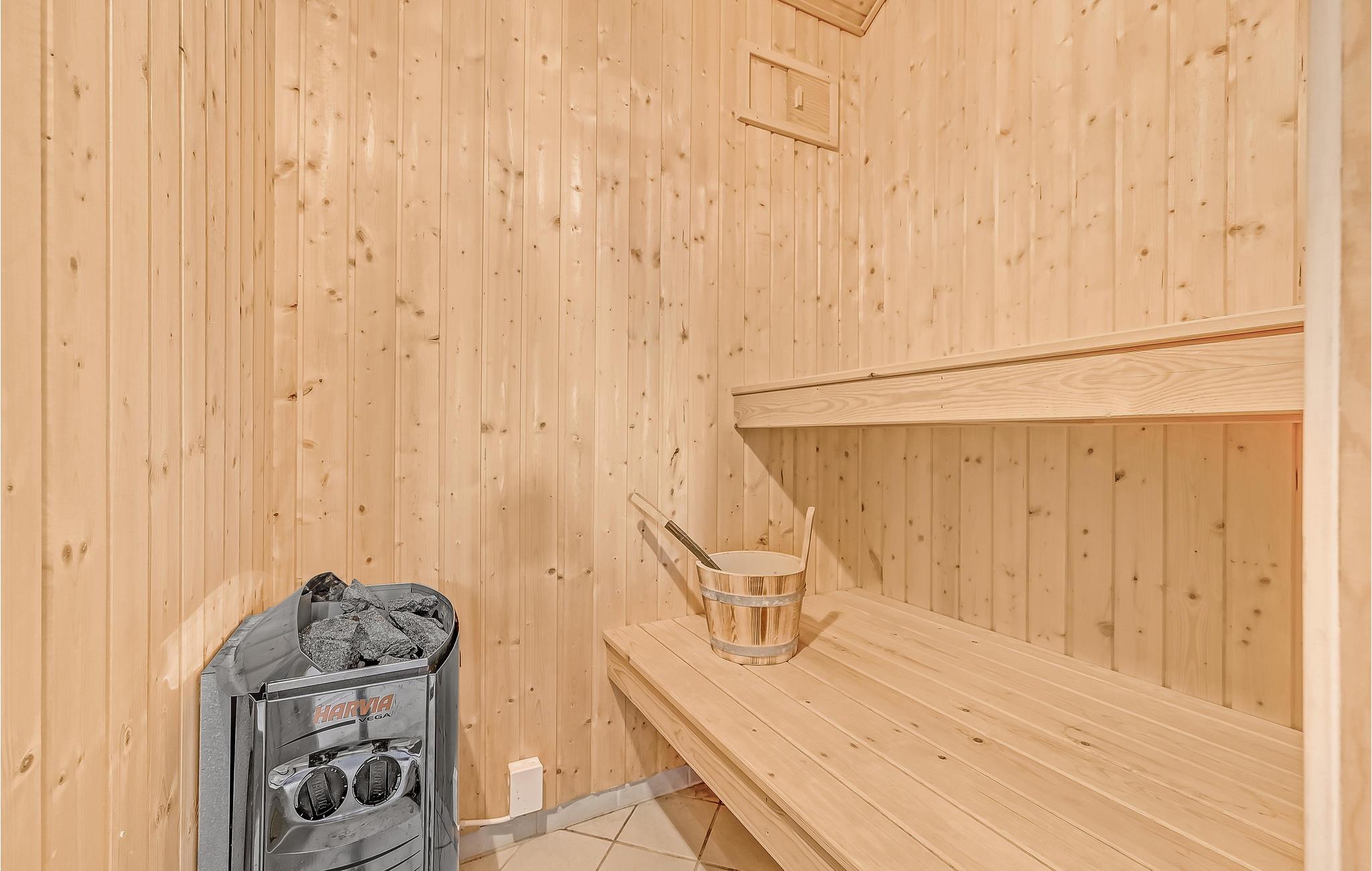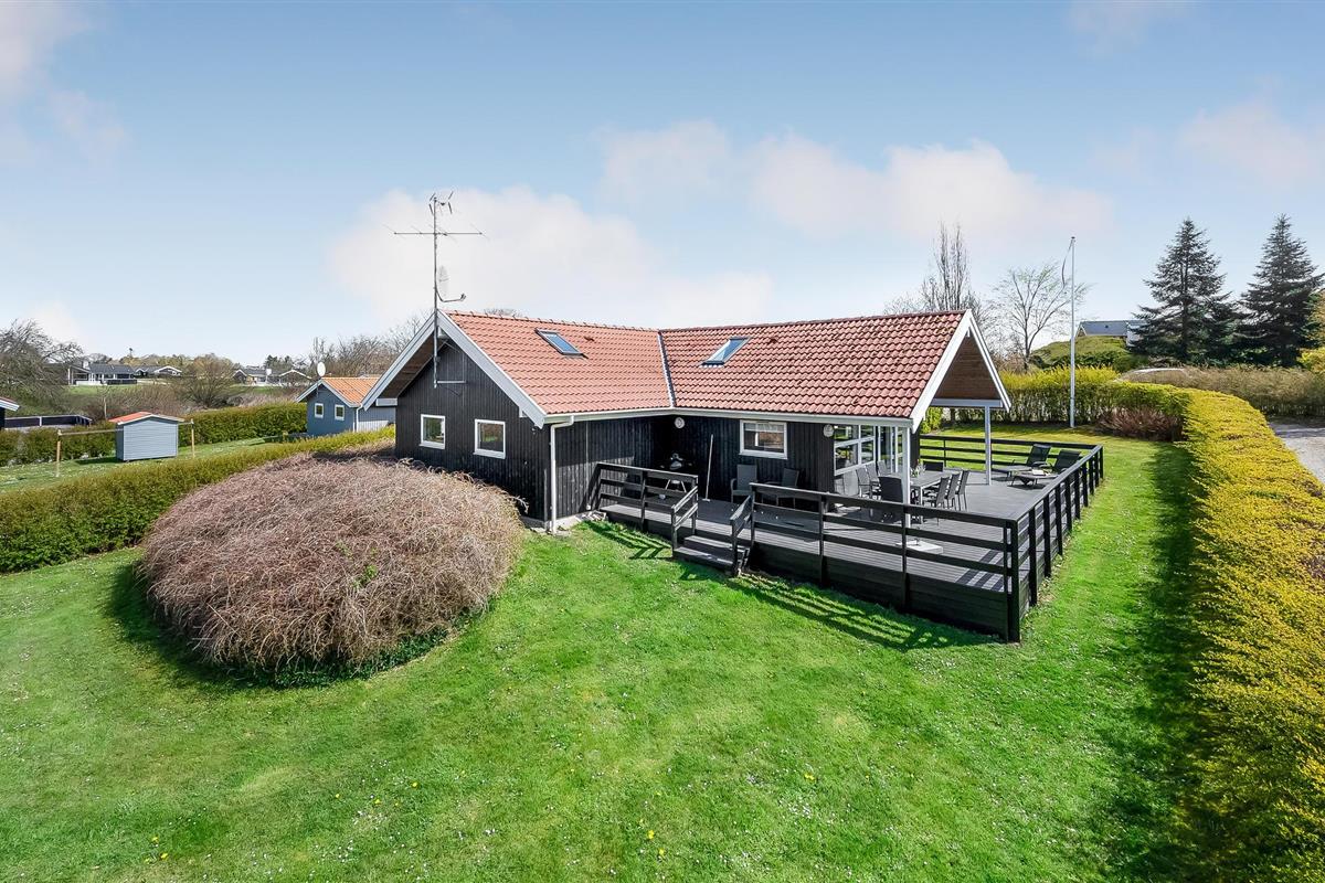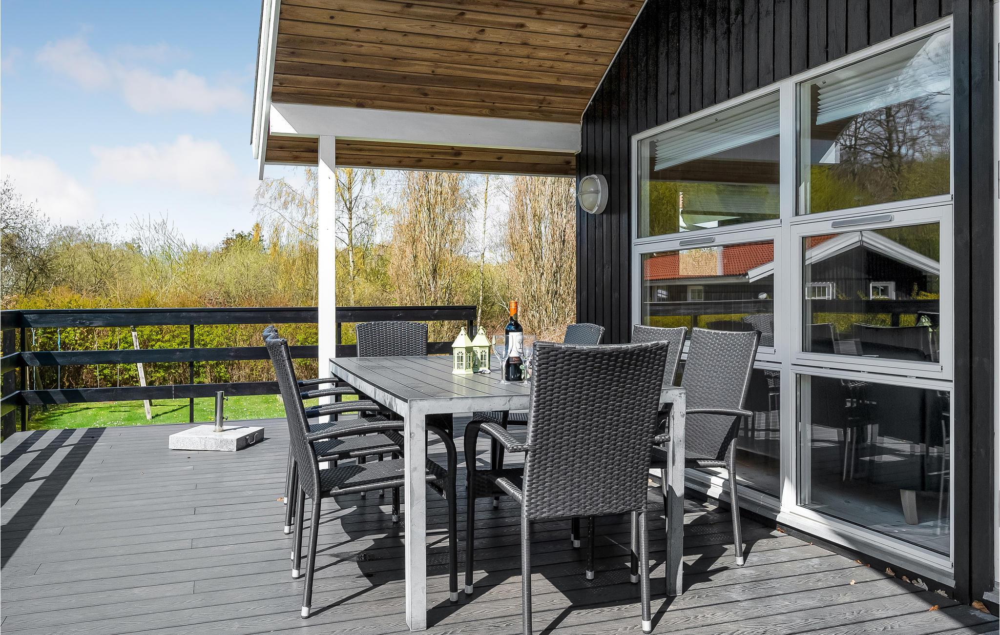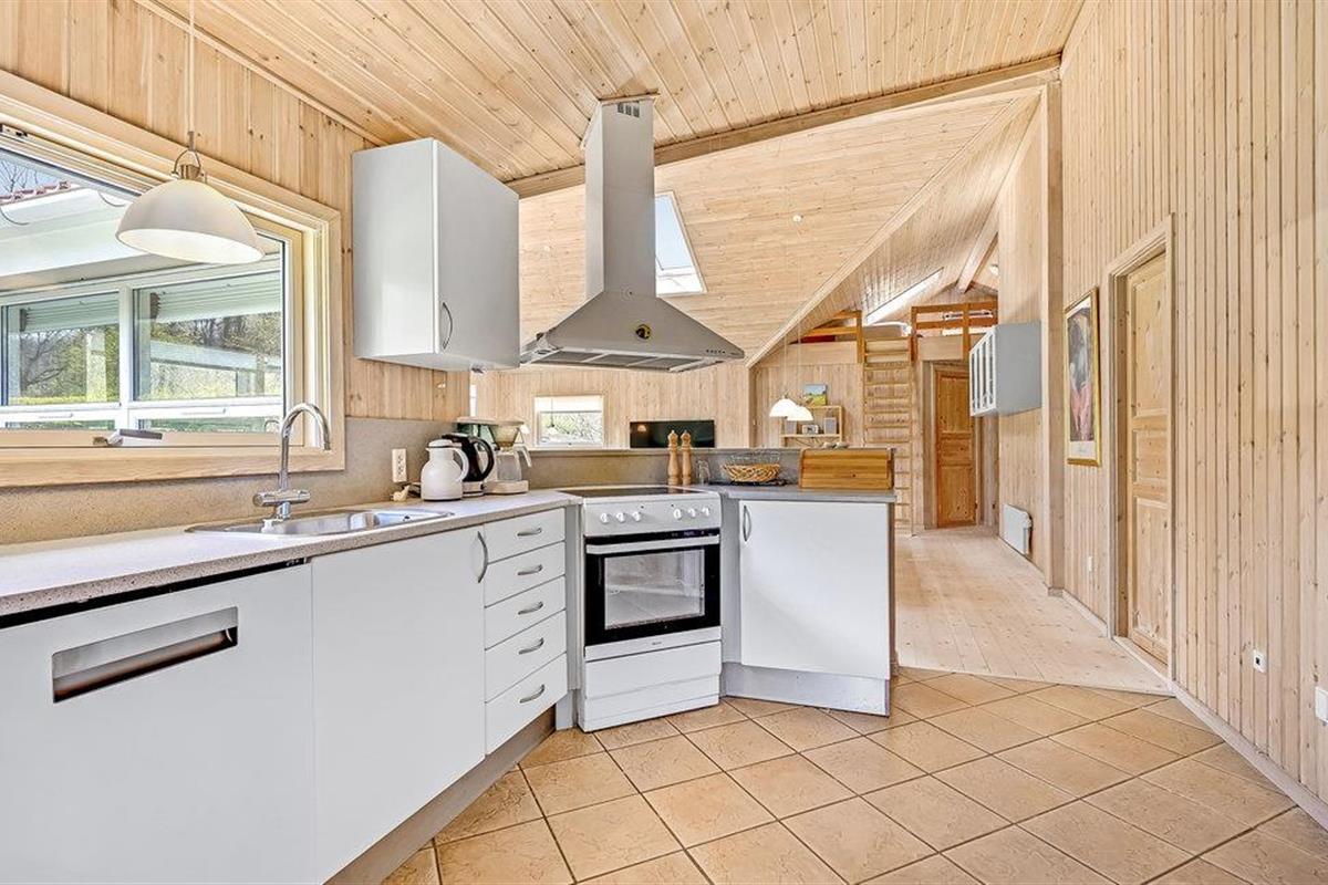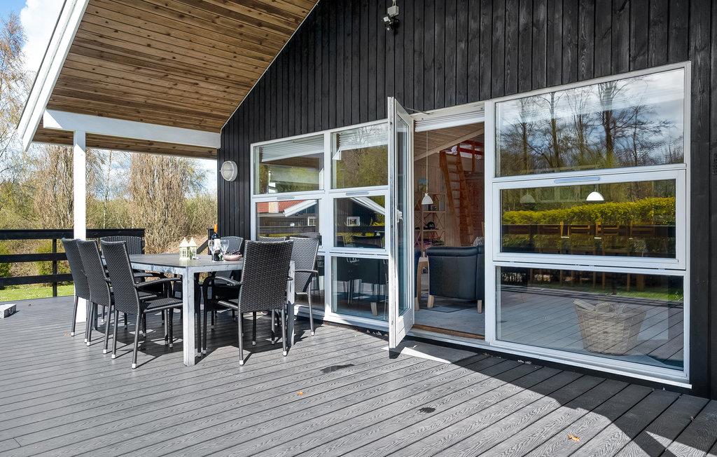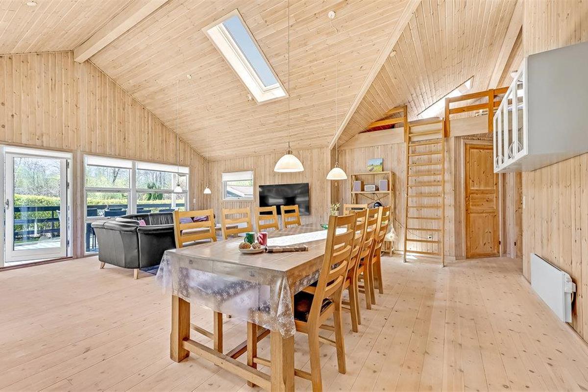 Dit prachtige houten huis met sauna is van alle moderne gemakken voorzien. Houten binnenmuren geven het huis een rustieke uitstraling. Er zijn betegelde vloeren in de keuken en badkamers, de rest van het huis heeft houten vloeren. De grootste van de twee badkamers bevat de sauna voor 6 personen en de jacuzzi voor 2 pers. 2 slaapplaatsen zijn op de slaapzolder in de woonkamer. Goede vismogelijkheden. Put en take meer in de buurt. De woning heeft een open haard. Spodsbjerg Havn veerboot, vissen en jachthaven ligt op slechts 1,8 km afstand. Rudkøbing, de hoofdstad van Langeland ligt op slechts 8,5 km van het huis. In Rudkøbing ervaart u een mooie mix van oude charme en het moderne zakenleven. Veel winkels zijn gevestigd in huizen met mooie gevels.
