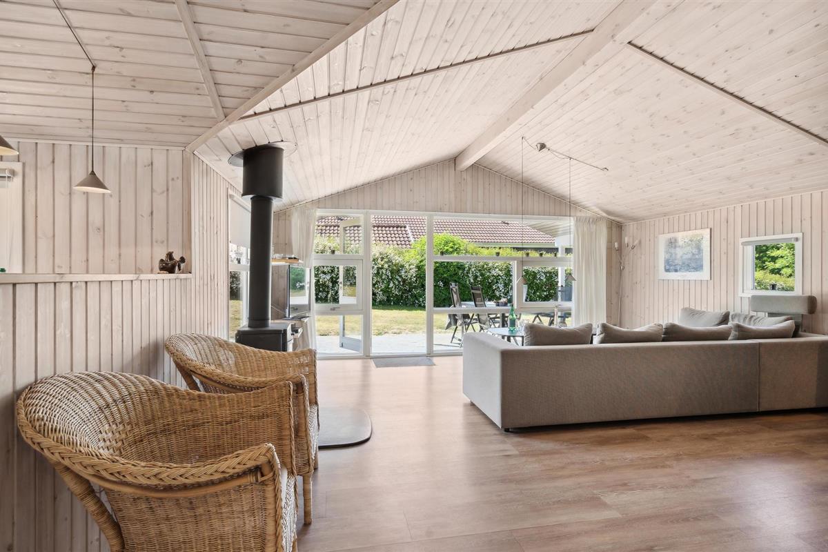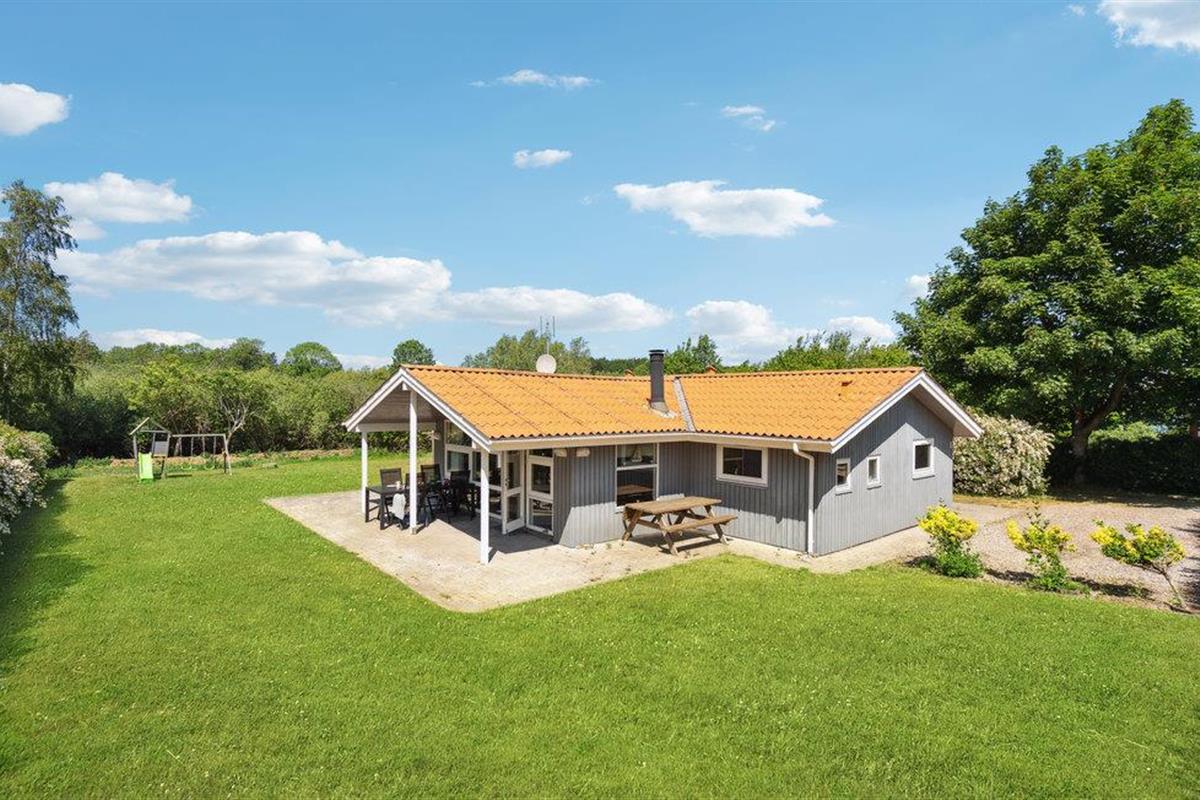 Comfortabel houten vakantiehuis met sauna, vlakbij zee en visstekken in het pittoreske Spodsbjerg.