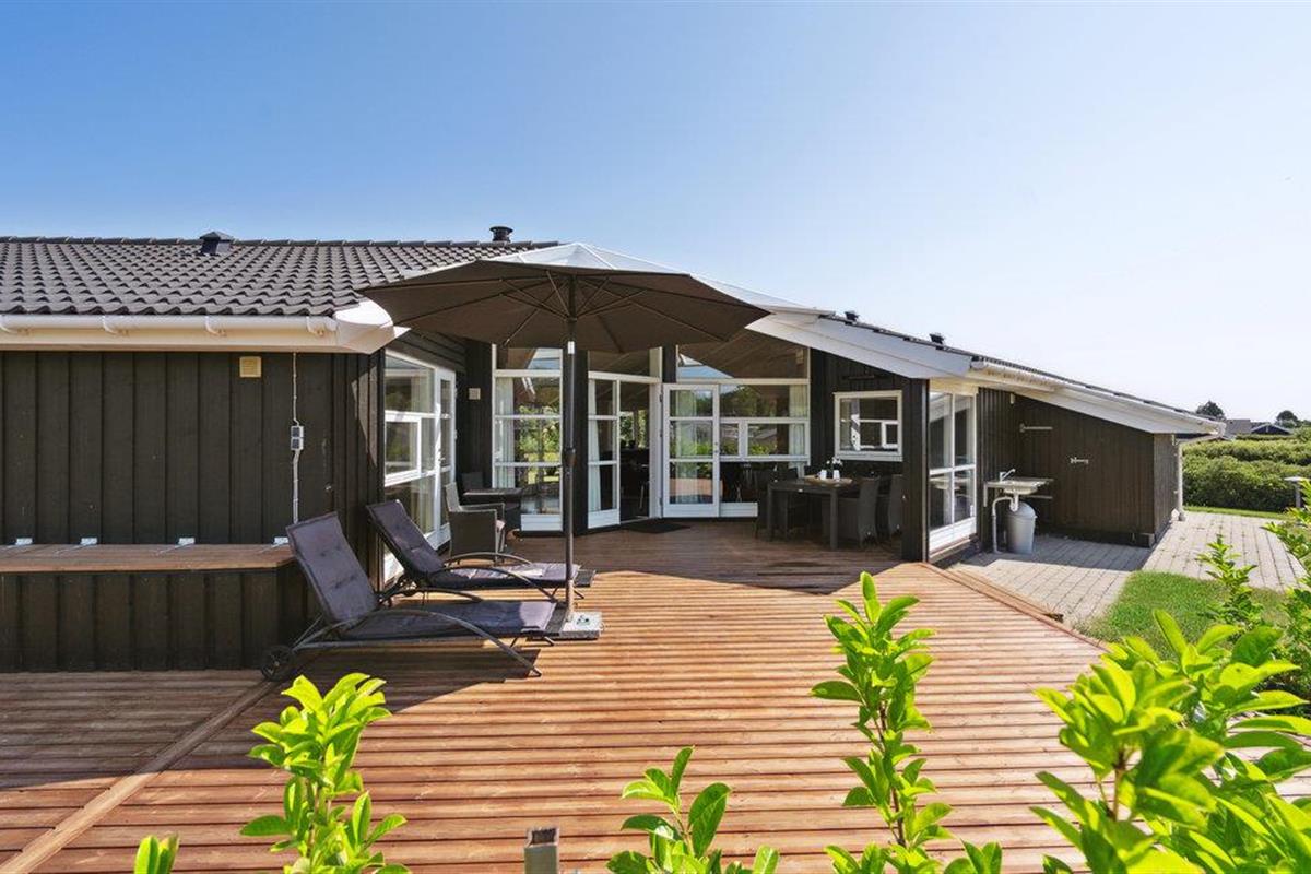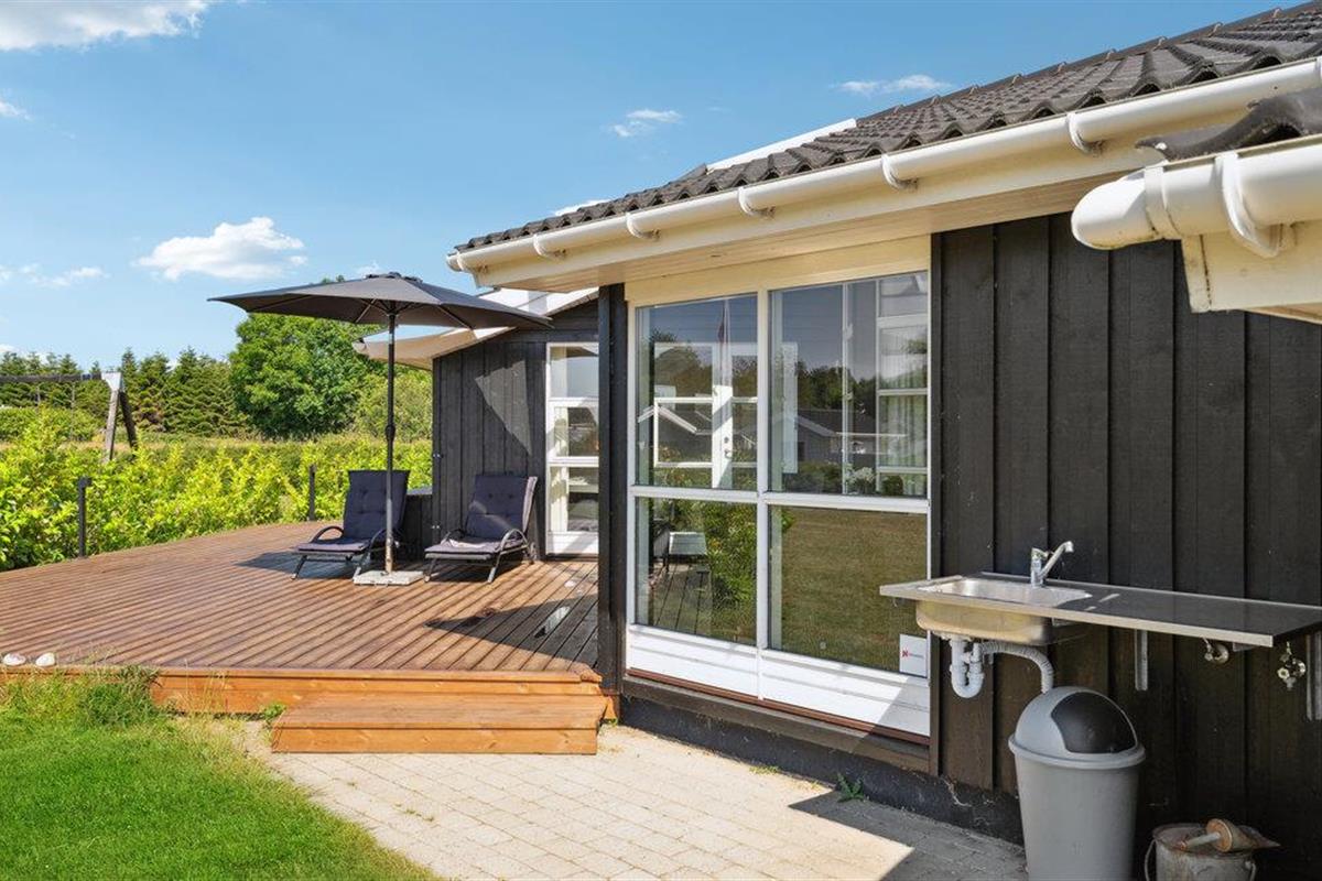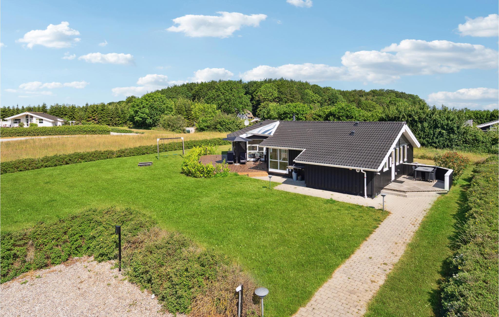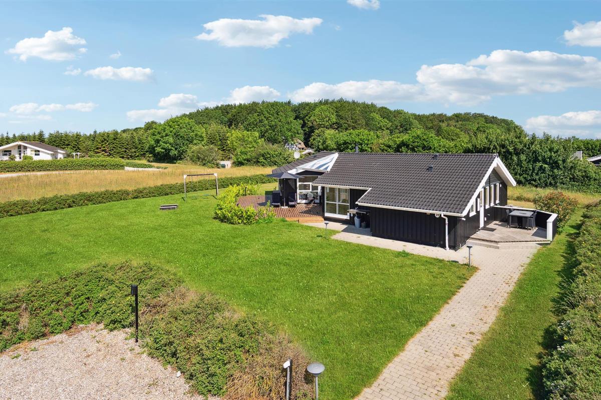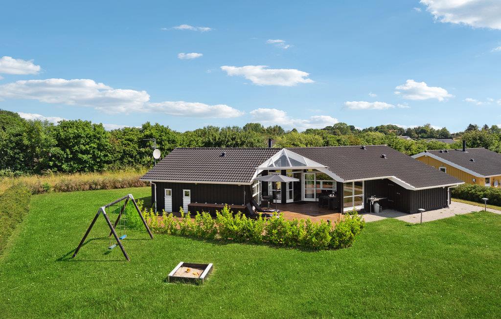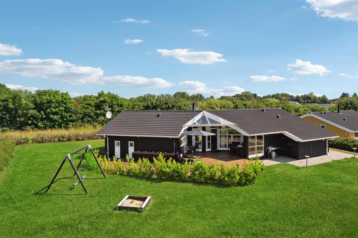 Comfortabel houten vakantiehuis in Spodsbjerg met sauna, whirlpool en activiteitenruimte vlakbij zee en natuur.