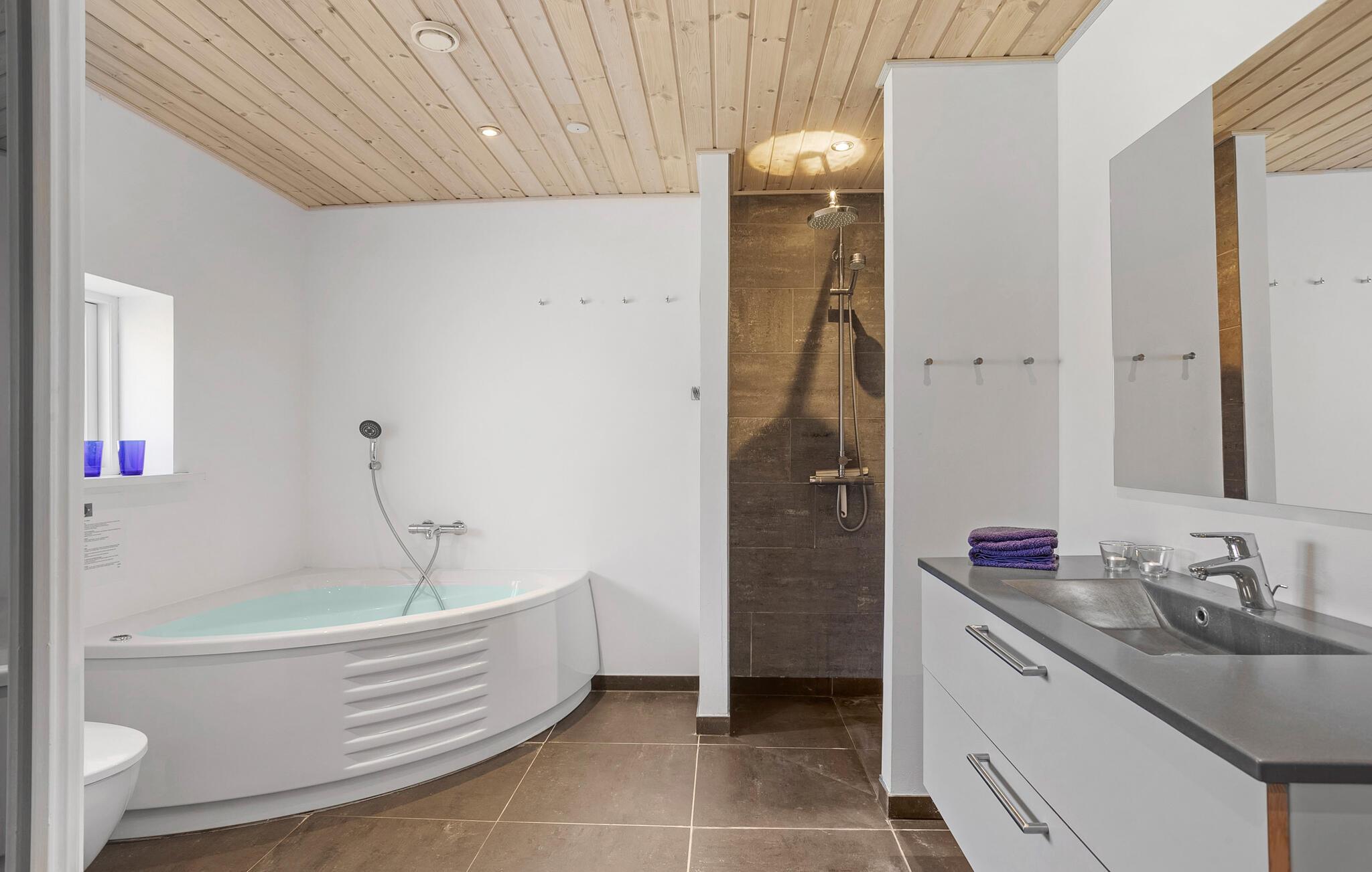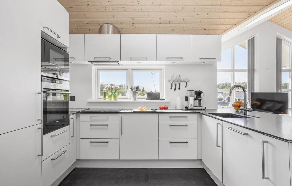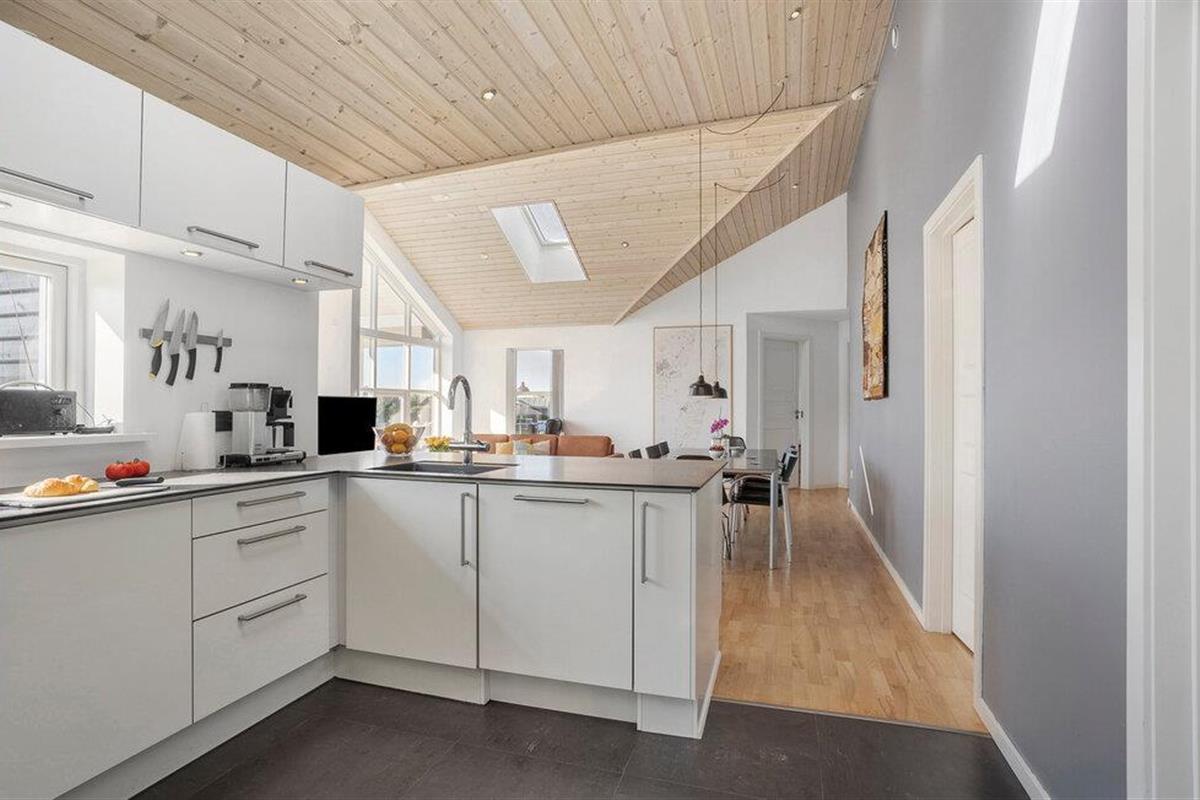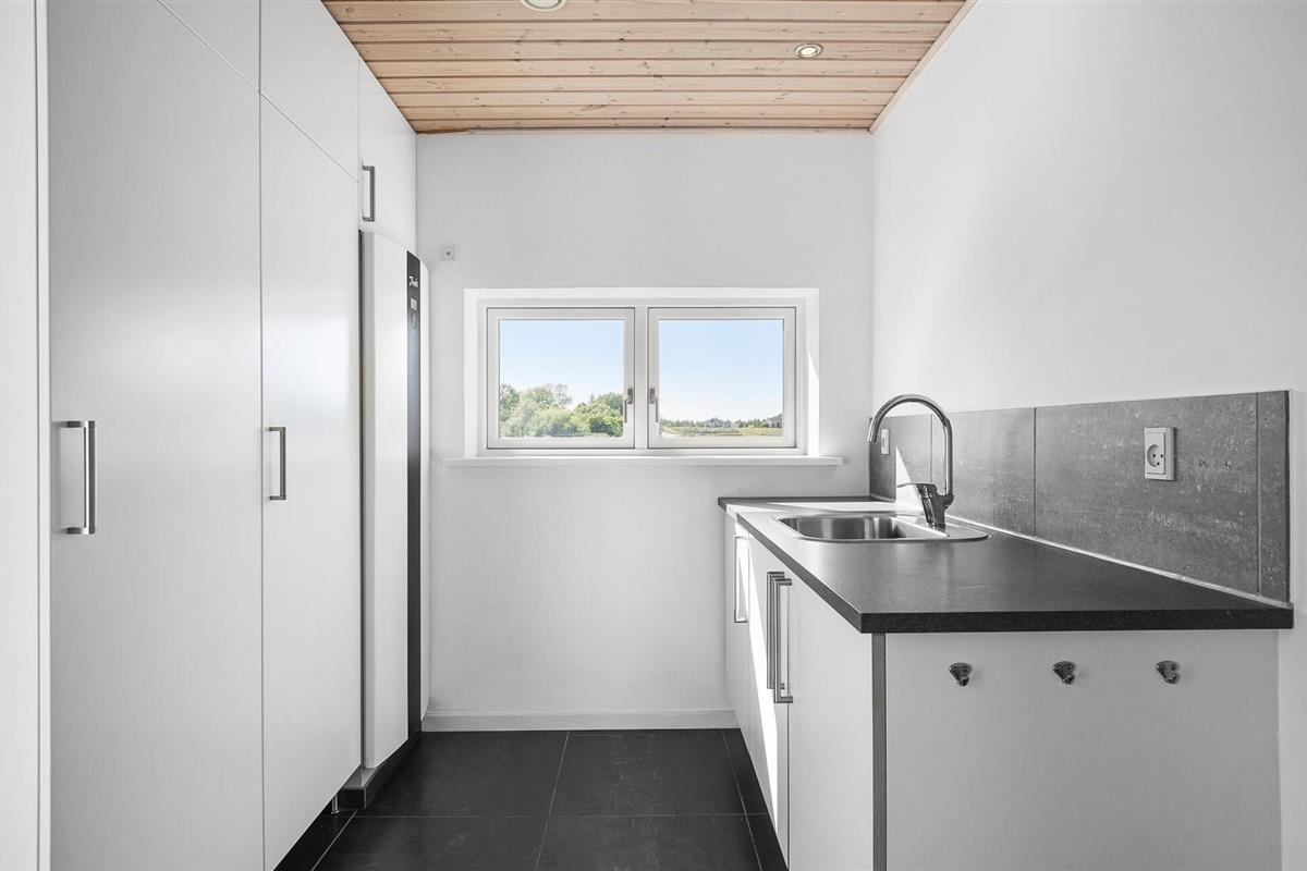 Mooi vakantiehuis op de top van een heuvel, met uitzicht op de nieuwere vakantiehuizen in Spodsbjerg. Het lichte huis is ingericht met moderne meubels, het is goed uitgerust. De grote badkamer met massagebad en sauna is zeker een genot voor het hele gezin. Er zijn goede toegangsvoorwaarden voor auto's met boottrailers. Een vriezer van 150 liter voor vis staat tot uw beschikking.