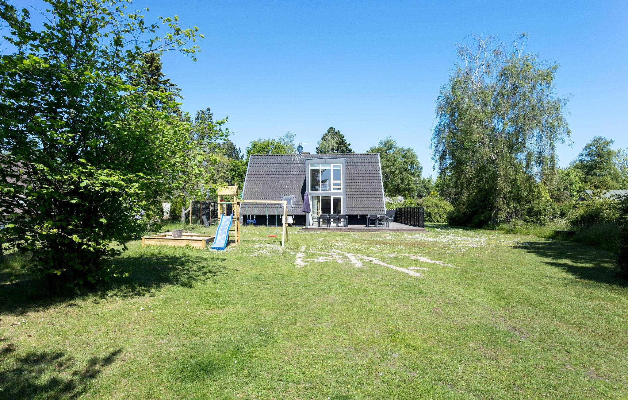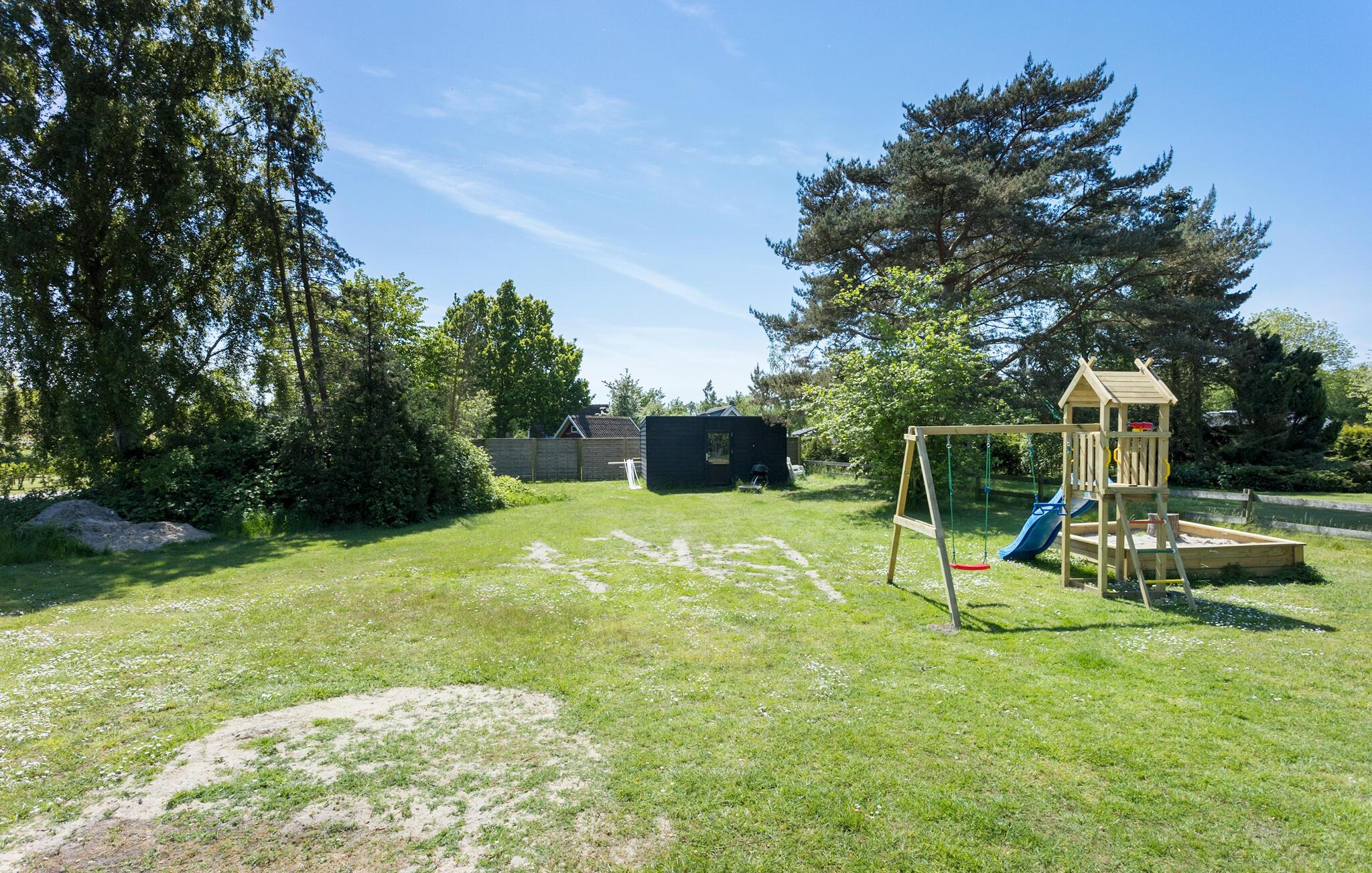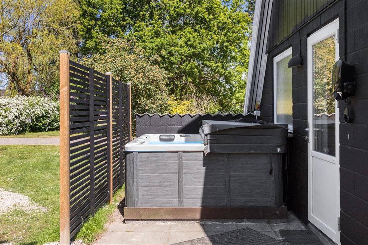 De buitenruimte belooft ontspanning en vele uren plezier. Je kunt genieten van de rust op het terras en je kinderen zien spelen. En je kunt naar hartenlust ontspannen in de whirlpool in de buitenlucht. Profiteer van de korte afstand tot de zee om op je gemak te zwemmen of lange wandelingen langs de kust te maken. Vanuit je vakantieoord Spodsbjerg kun je de veerboot nemen naar het naburige eiland Lolland.