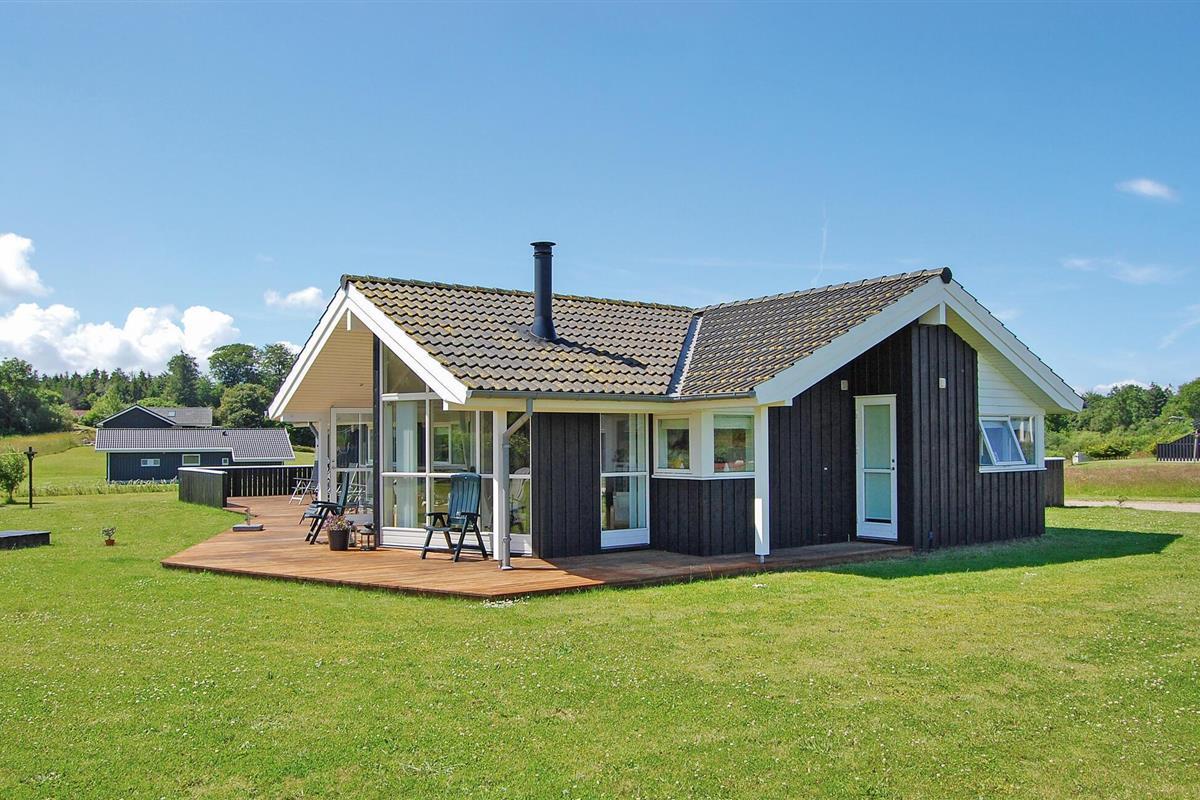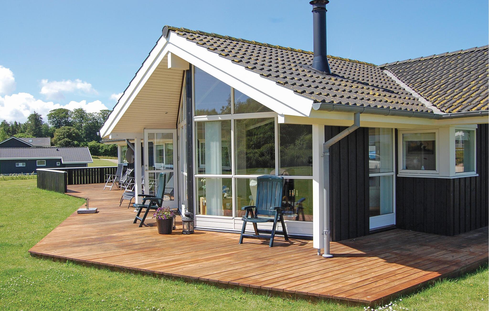 Gezellig houten vakantiehuis dichtbij het kindvriendelijke strand van Spodsbjerg met whirlpool en sauna.
