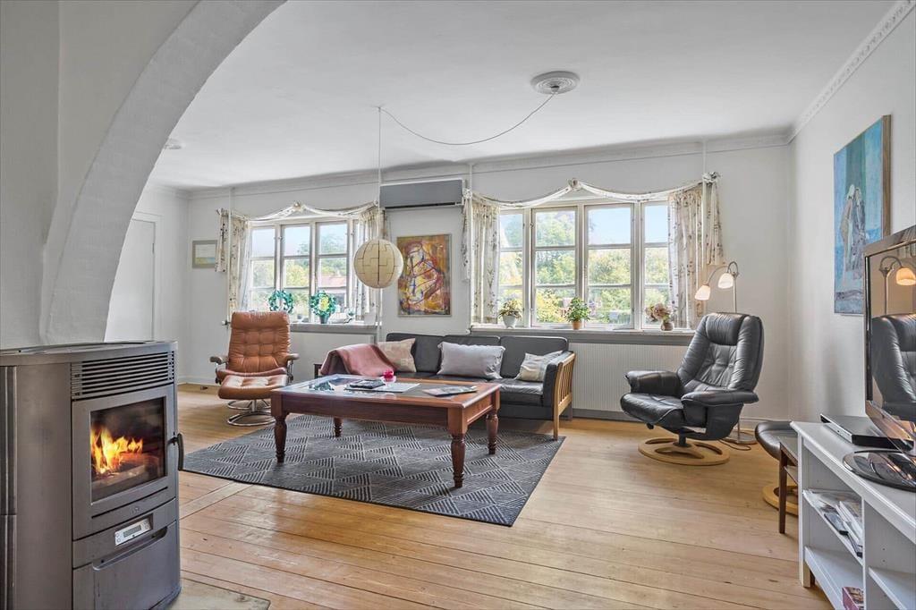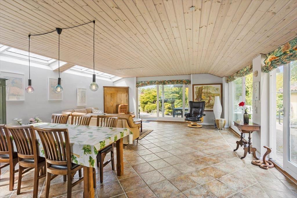 Wenn du dieses Ferienhaus betrittst, wirst du dich sofort willkommen und wie zu Hause fühlen. Die hellen Räume sind mit einer Mischung aus komfortablen Möbeln und gemütlichen Details eingerichtet, die dir und deiner Familie oder Freunden die besten Voraussetzungen für einen entspannten Urlaub bieten. Das Wohnzimmer ist der natürliche Treffpunkt mit seinem Kaminofen, der an kühlen Abenden für Wärme und Gemütlichkeit sorgt. Im angrenzenden Essbereich könnt ihr euch zu den Mahlzeiten versammeln, die leicht in der funktionalen Küche zubereitet werden können. Das Ferienhaus bietet drei Schlafzimmer, die alle mit bequemen Betten ausgestattet sind – hier gibt es Platz für sechs Personen, sodass sowohl Familie als auch Freunde mitkommen können. Wenn der Tag zu Ende geht, könnt ihr euch mit einem guten Film im Wohnzimmer entspannen oder eine ruhige Zeit mit einem Buch vor dem Kaminofen genießen.