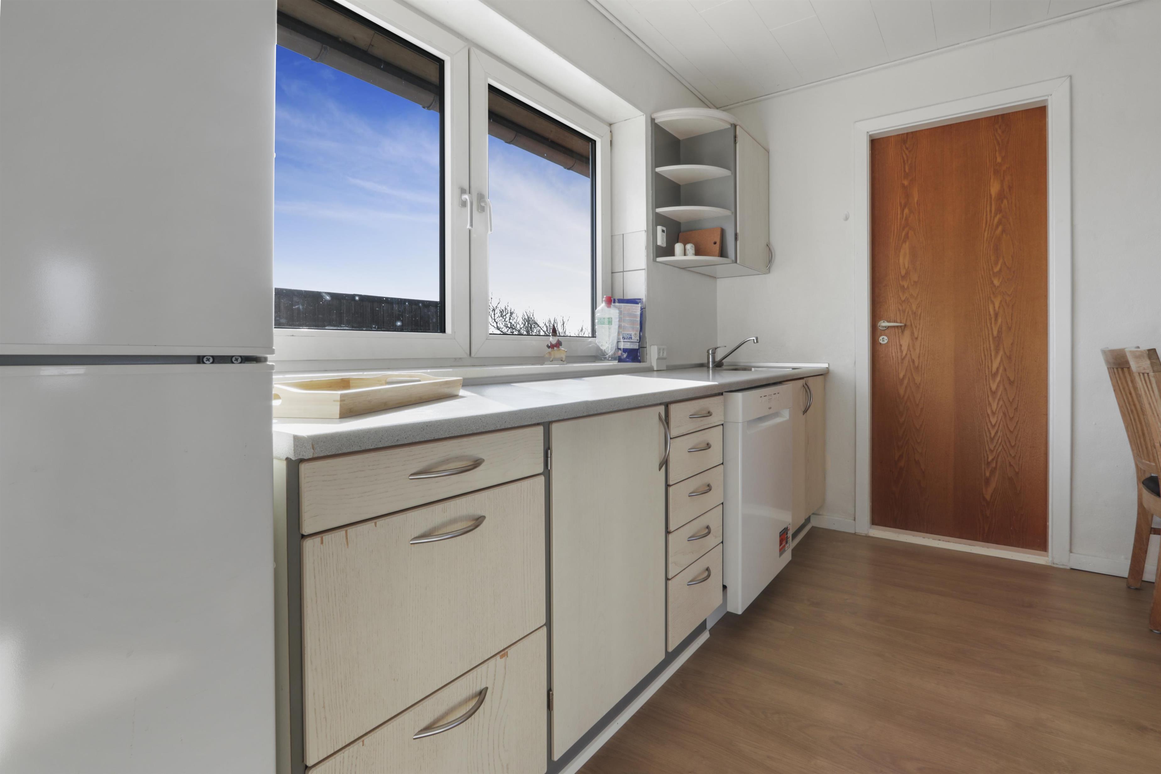 Von dem gemeinsamen Flur aus gibt es einen Zugang zu einer schönen Gemeinschaftsterrasse mit Gartenmöbeln und Grill sowie zu einem kleinen See. Ideal für einen kurzen Spaziergang und gleichzeitig mit einer schönen Aussicht von der Küche der Wohnung. Die Nordsee ist von der Wohnung aus leicht erreichbar. Während des Urlaubs lohnt sich ein Besuch in der Fischerstadt Thyborøn oder in der Handelsstadt Lemvig, wo es eine gute Auswahl an Einkaufsmöglichkeiten, Restaurants und Sehenswürdigkeiten gibt.