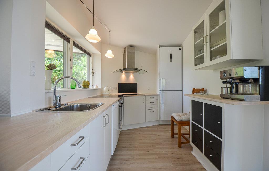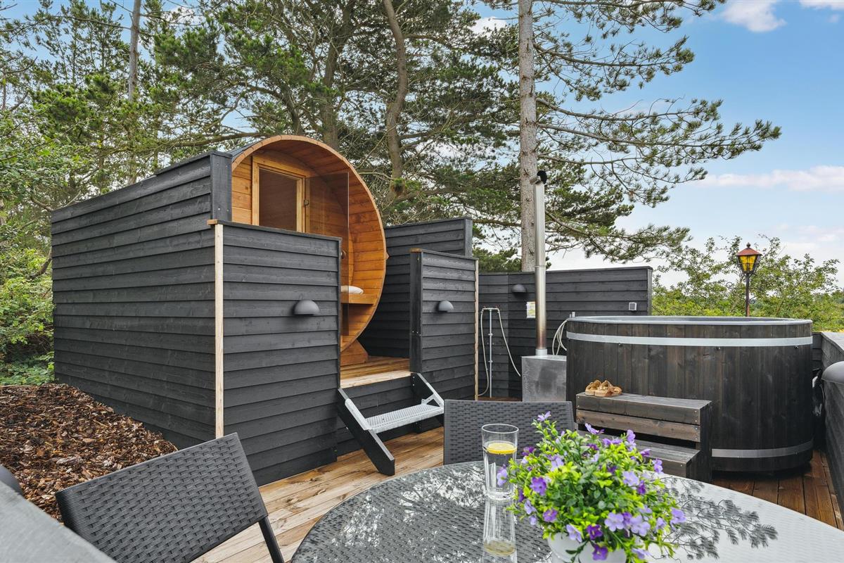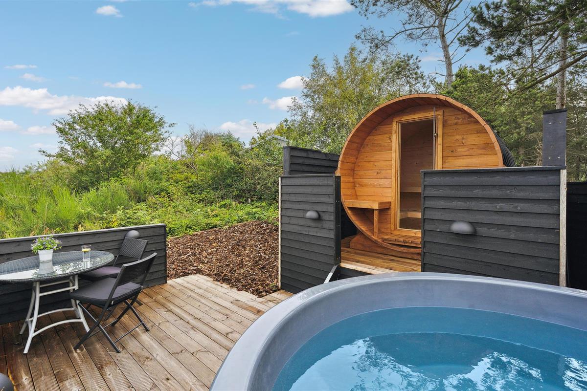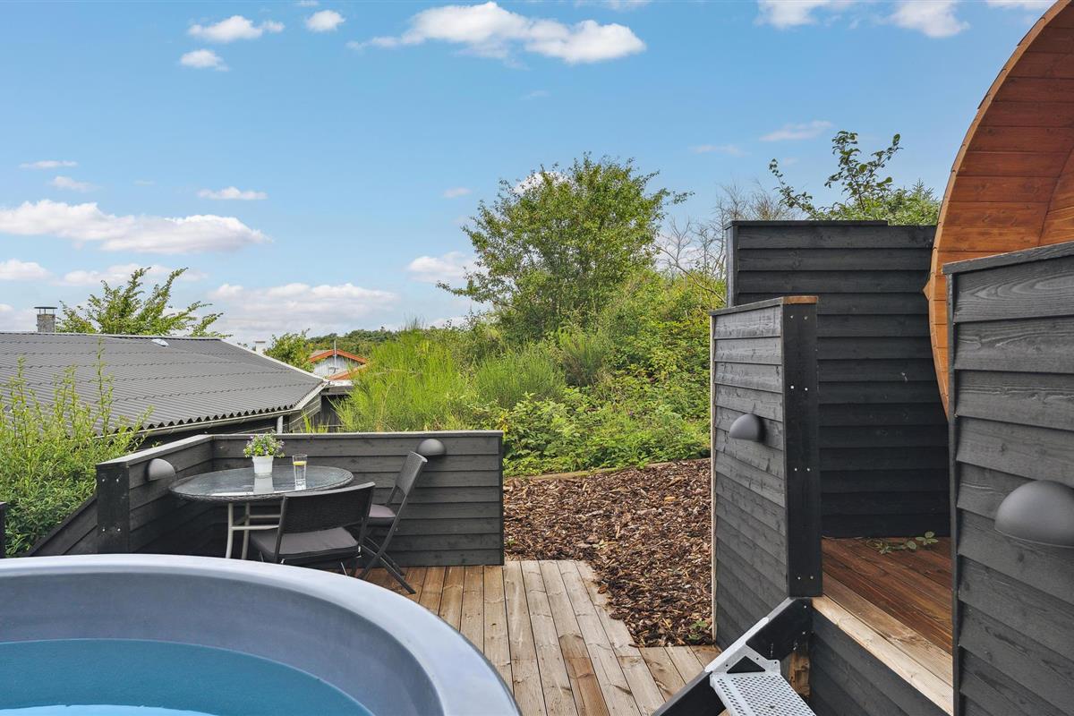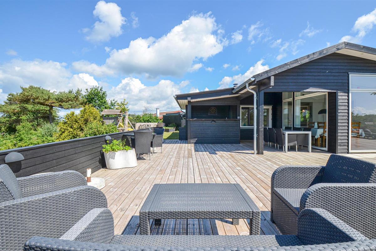 Buiten kunt u volop genieten van uw vakantie op het mooie tuinmeubilair en de ligstoelen op het grote houten terras, dat afgeschermd is en bijna rondom het huis loopt. Bereid heerlijke maaltijden op de barbecue of in de buitenkeuken terwijl de kinderen op het gazon spelen. Neem uw vishengels mee, want vanaf de kust bij de vuurtoren van Sletterhage kunt u hier echt goed vissen. De dichtstbijzijnde winkelmogelijkheden zijn niet ver weg. Het charmante Ebeltoft, met zijn gezellige, smalle geplaveide straatjes en steegjes en goede bezienswaardigheden, ligt op een half uur rijden van het huis.