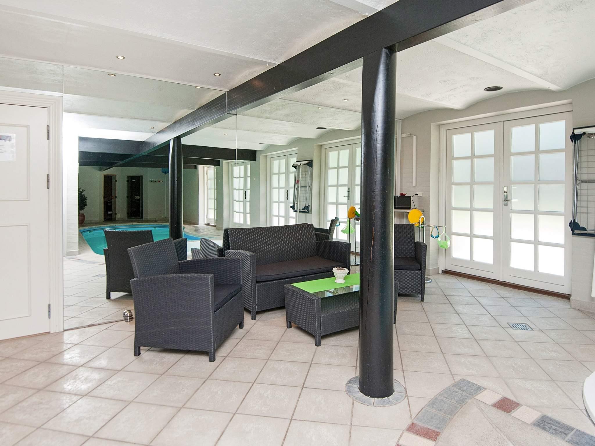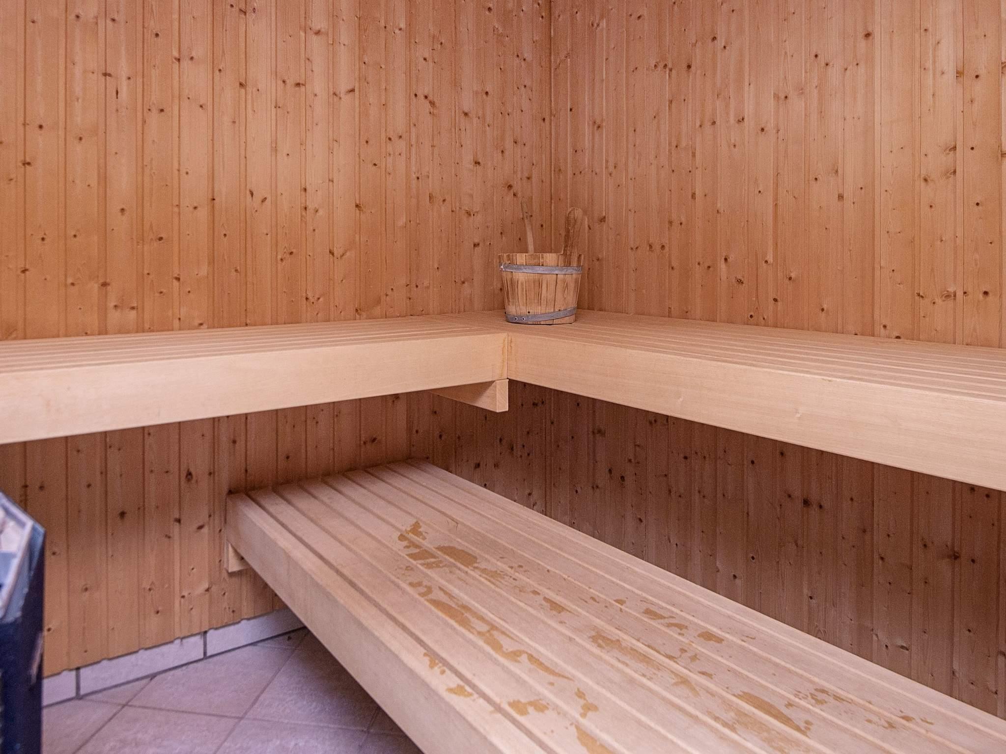 Poolraum mit Bar, Fernseher, Sauna, Dampfbad und einem