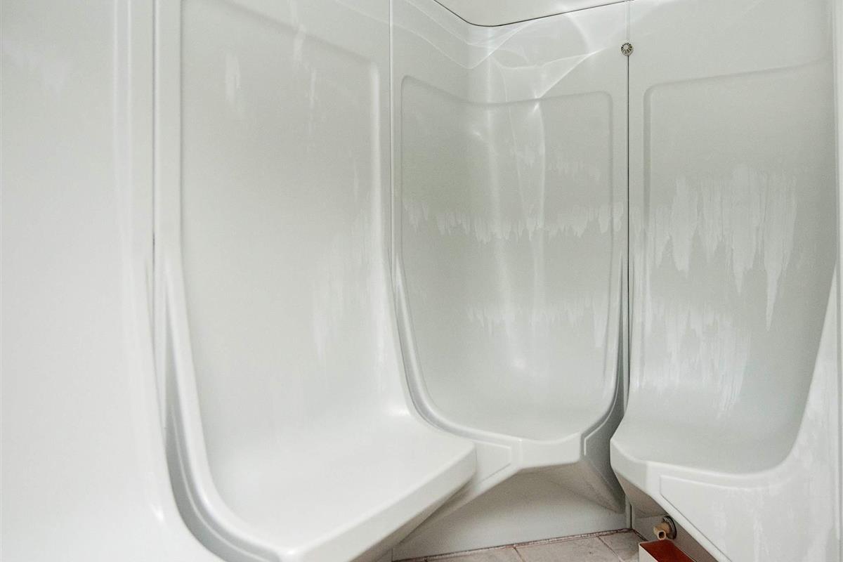 Bad: WC, Waschb., Wanne, Dusche, Dampfkabine, Fußbodenheiz.