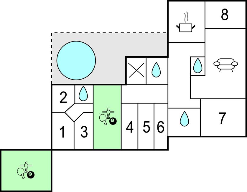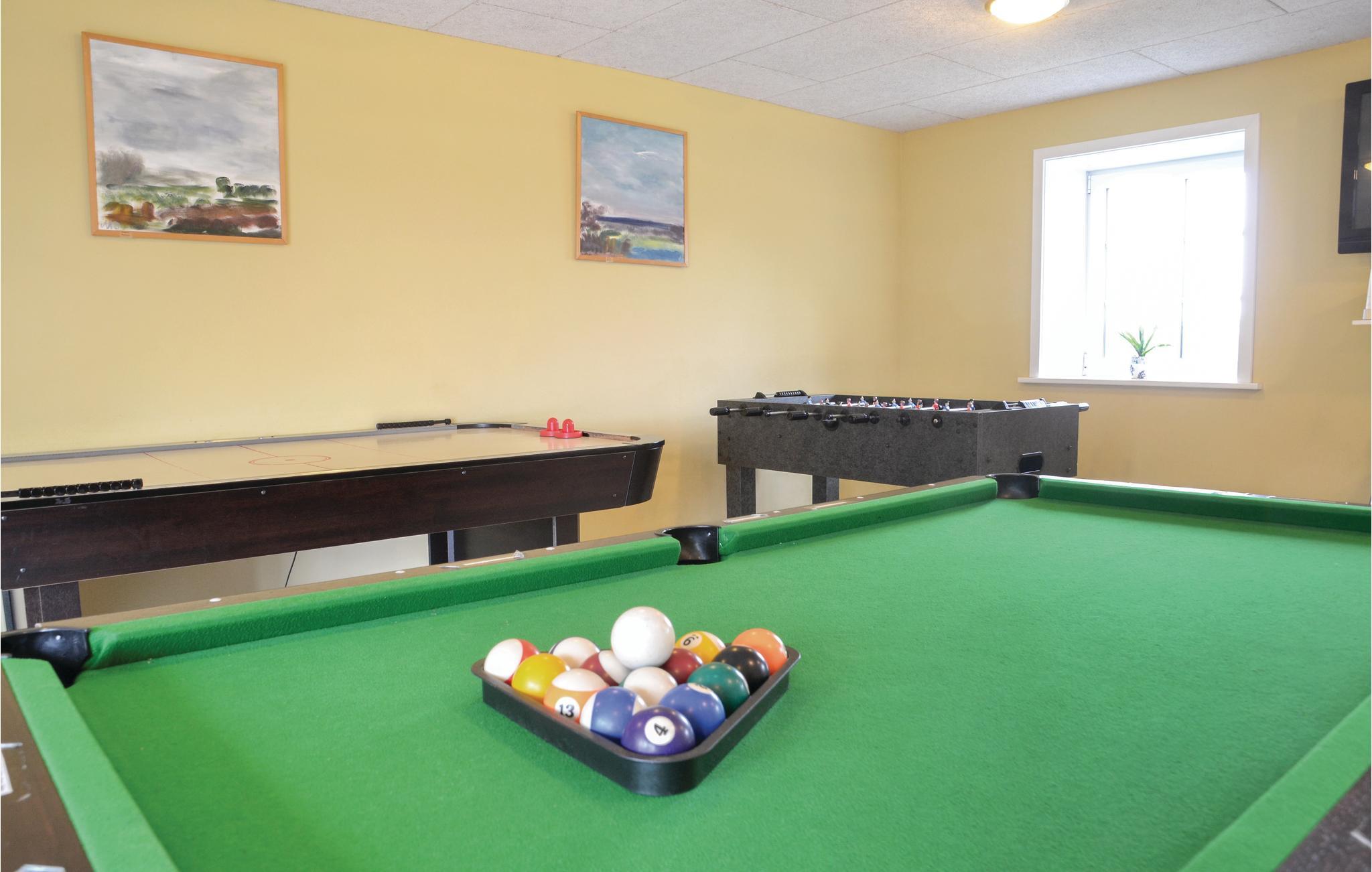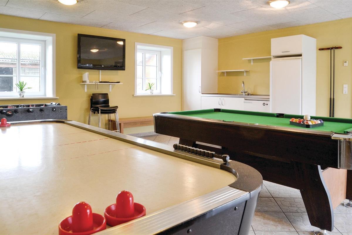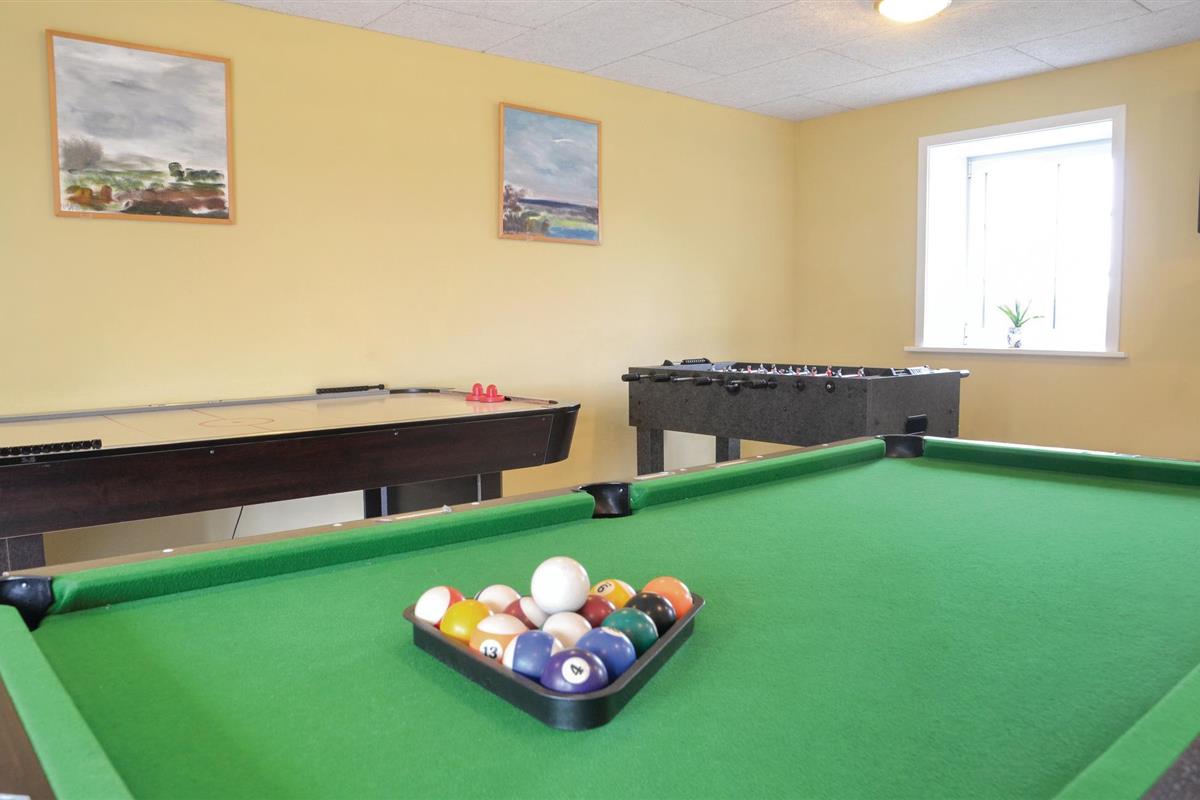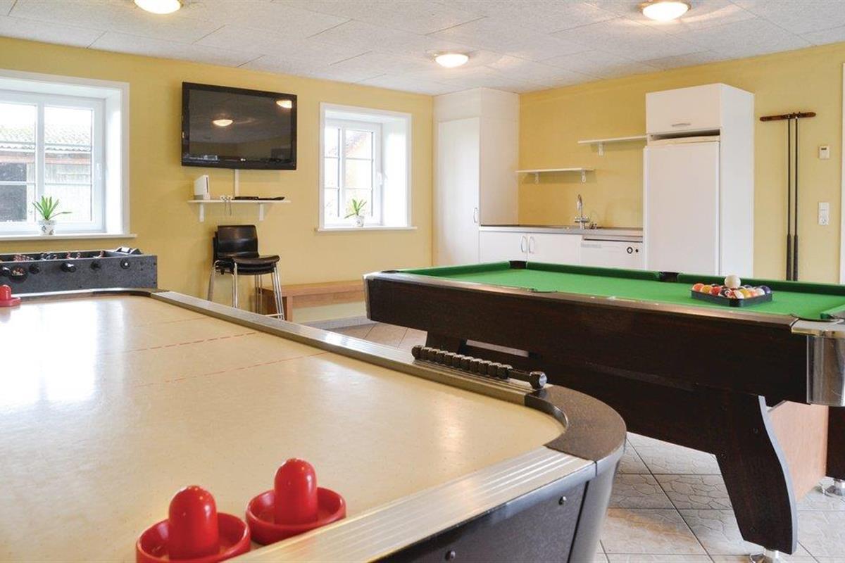Huis voor actieve vakantiegangers, gelegen op het platteland en toch dicht bij de steden Esbjerg en Ribe. De grote hal met kunstgras is ingericht voor onder andere badminton, volleybal en basketbal. Ontspannen in de buitenjacuzzi en sauna zal ook een fantastische ervaring zijn. Het huis is prachtig ingericht en heeft veel details van een lokale kunstenaar. Er zijn ook scharrelpaarden, geiten en varkens op het terrein, die de eigenaar u graag laat zien. De energiebron voor verwarming is goedkope aardwarmte. Het huis is prachtig gelegen, zowel het bos als de wetlands en het weiland liggen op loopafstand. Er is hier veel wild en vogels. De eigenaren spreken Engels en Duits en wonen in het buurhuis. Zij adviseren u graag over uitstapjes in de omgeving. Een uitstapje naar de kathedraal van Ribe, de oudste van Denemarken, is ook een aanrader. De kerkklokken luiden om 8 uur 's ochtends, 12 uur 's middags en 6 uur 's avonds.