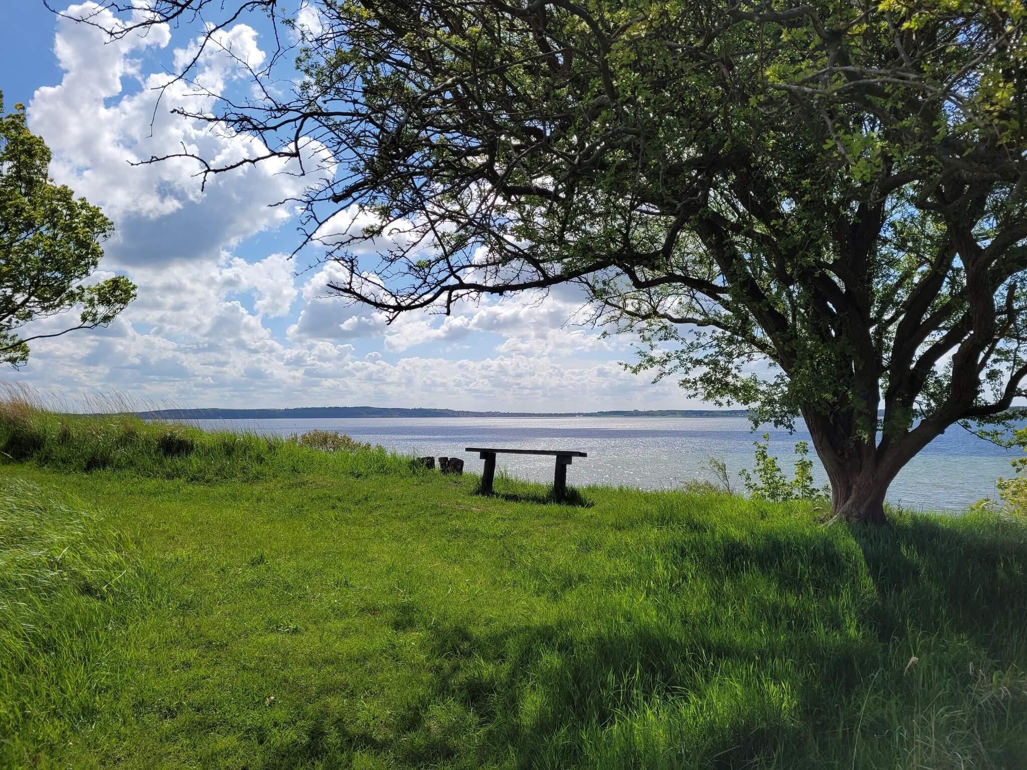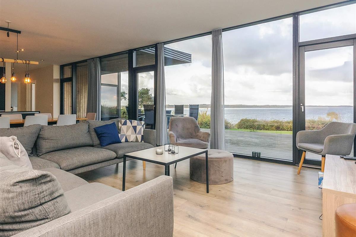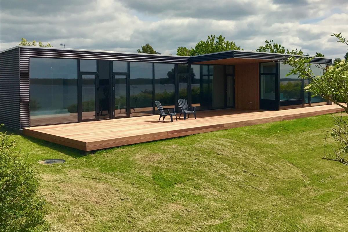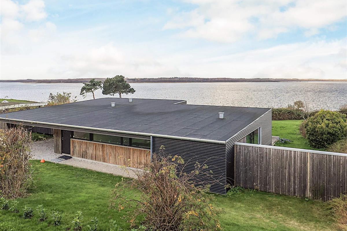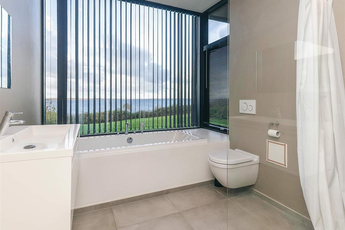 Die Raumverteilung eignet sich mit den zwei Schlafbereichen mit jeweils zugehörigem Bad auch gut für zwei befreundete Familien oder Generationen. Die Liege in einem der Zimmer ist 170 cm lang. In der Mitte befindet sich der geräumige Küchen-/Wohnbereich für die gemeinsamen Stunden. Die großen Fenster lassen viel Tageslicht ins Haus und bieten zusammen mit der erhöhten Lage eine schöne Panoramaaussicht über das Wasser im Fjord und zur Halbinsel Hornsherred.